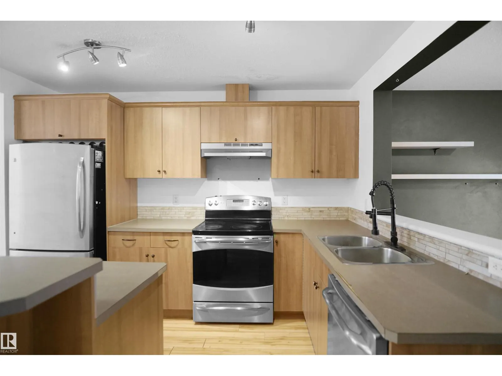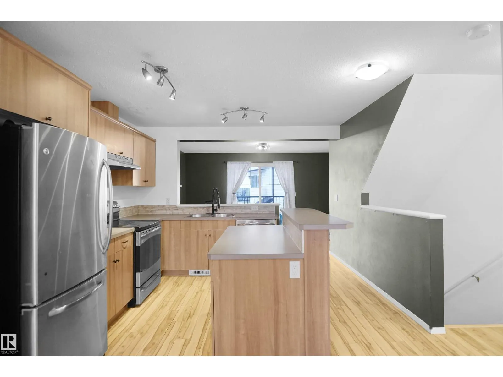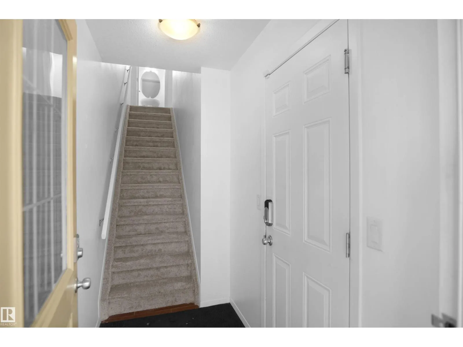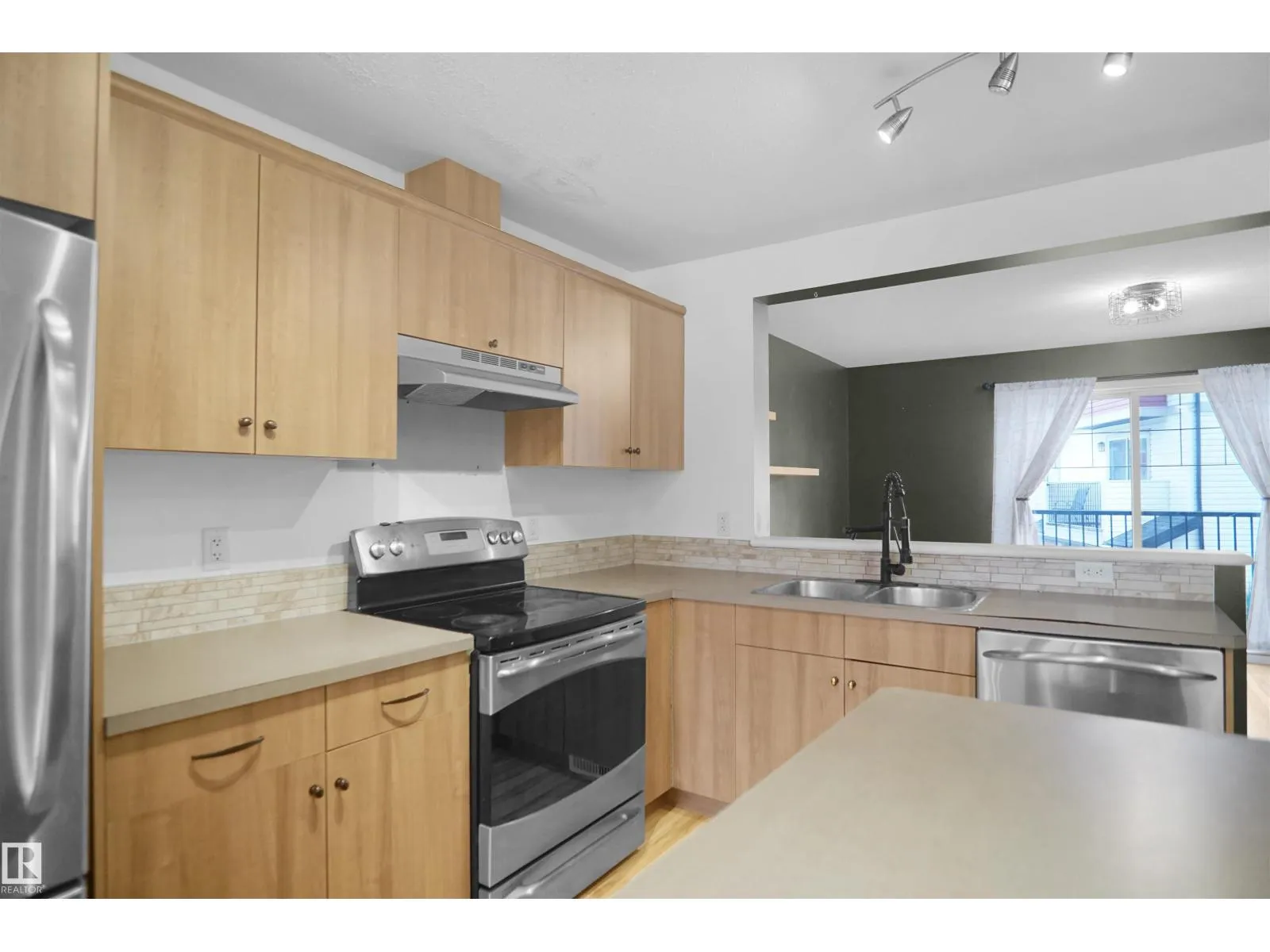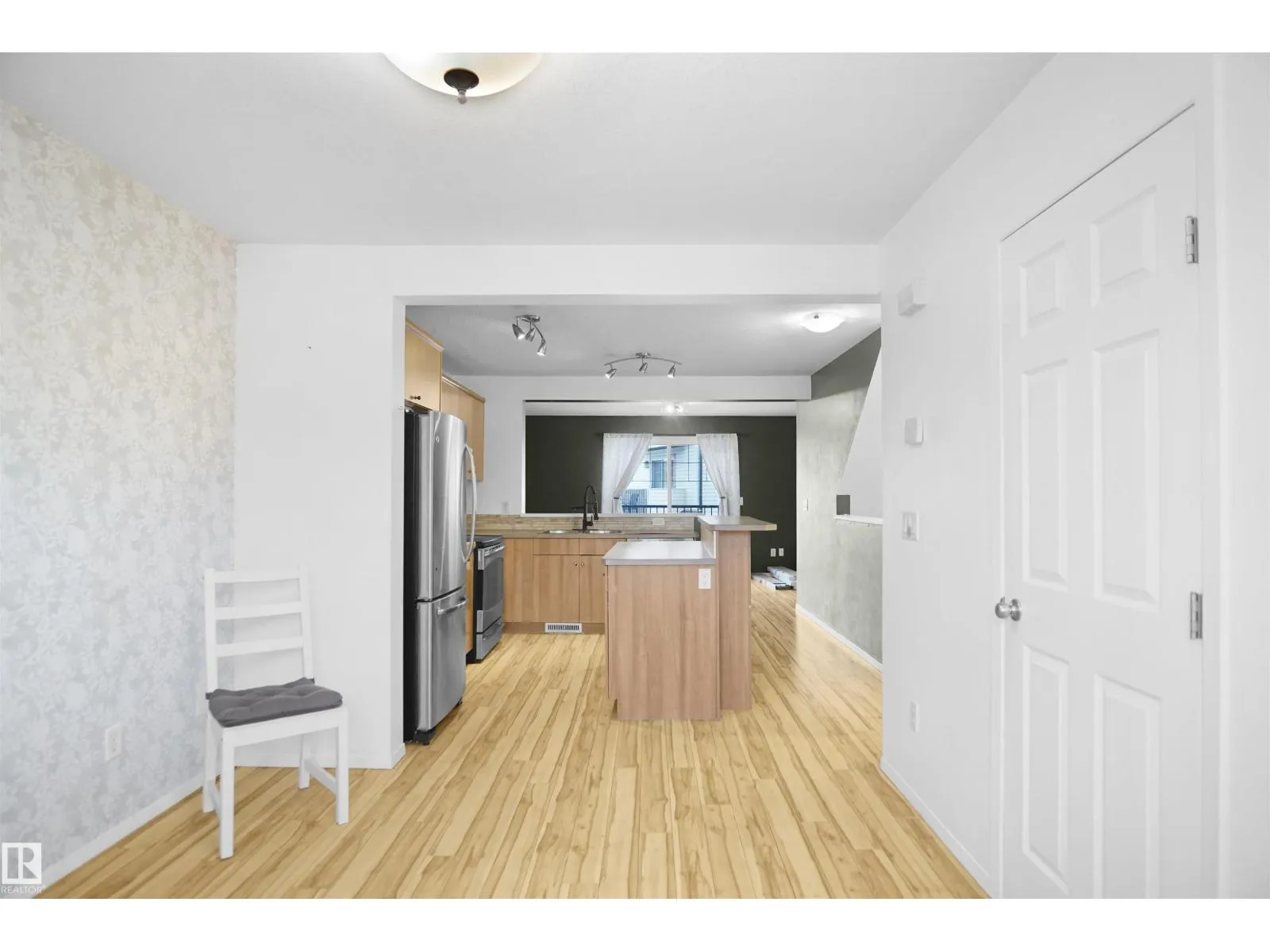 Welcome to this stunning townhouse in Tamarack! This upgraded 2-bedroom unit is sure to impress. The open-concept main floor features a spacious dinette with access to a private deck. The gourmet kitchen offers modern cabinetry, tile backsplash, an island with a raised eating bar, and upgraded stainless steel appliances. The main level is completed with a bright, functional living room with large windows and a convenient two-piece bath. Upstairs, youâll find stacked laundry and two generous bedroomsâeach with its own ensuite. This home also features brand-new luxury vinyl plank flooring on the upper level and new carpet on the stairs. Enjoy the convenience of a double tandem garage and ample visitor parking nearby. Low condo fees and a prime location close to all amenities, including the Meadows Rec Centre, transit, shopping, and easy access to Whitemud Drive and Anthony Henday. Donât miss outâthis opportunity wonât last long! (id:27476)