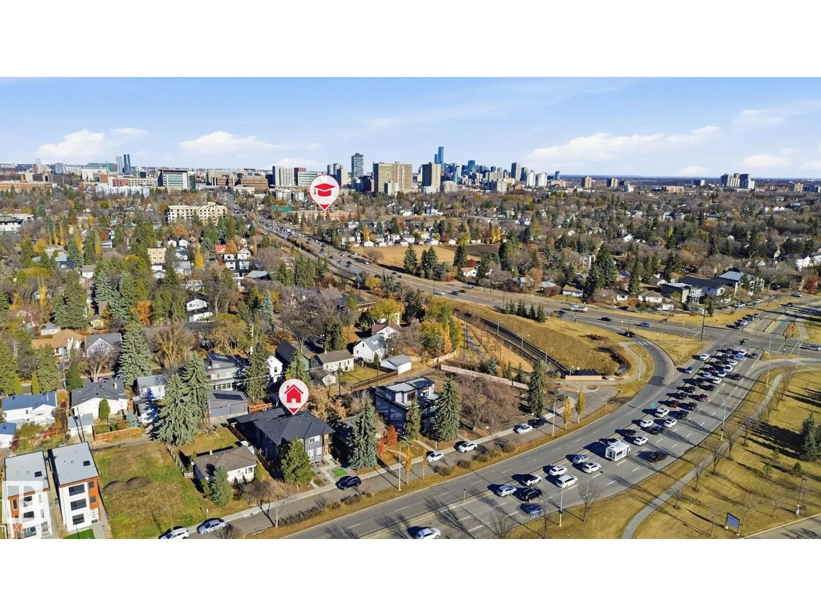 GREAT INVESTMENT OPPORTUNITY in BELGRAVIA, and just steps away from the UNIVERSITY of ALBERTA, and only a few hundred metres to Belgravia LRT (next stop: University Station). This 2-storey infill c/w a SEPARATE ENTRANCE and rough-ins for a FUTURE LEGAL SUITE offering great rental potential for student & professionals alike! Offering 4 beds and 4bath, this half-Duplex features ACRYLIC STUCCO and LUX PANELS with LOW-MAINTENANCE LANDSCAPING front and back, including ARTIFICIAL TURF. Inside HARDWOOD flooring, QUARTZ counters, bar area, gas fireplace. The 2nd floor offers a SPACIOUS PRIMARY bedroom with large walk-in closet, DUAL-SINK ENSUITE, and BALCONY. Two more bedrooms, upstairs laundry, and a 4-pc bath complete the 2nd level. The FULLY FINISHED BASEMENT includes a large family room, 4th bedroom, full bath. DOUBLE GARAGE, modern exterior, and walkable location close to cafés, transit, parks, and Edmontonâs core amenities make this a turnkey option for professionals, families, or investors alike. (id:27476)