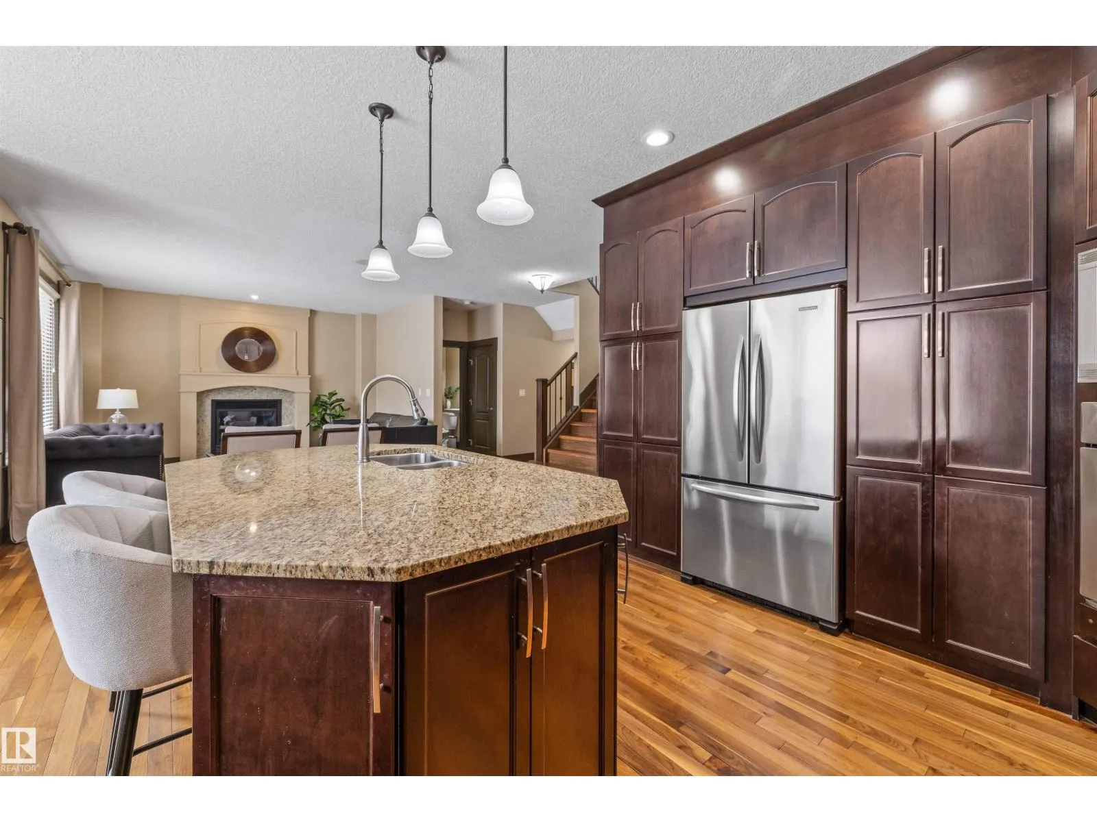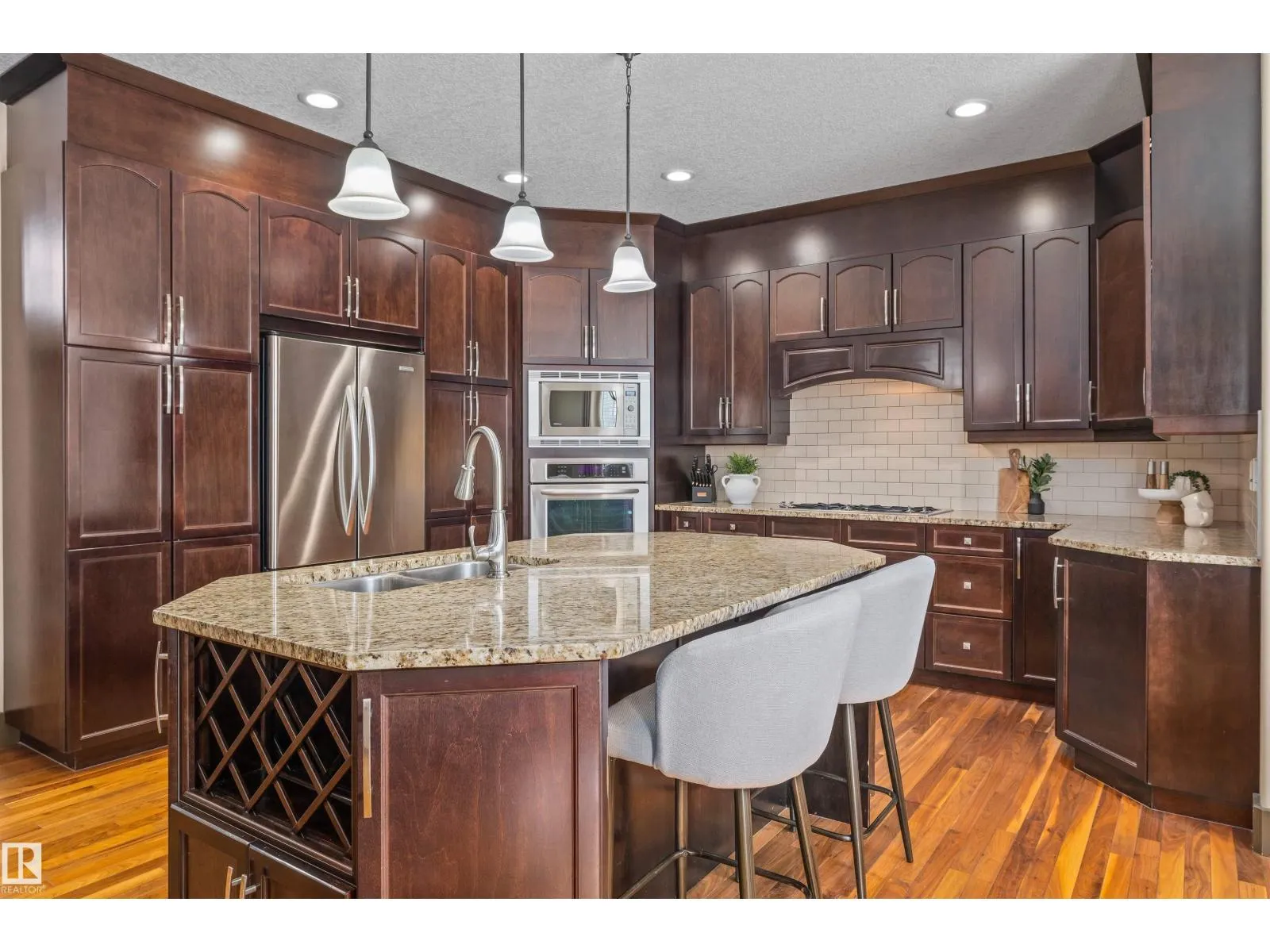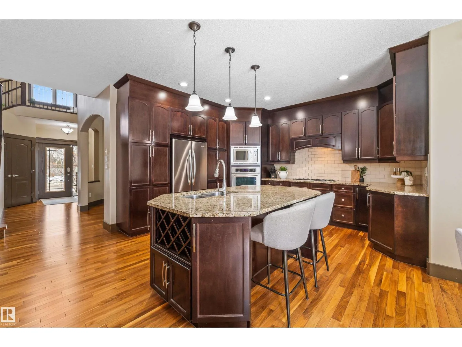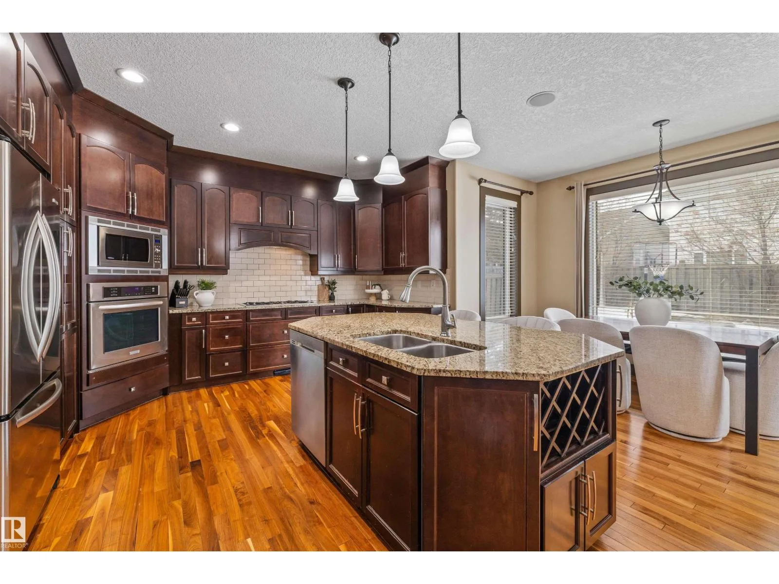 A Stunning Family ready home in Copperwood in west Edmonton featuring 5 bedrooms and 3.5 bathrooms plus a fully finished basement and a main floor den. A bright open foyer to the second level creates an airy first impression. The main floor offers open concept living with a kitchen featuring a built in wall oven with dark espresso cabinets and a center island. Enjoy built in speakers and a cozy living room with a gas fireplace. Upstairs is a vaulted bonus room adding extra space for the family. The spacious primary suite has large walk in closet and a lux 5 pc ensuite plus 3 additional bedrooms on the upper level, a rare layout ideal for larger families. The finished basement adds a 5th bedroom with its own ensuite, perfect for teens or guests who want privacy. Enjoy a double attached garage and a landscaped backyard. Located near parks, ponds, schools and everyday amenities with extensive walking trails and quick access to 215 Street, Whitemud Drive and Anthony Henday for easy commuting across Edmonton. (id:27476)