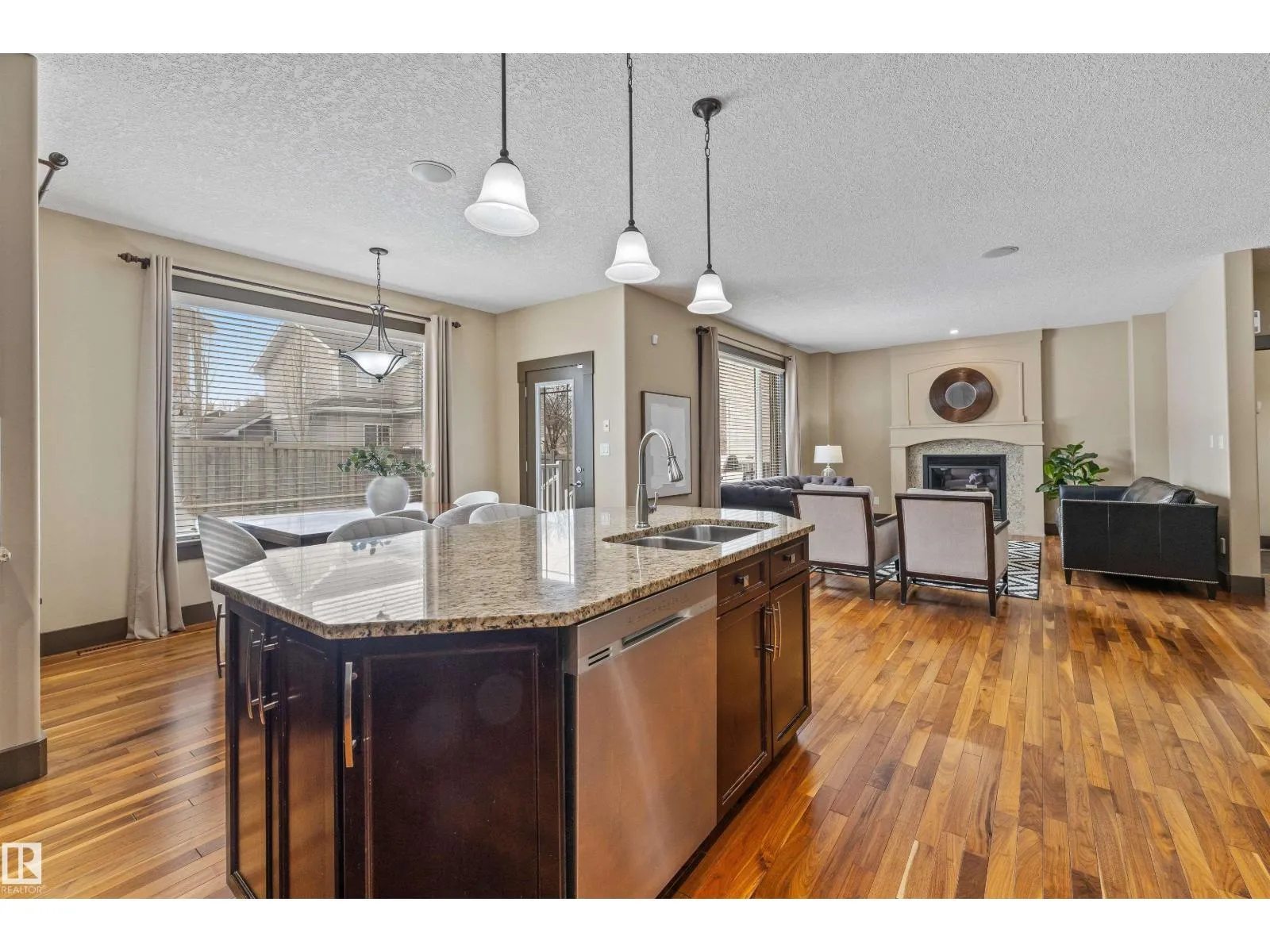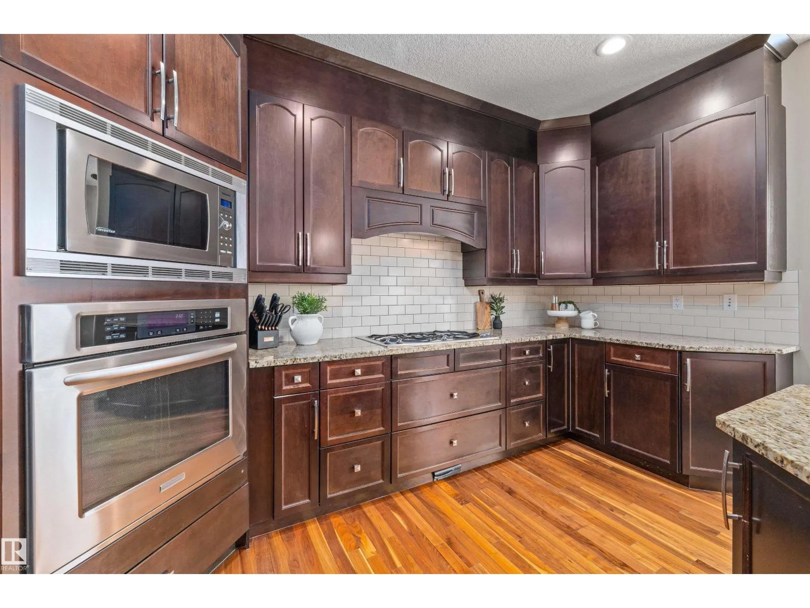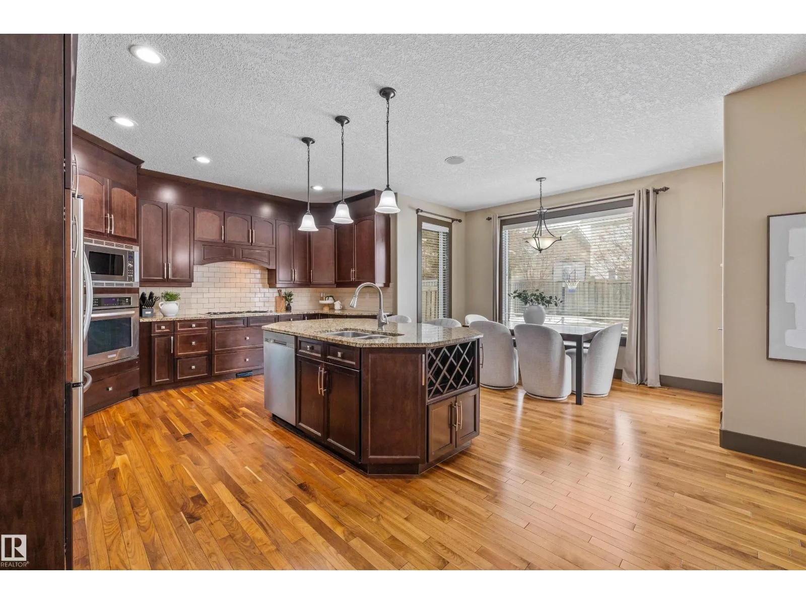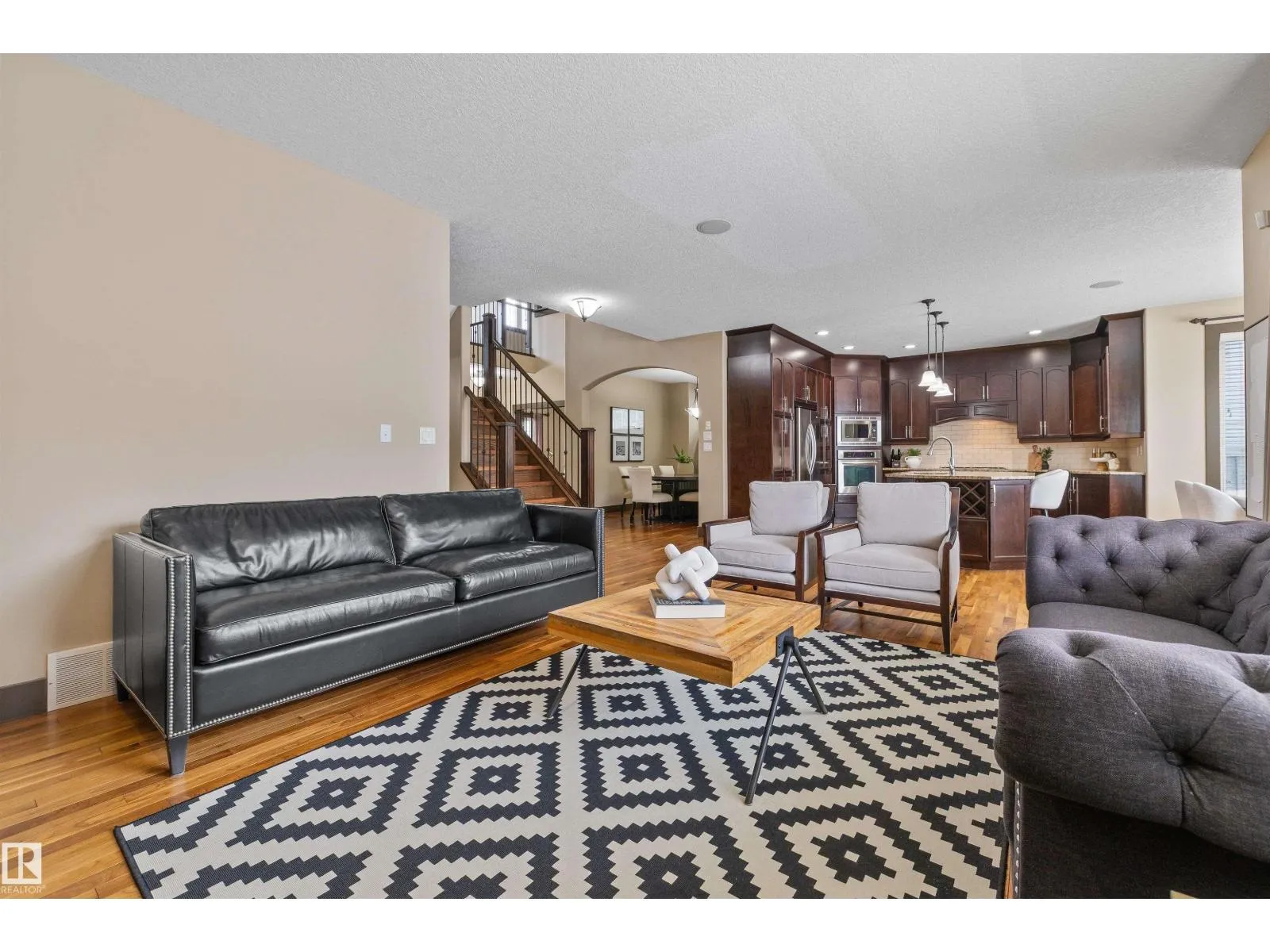 A Stunning Family ready home in Copperwood in west Edmonton featuring 5 bedrooms and 3.5 bathrooms plus a fully finished basement and a main floor den. A bright open foyer to the second level creates an airy first impression. The main floor offers open concept living with a kitchen featuring a built in wall oven with dark espresso cabinets and a center island. Enjoy built in speakers and a cozy living room with a gas fireplace. Upstairs is a vaulted bonus room adding extra space for the family. The spacious primary suite has large walk in closet and a lux 5 pc ensuite plus 3 additional bedrooms on the upper level, a rare layout ideal for larger families. The finished basement adds a 5th bedroom with its own ensuite, perfect for teens or guests who want privacy. Enjoy a double attached garage and a landscaped backyard. Located near parks, ponds, schools and everyday amenities with extensive walking trails and quick access to 215 Street, Whitemud Drive and Anthony Henday for easy commuting across Edmonton. (id:27476)