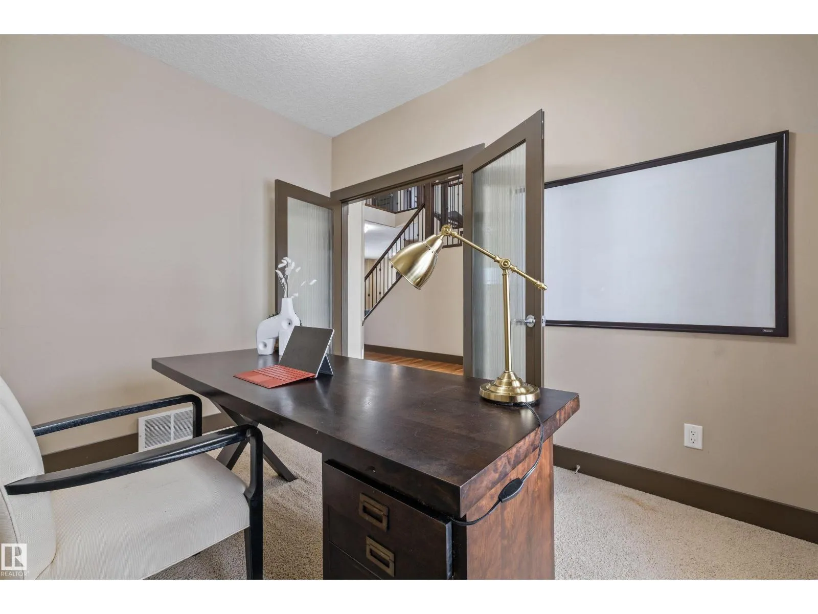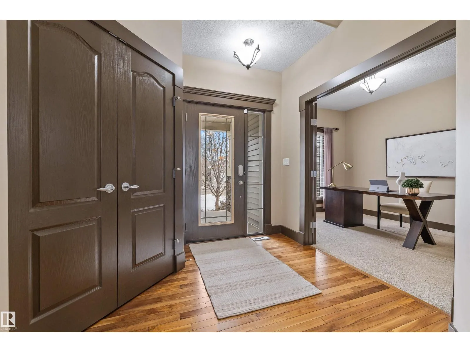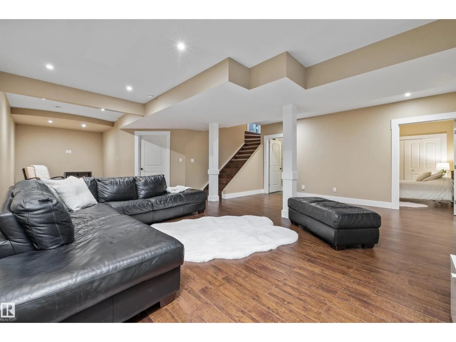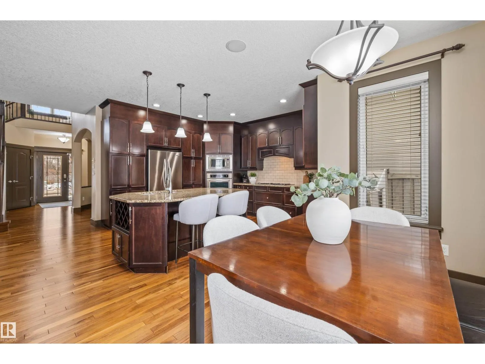 A Stunning Family ready home in Copperwood in west Edmonton featuring 5 bedrooms and 3.5 bathrooms plus a fully finished basement and a main floor den. A bright open foyer to the second level creates an airy first impression. The main floor offers open concept living with a kitchen featuring a built in wall oven with dark espresso cabinets and a center island. Enjoy built in speakers and a cozy living room with a gas fireplace. Upstairs is a vaulted bonus room adding extra space for the family. The spacious primary suite has large walk in closet and a lux 5 pc ensuite plus 3 additional bedrooms on the upper level, a rare layout ideal for larger families. The finished basement adds a 5th bedroom with its own ensuite, perfect for teens or guests who want privacy. Enjoy a double attached garage and a landscaped backyard. Located near parks, ponds, schools and everyday amenities with extensive walking trails and quick access to 215 Street, Whitemud Drive and Anthony Henday for easy commuting across Edmonton. (id:27476)