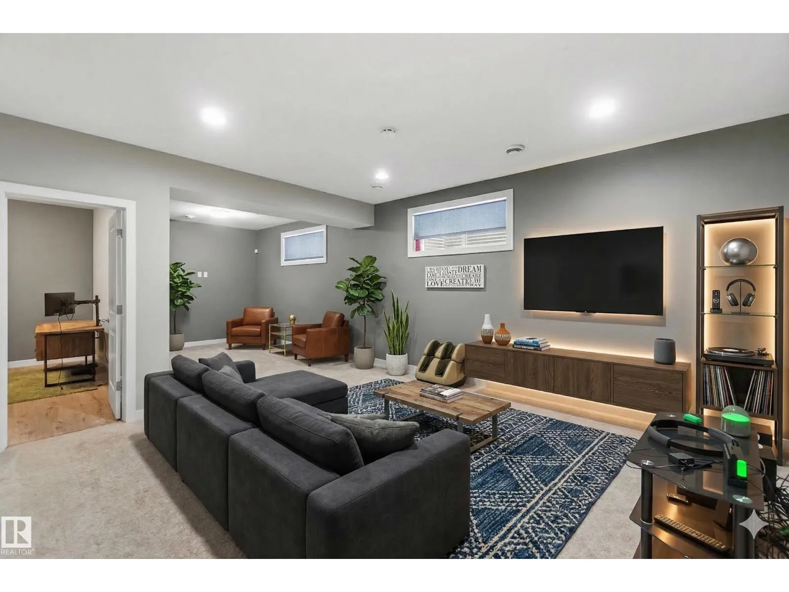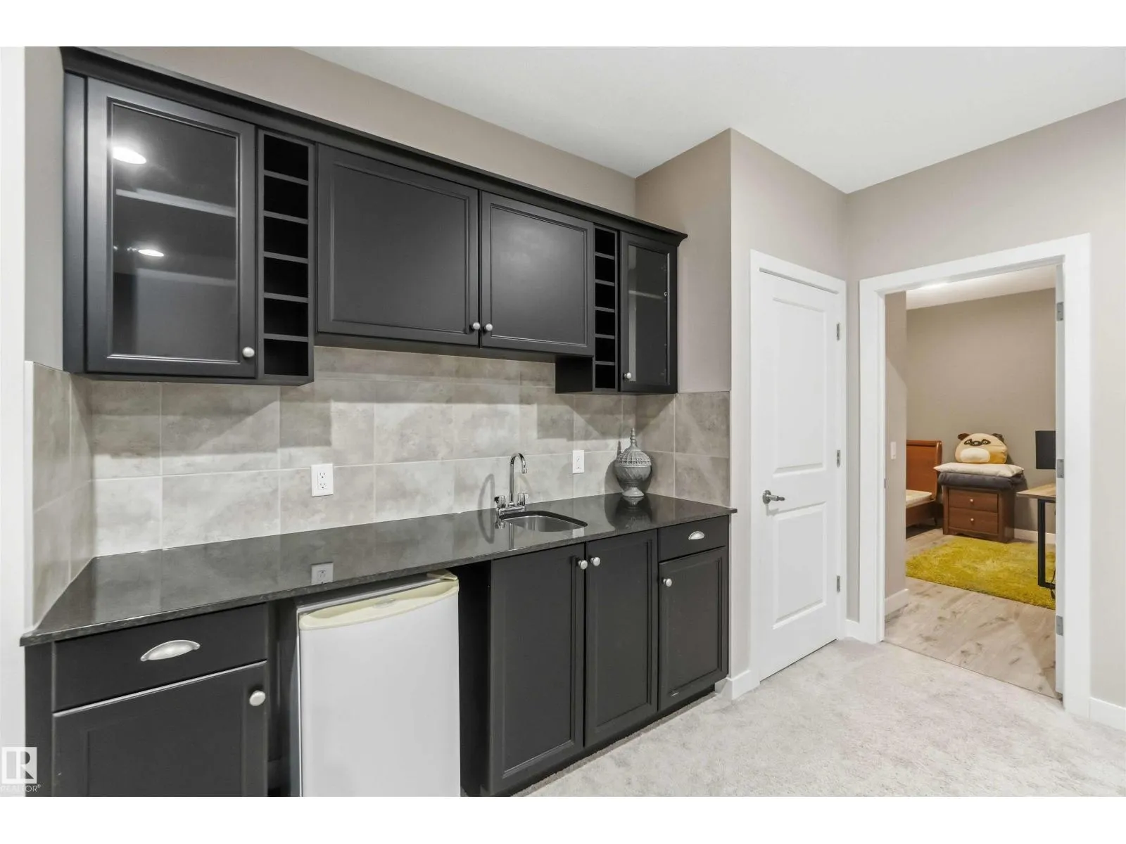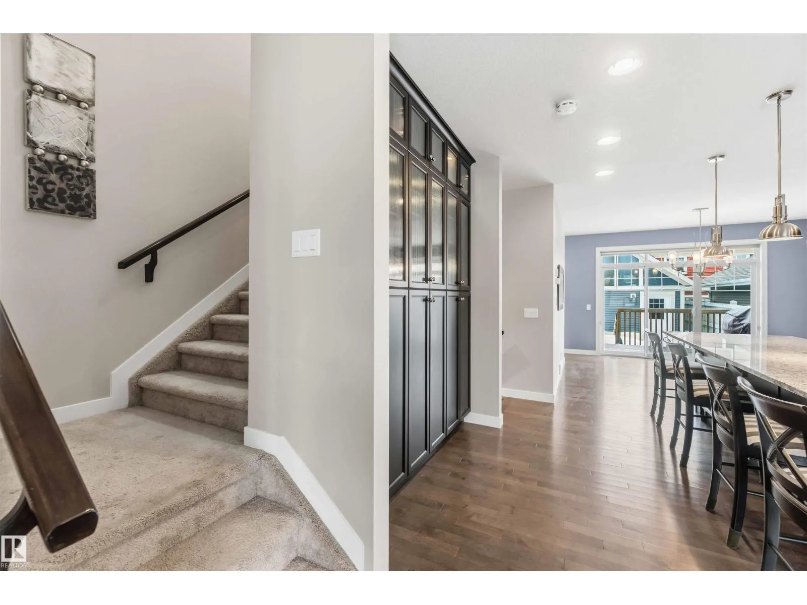 This exceptional former showhome delivers a level of finish and immediate readiness rarely found in todayâs market. Every premium upgrade was integrated during construction, featuring granite countertops throughout, custom built-in cabinetry, and high-end hardwood and ceramic tile flooring paired with modern light fixtures and a designer color palette. The main floor is centered around a chef-inspired kitchen boasting a massive island, glass tile backsplash, and a functional built-in pantry. Upstairs, the master retreat offers a sophisticated five-piece ensuite and walk-in closet, complemented by two additional bedrooms and a convenient upper-level laundry room. The professionally finished basement expands the living space with a fourth bedroom, a full four-piece bathroom, and a sleek wet bar designed for entertaining. Including all appliances, window coverings, professional landscaping, and a new home warranty, this 4-bedroom, 4-bathroom residence is entirely turn-key with immediate possession available. (id:27476)