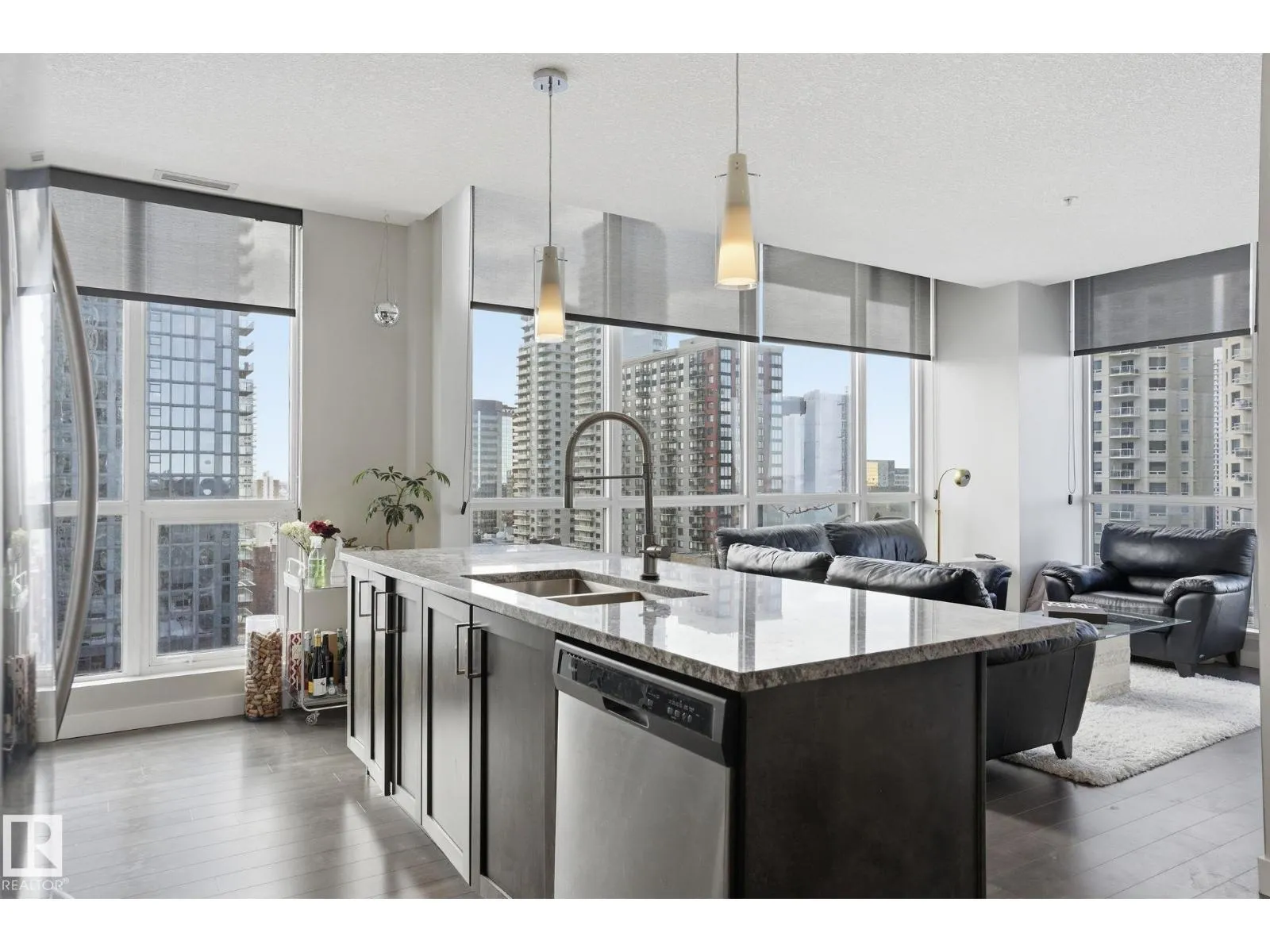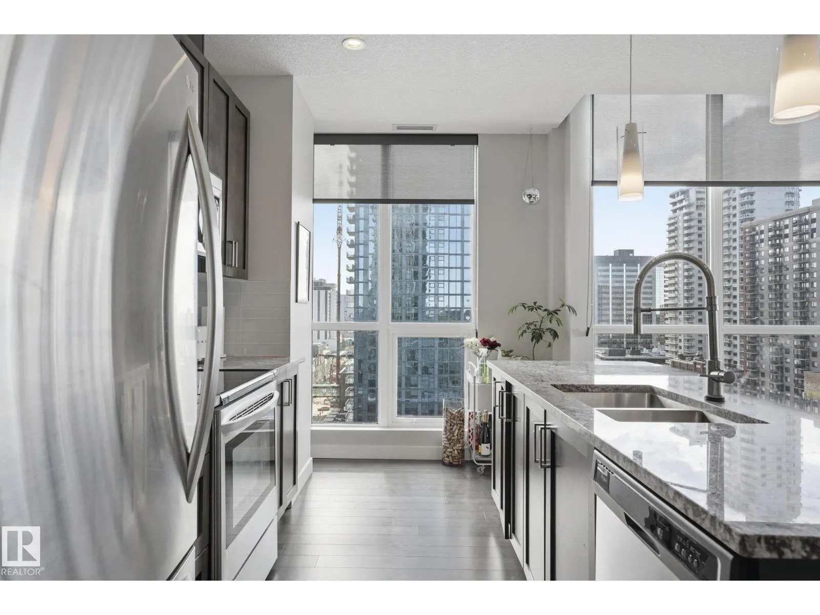 Live above it all in the Ultima! This fantastic corner unit delivers stunning panoramic views and an effortless urban lifestyle. With 2 bedrooms and 2 full baths, the layout is functional and inviting, anchored by a modern kitchen with granite countertops and stainless steel appliances. Enjoy your private balcony overlooking the Ice District with skyline views and unforgettable sunsets. Titled heated underground parking included. Step outside and youâre minutes from Rogers Place, MacEwan University, City Market, Jasper Ave, and some of the cityâs best dining spots and nightlife. Simple, stylish, and in the heart of it all. (id:27476)