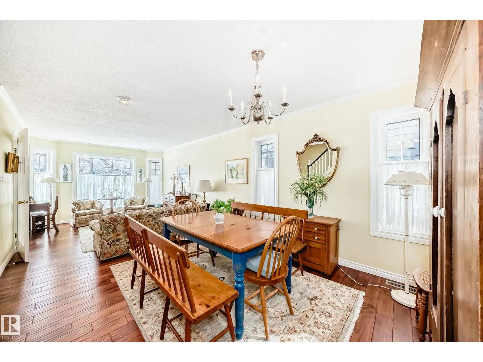Riverdaleâone of Edmontonâs most sought-after communities! 1/2 block from the river ideally located just mins. from downtown & steps to Riverdale Park, scenic river valley trails, & Riverside Golf Course, this home offers the perfect blend of urban convenience & natural beauty. This solidly built residence features high ceilings, large windows that flood the space with natural light, rich hardwood flooring, & a cozy gas fireplaceâall within a functional, family-friendly layout. The kitchen is ideal for entertaining, seamlessly opening to the second living area & complemented by a bright dinette. Upstairs, youâll find continued hardwood flooring throughout, a spacious primary bedroom, 2 additional generously sized bedroomsâperfect for a growing family or a work-from-home setup. The unfinished basement offers impressive 9-foot ceilings & a separate side entrance, presenting excellent potential for future use. Step outside to a private backyard filled w/ beautiful perennials, a beautiful space. (id:27476)