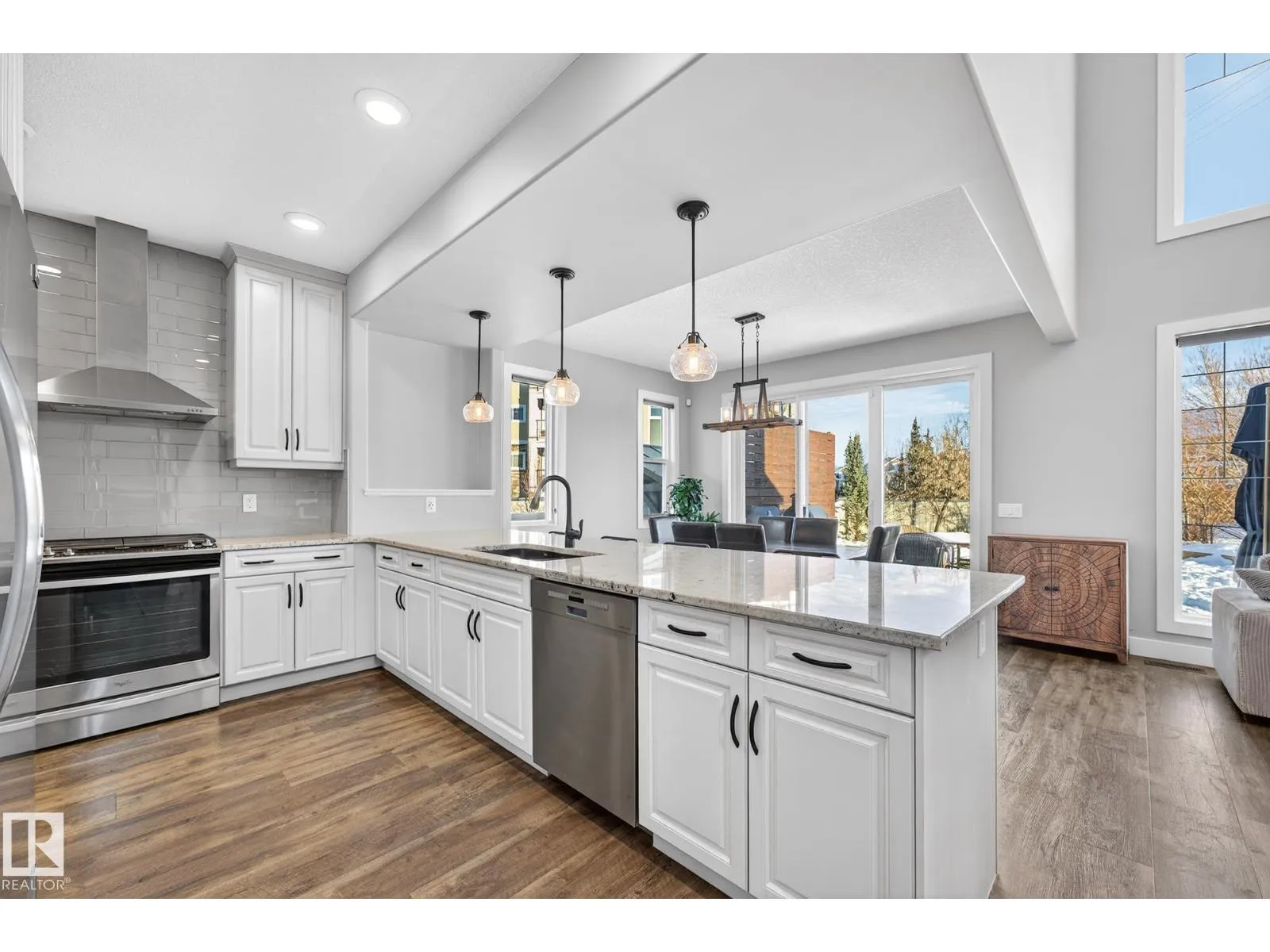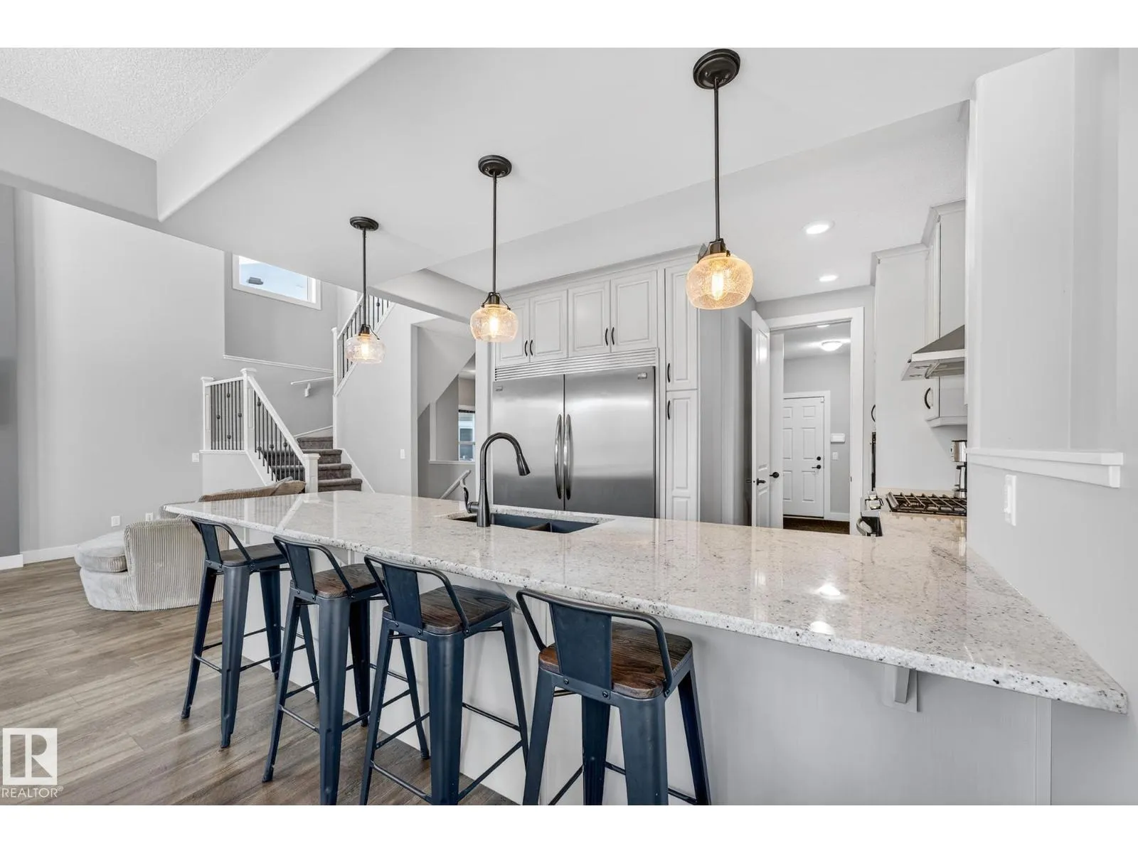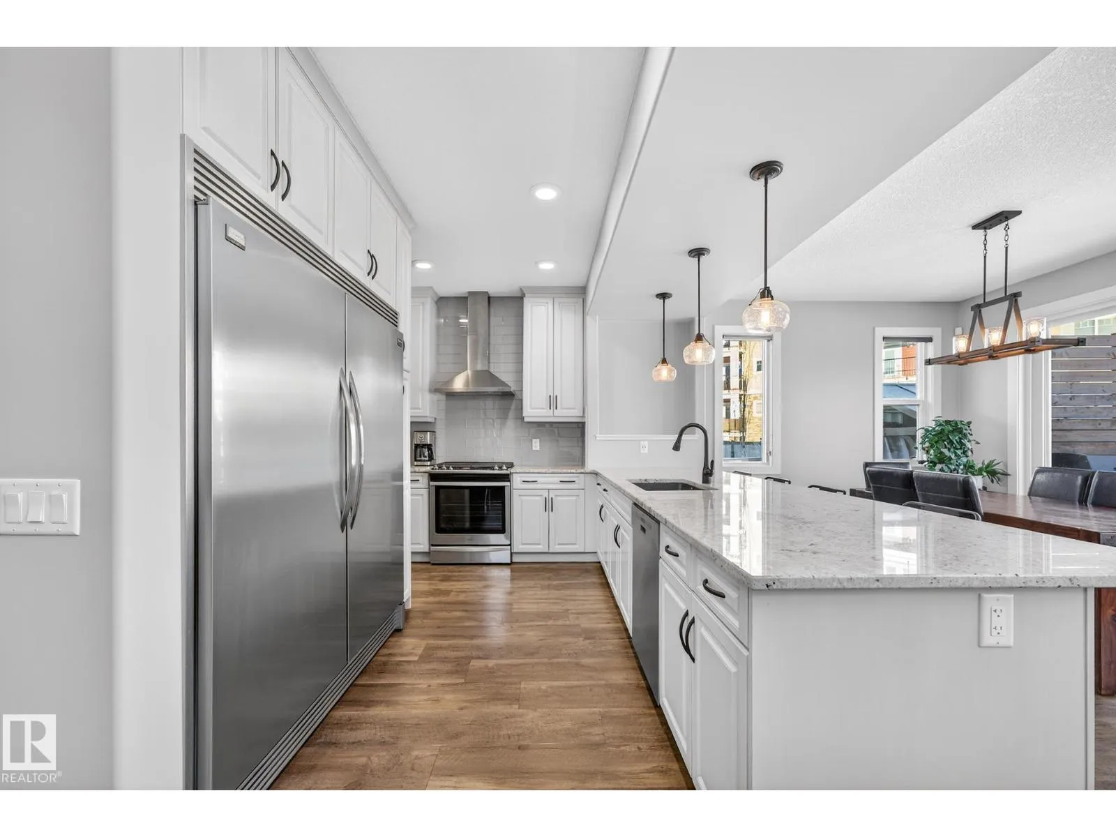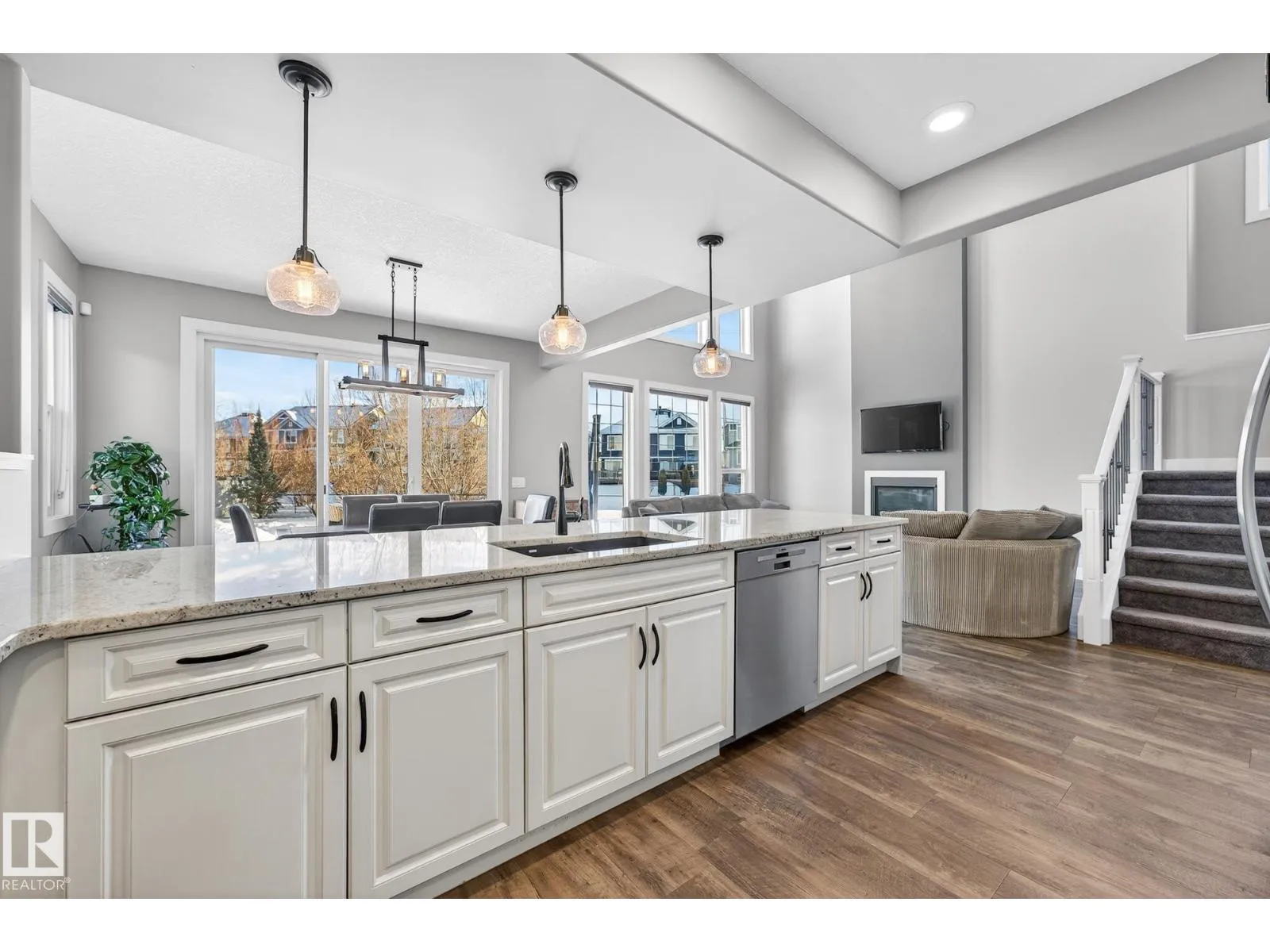 Exceptional quality meets an unmatched lifestyle in the sought-after community of Summerside. Stunning 5-bedroom, 3.5-bath home backs directly onto green space w/a walking path leading to the private clubhouse, exclusive lake access w/year-round amenities & a vibrant social scene. The open-to-above living room features oversized windows, a triple-slide patio door, flooding the home with natural light. The chefâs kitchen impresses with custom, ceiling-height cabinetry, quartz countertops, gas stove, commercial fridge/freezer combo, convenient walkthrough pantry & mudroom w/custom built-ins. Upstairs, the spacious primary retreat offers a walk-in closet & heated floor, spa-inspired ensuite, alongside three additional bedrooms, a full bath & laundry. The fully finished basement adds even more living space. Enjoy the landscaped yard with deck, hot tub, BBQ hookup & irrigation. Additional highlights include air conditioning, hot/cold bibs, heated triple garage with tandem parking & floor drain. Make your move! (id:27476)
