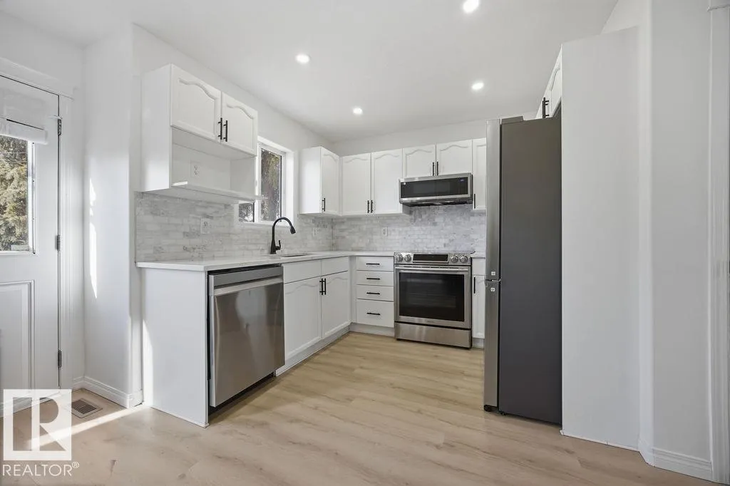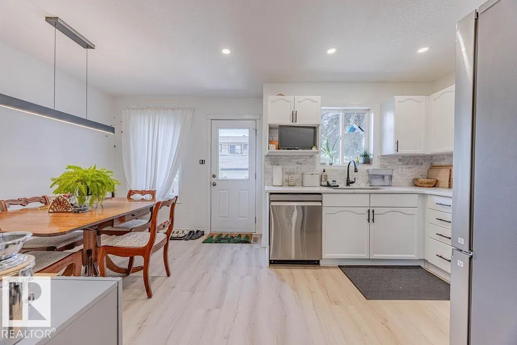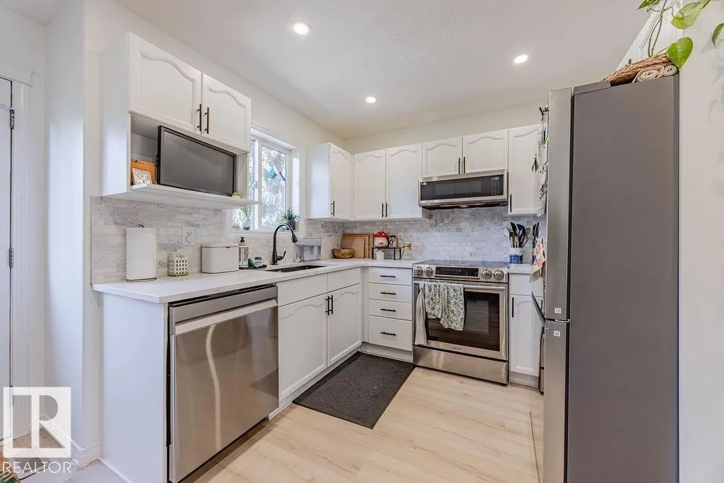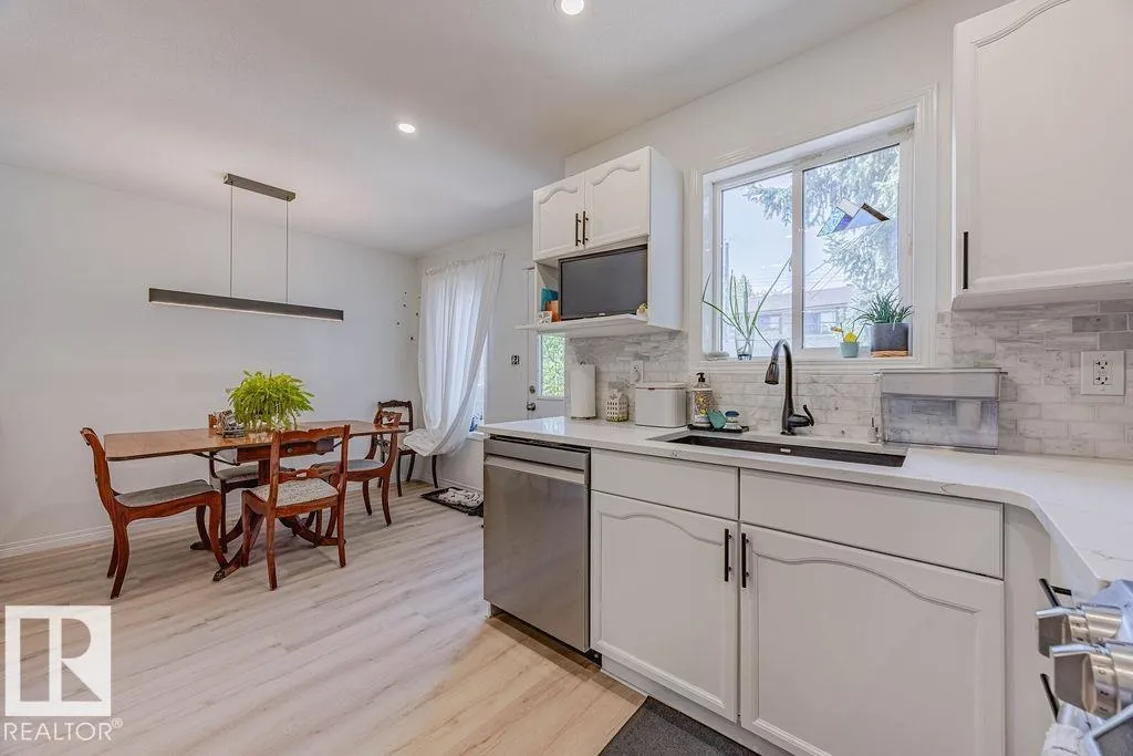 Welcome to Calder! This beautifully updated 2-storey half duplex offers exceptional value with no condo fees. Move-in ready with brand new vinyl plank flooring on the main floor and upper bath, a stylish kitchen with new countertops, sink, faucet, and appliances, fresh paint throughout, modern lighting, smart switches, and a brand new wood fence. Enjoy a pet-free, non-smoking home with refreshed bathrooms featuring new sinks, taps, countertops, toilets, plus a new tub spout and showerhead. Upstairs offers 3 spacious bedrooms, new carpet on the stairs and second level, and new closet doors in the primary. Bright main floor with living, dining, kitchen, and half bath. The unfinished basement is a blank canvas, ready for your personal touch and future development (HWT approx. 5 years). Single detached garage, extra parking, and easy access to transit, 127 St & Yellowhead. Quick possession available! (id:27476)