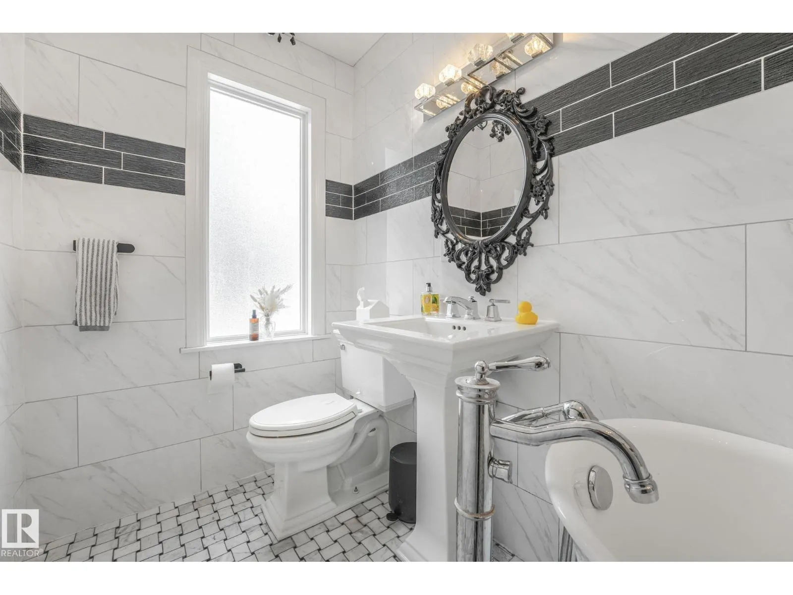 Ideally located just three blocks from the restaurants, boutiques, breweries, services, and farmersâ market on 124 Street, with quick access to downtown, the river valley, MacEwan University, NAIT, and the University of Alberta.This bright, move-in ready home sits on a huge 50 ft x 140 ft (15.2 m x 42.67 m) corner lot offering excellent space and future potential. The f/f yard features mature trees,stamped concrete patio, garden boxes, firepit area,2 storage sheds, ideal for entertaining, kids, and pets.The open main floor includes a modern kitchen with granite countertops and stainless steel appliances, spacious living and dining areas, and a flexible bedroom or home office. Upstairs are two generous bedrooms and a full bath.All three full bathrooms are renovated with marble tile, including a walk-in shower and clawfoot tub. The finished basement offers a full bath, Murphy bed, living space and a rough-in for a future kitchen. This home is gorgeous & location is amazing! (id:27476)