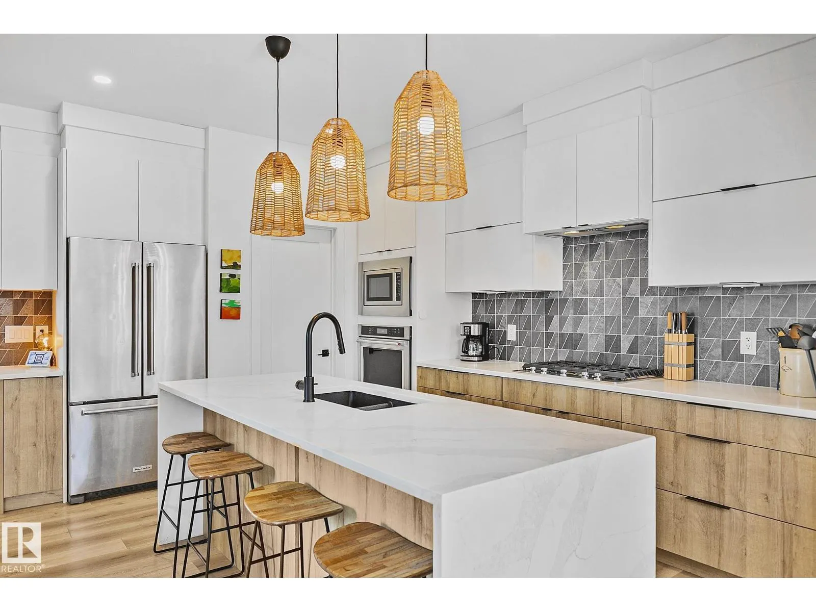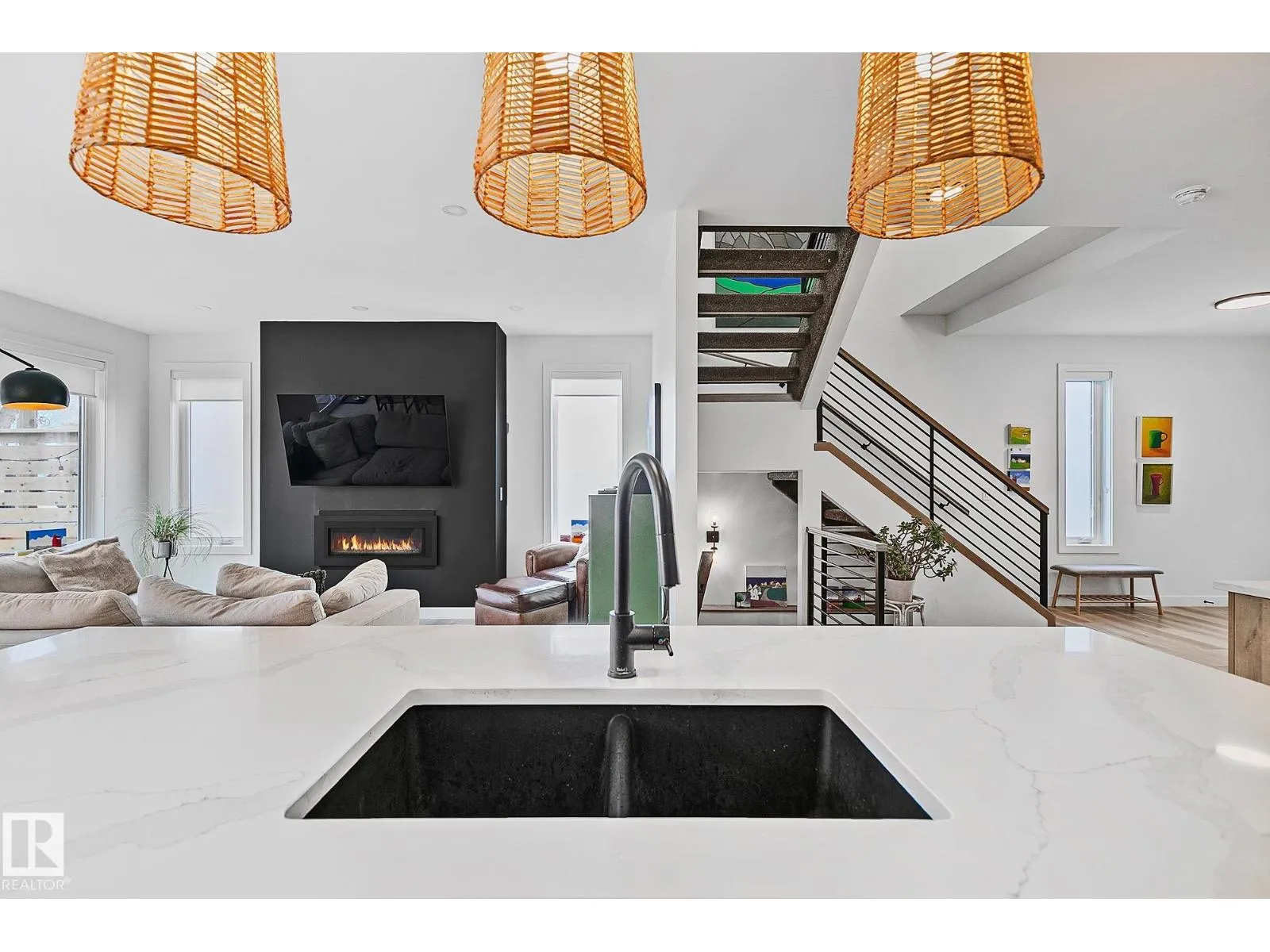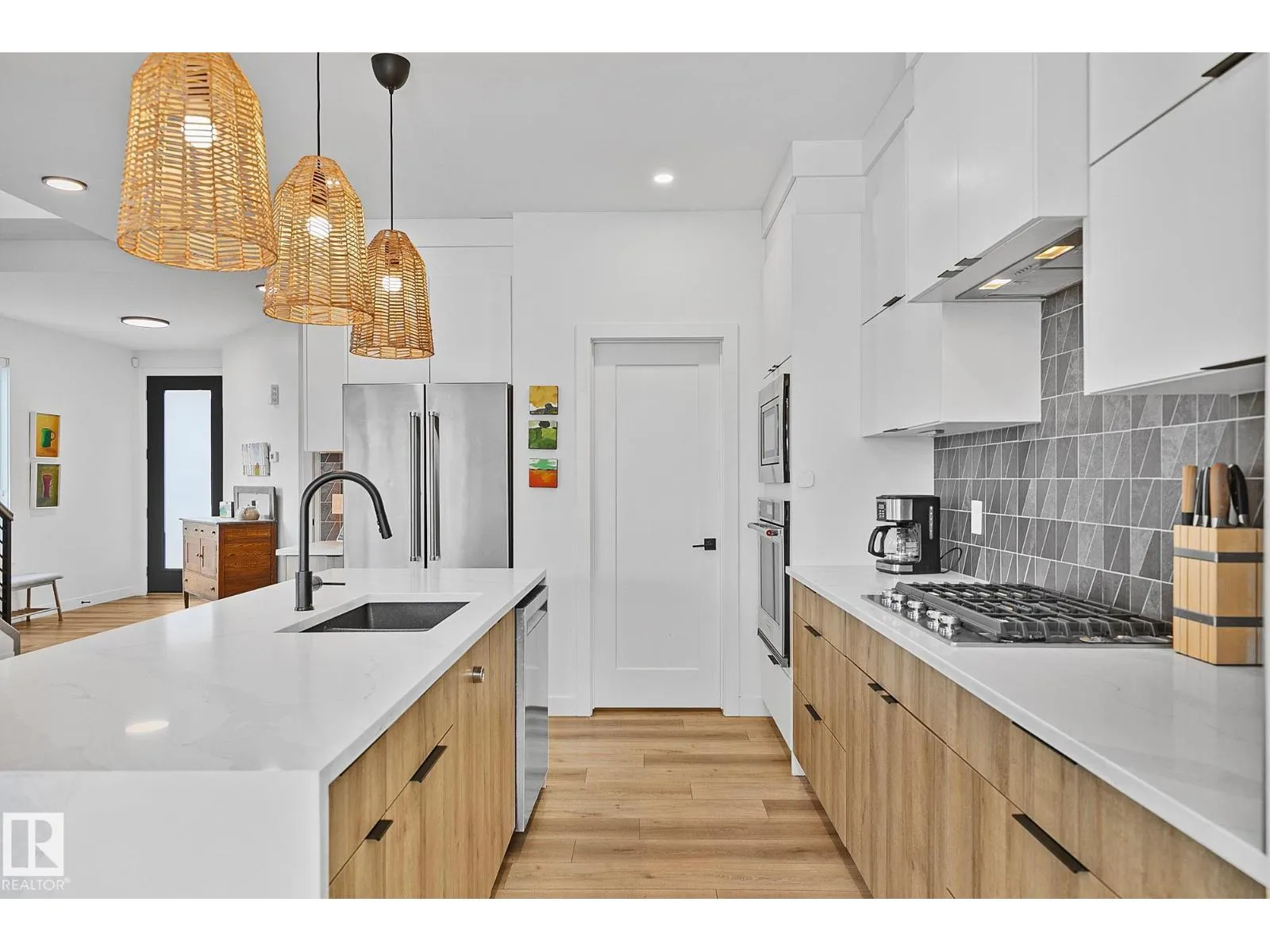 DESIRABLE NEIGHBOURHOOD! IDEALLY located walking distance to the River Valley & scenic trail system! Modern 2 storey offers a functional open concept floor plan filled w/natural light! Stunning kitchen has stainless appliances including gas cooktop, massive island w/seating, expansive quartz counters, tons of contemporary Scandi inspired cabinetry & spacious walk-thru pantry w/exceptional storage. Upstairs the primary suite feels like a true retreat showcasing a luxurious ensuite w/steam shower, deep soaker tub, double sinks & walk-in closet. Finished basement expands the living space w/2 additional bedrooms, 4pce bath, comfortable family room & storage. FEATURING upper level laundry, bonus room, mudroom, A/C, water softener & tankless hot water, heated garage, striking open staircase & 9ft ceilings on all levels. With 5 bedrooms, generous living spaces, stylish finishes & an unbeatable location near the river valley, this home offers the PERFECT BLEND OF MODERN STYLE & THOUGHTFUL FUNCTIONALITY! MOVE IN! (id:27476)