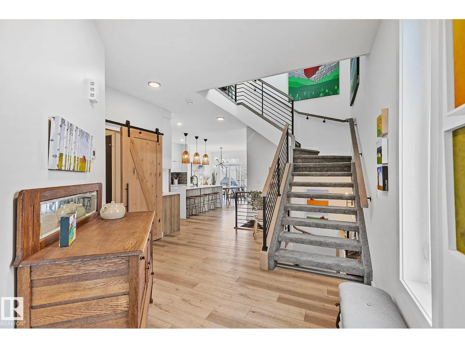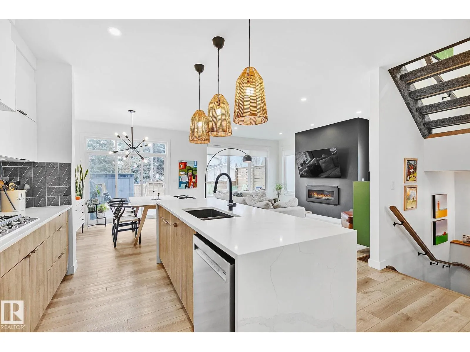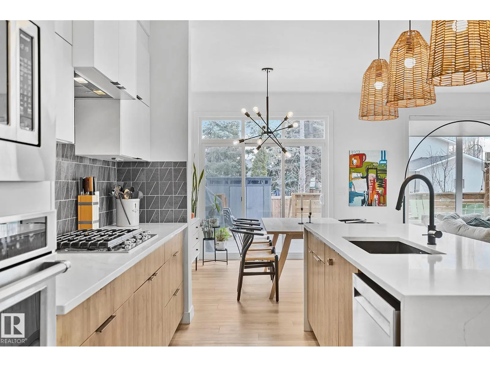 DESIRABLE NEIGHBOURHOOD! IDEALLY located walking distance to the River Valley & scenic trail system! Modern 2 storey offers a functional open concept floor plan filled w/natural light! Stunning kitchen has stainless appliances including gas cooktop, massive island w/seating, expansive quartz counters, tons of contemporary Scandi inspired cabinetry & spacious walk-thru pantry w/exceptional storage. Upstairs the primary suite feels like a true retreat showcasing a luxurious ensuite w/steam shower, deep soaker tub, double sinks & walk-in closet. Finished basement expands the living space w/2 additional bedrooms, 4pce bath, comfortable family room & storage. FEATURING upper level laundry, bonus room, mudroom, A/C, water softener & tankless hot water, heated garage, striking open staircase & 9ft ceilings on all levels. With 5 bedrooms, generous living spaces, stylish finishes & an unbeatable location near the river valley, this home offers the PERFECT BLEND OF MODERN STYLE & THOUGHTFUL FUNCTIONALITY! MOVE IN! (id:27476)