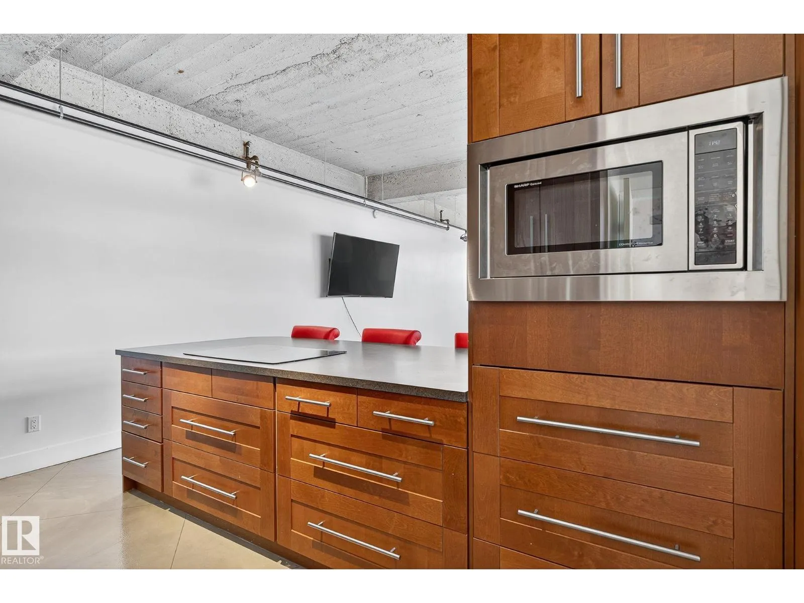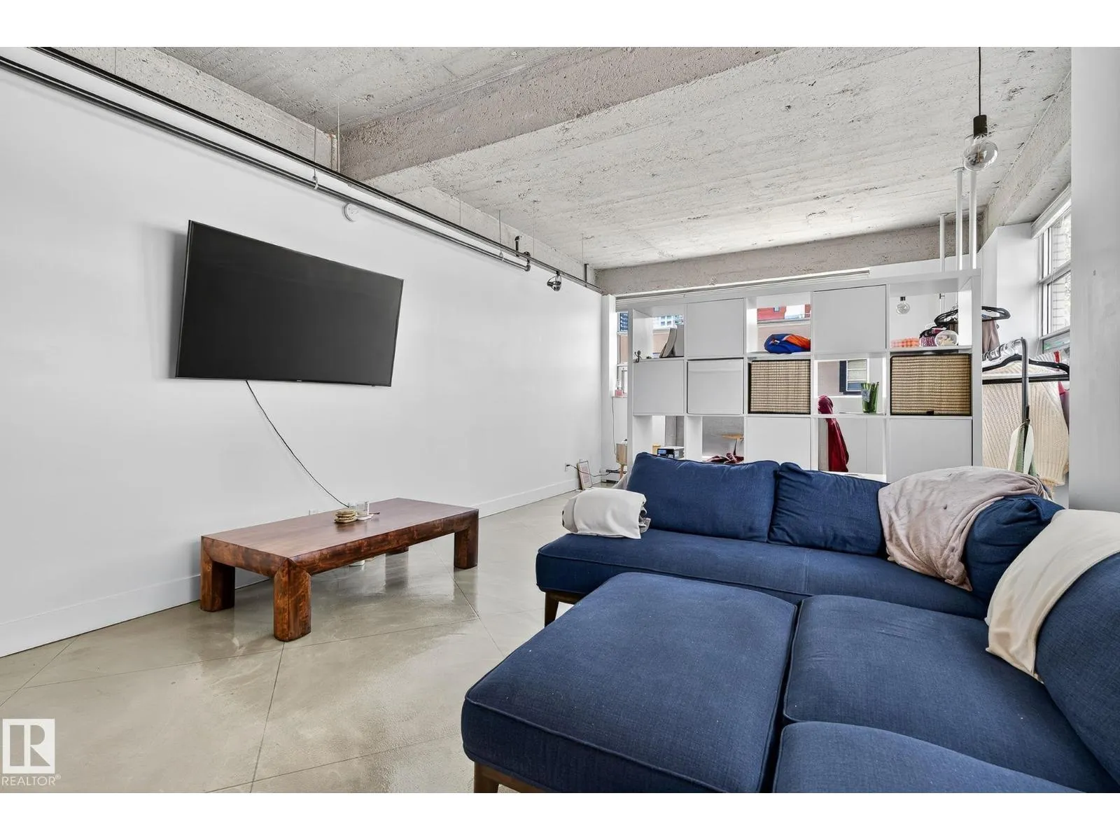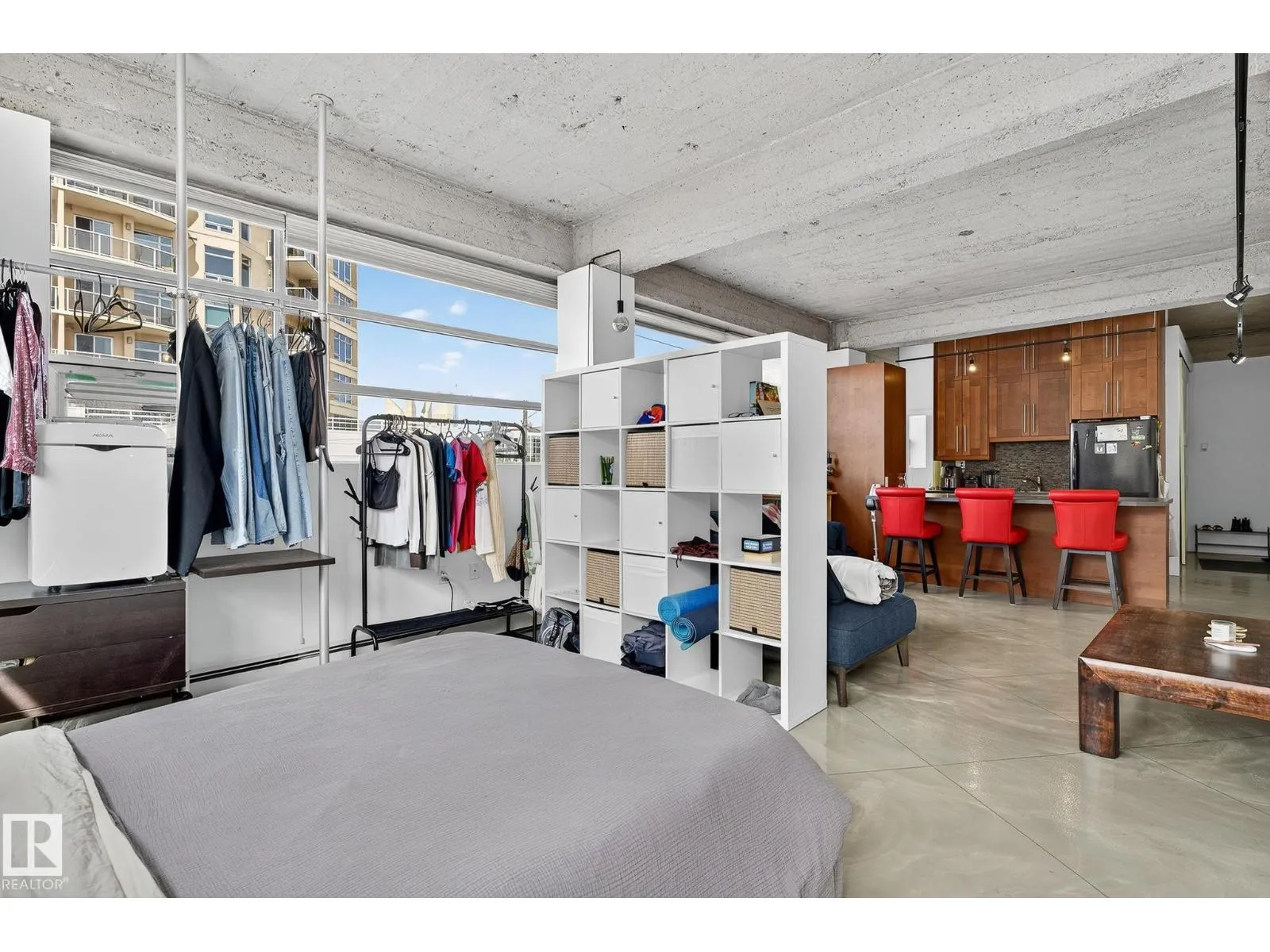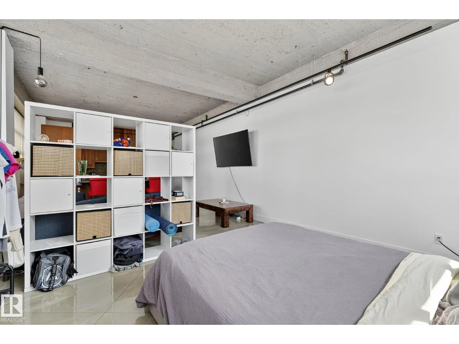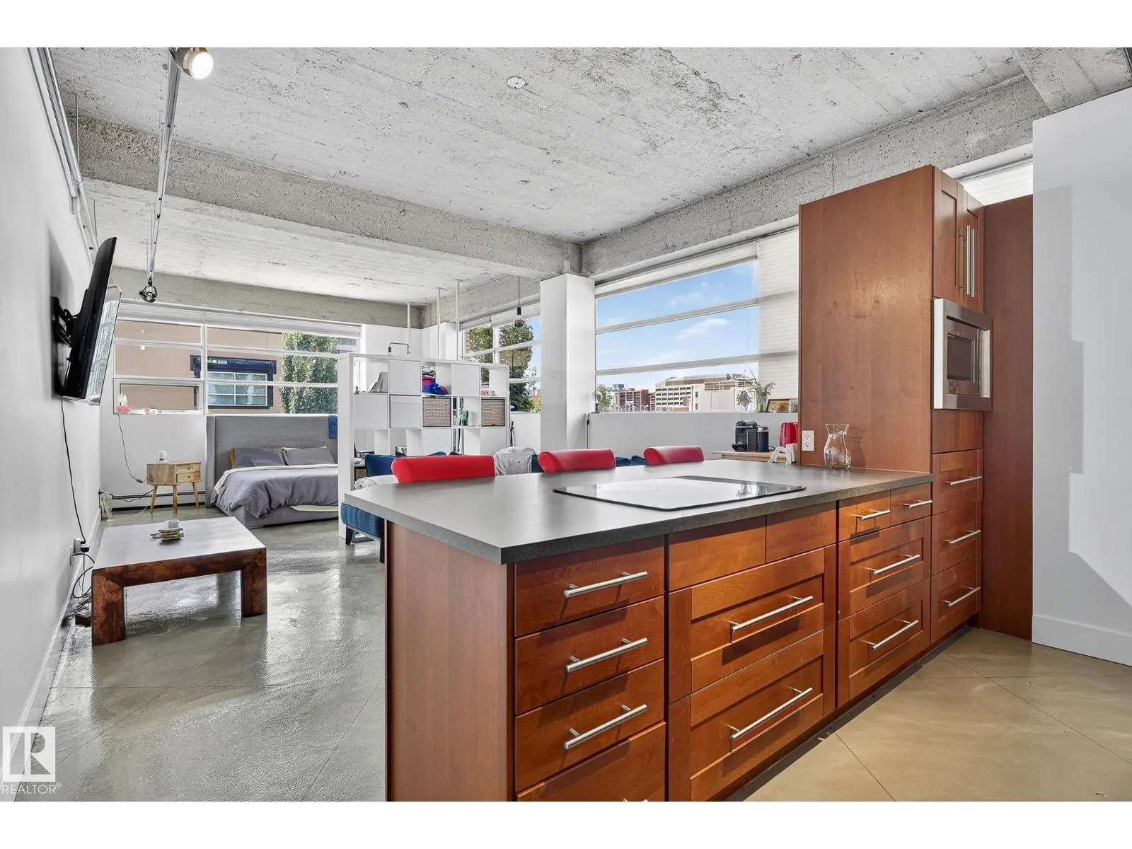 FIFTH STREET LOFTS! RARE CORNER UNIT WITH WRAP-AROUND WINDOWS! Looking for a turnkey rental? MOST OF THE FURNITURE IS INCLUDED (bed, couch, coffee table, bar stools, night stand) IF BUYER DESIRES! This building was initially built by Poole Construction (PCL) in 1951 for the Goodyear Tire Company, and was later converted into lofts by renowned local firm Dub Architects in 1999. You will love this bright corner unit with 12ft ceilings, updated kitchen, & polished concrete flooring! This location can't be beat. You are steps from Grant MacEwan University, Rogers Place, Downtown's best restaurants, pubs, & coffee shops. Quick access to LRT, UofA, & River Valley. This condo is perfect for Downtown professionals, students, or anybody who enjoys living in a unique property with central location. Unit comes with a secured (gated) & energized parking stall, plus an indoor storage cage! Own a unique piece of Edmonton's history while enjoying a stylish, affordable condo and incredible location! Come check it out! (id:27476)