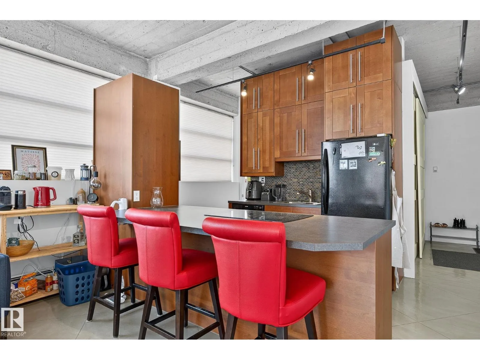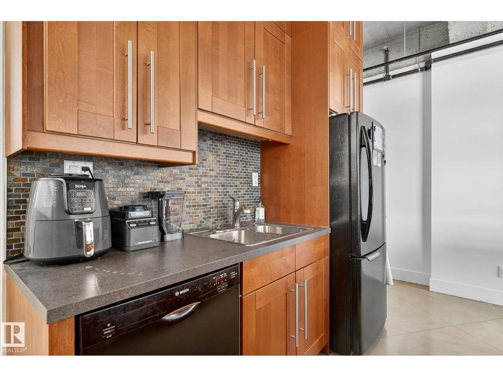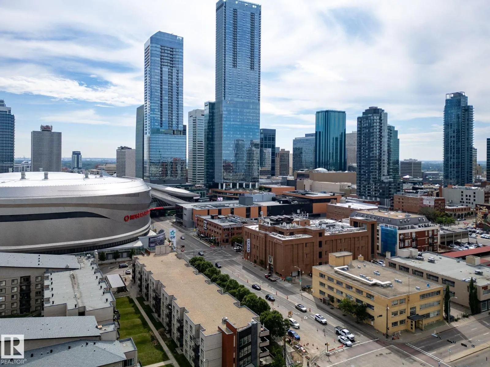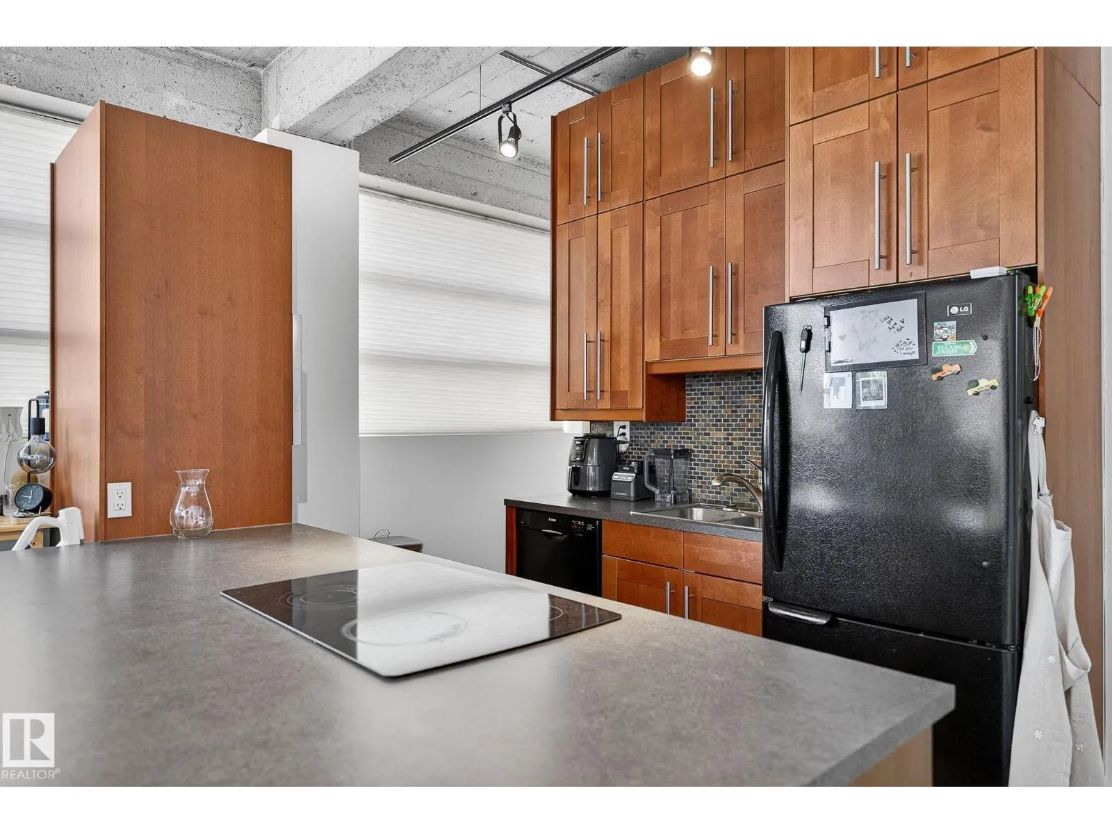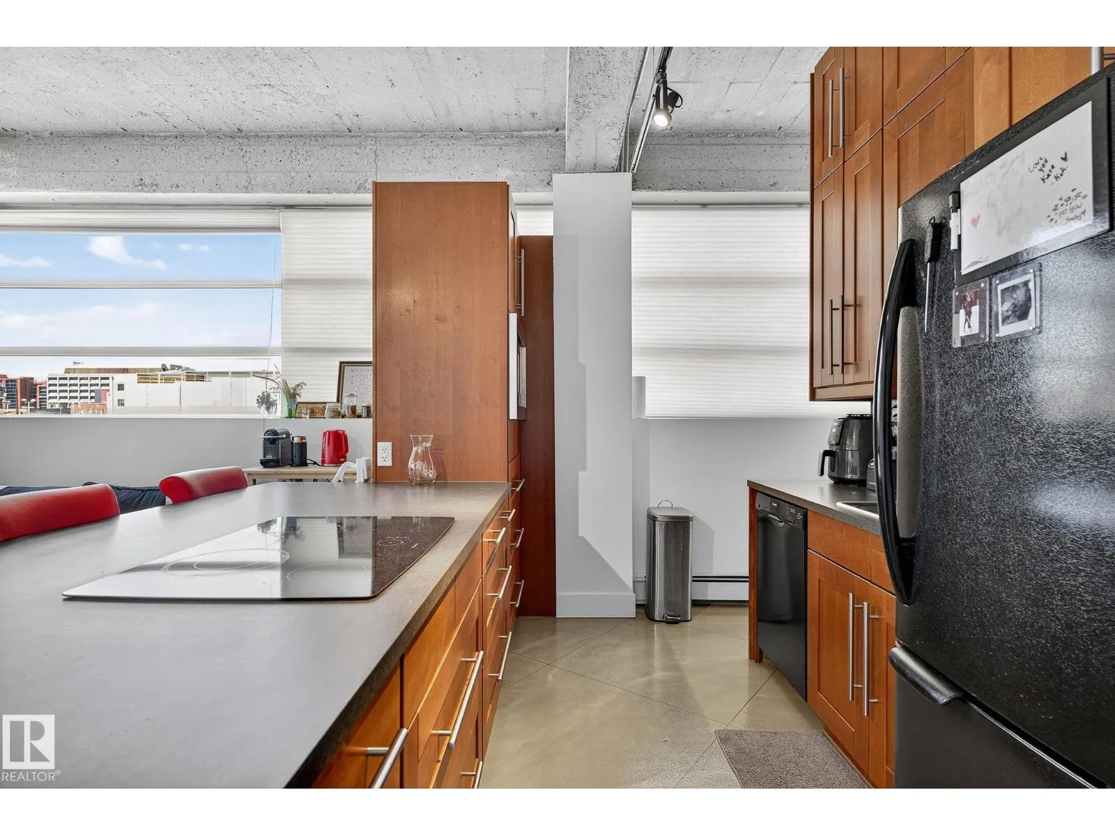 FIFTH STREET LOFTS! RARE CORNER UNIT WITH WRAP-AROUND WINDOWS! Looking for a turnkey rental? MOST OF THE FURNITURE IS INCLUDED (bed, couch, coffee table, bar stools, night stand) IF BUYER DESIRES! This building was initially built by Poole Construction (PCL) in 1951 for the Goodyear Tire Company, and was later converted into lofts by renowned local firm Dub Architects in 1999. You will love this bright corner unit with 12ft ceilings, updated kitchen, & polished concrete flooring! This location can't be beat. You are steps from Grant MacEwan University, Rogers Place, Downtown's best restaurants, pubs, & coffee shops. Quick access to LRT, UofA, & River Valley. This condo is perfect for Downtown professionals, students, or anybody who enjoys living in a unique property with central location. Unit comes with a secured (gated) & energized parking stall, plus an indoor storage cage! Own a unique piece of Edmonton's history while enjoying a stylish, affordable condo and incredible location! Come check it out! (id:27476)