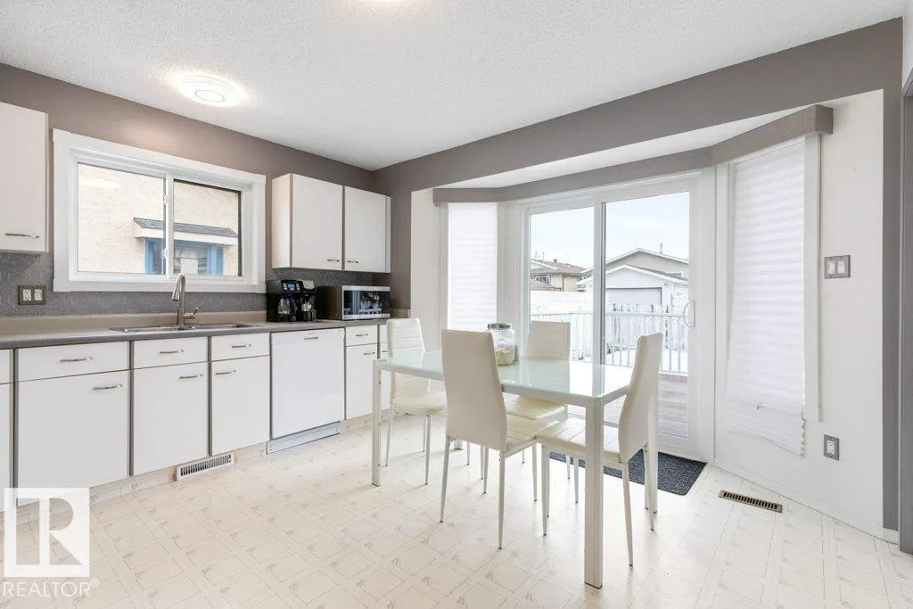 Welcome to this well-maintained family home in the community of Kirkness. This spacious 4-level split offers a large eat-in kitchen with patio doors leading to a composite deck overlooking the fully fenced, east-facing yardâperfect for morning sun and outdoor gatherings. The bright living room features new vinyl plank flooring, and the main bathroom has been tastefully updated. Recent improvements include a new front door and patio door. Upstairs youâll find three comfortable bedrooms, including a primary suite with a convenient 2-piece ensuite. The third level provides excellent family space with a cozy gas fireplace, fourth bedroom, and a 3-piece bathroom. The fourth level includes the laundry area along with mechanical updates such as a newer hot water tank (2017), furnace with A/C installed in 2022, and shingles replaced in 2021. Completing the property is a rebuilt double garage measuring 22'8 x 24'4, offering plenty of room for parking and storage. (id:27476)
