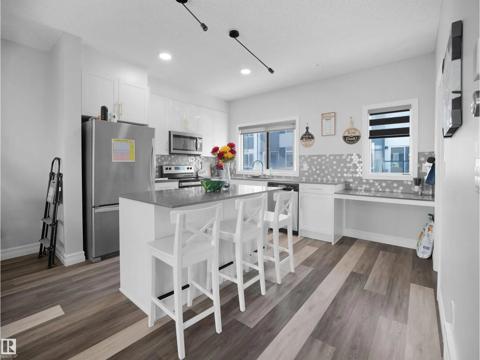 Beautiful end-unit 3-storey townhouse located in the heart of Walker. This well-maintained home features 3 bedrooms plus a versatile flex space and 2.5 bathrooms, along with a double car garage.The main floor offers a bright open-concept layout with spacious living and dining areas, and an extended kitchen complete with a generously sized pantryâperfect for everyday living and entertaining.Enjoy the convenience of walking distance to schools, a commercial plaza, bus stop, and a scenic pond. Situated in a well-managed condo community with low condo fees.An excellent opportunity for first-time home buyers or investorsâdonât miss out! (id:27476)