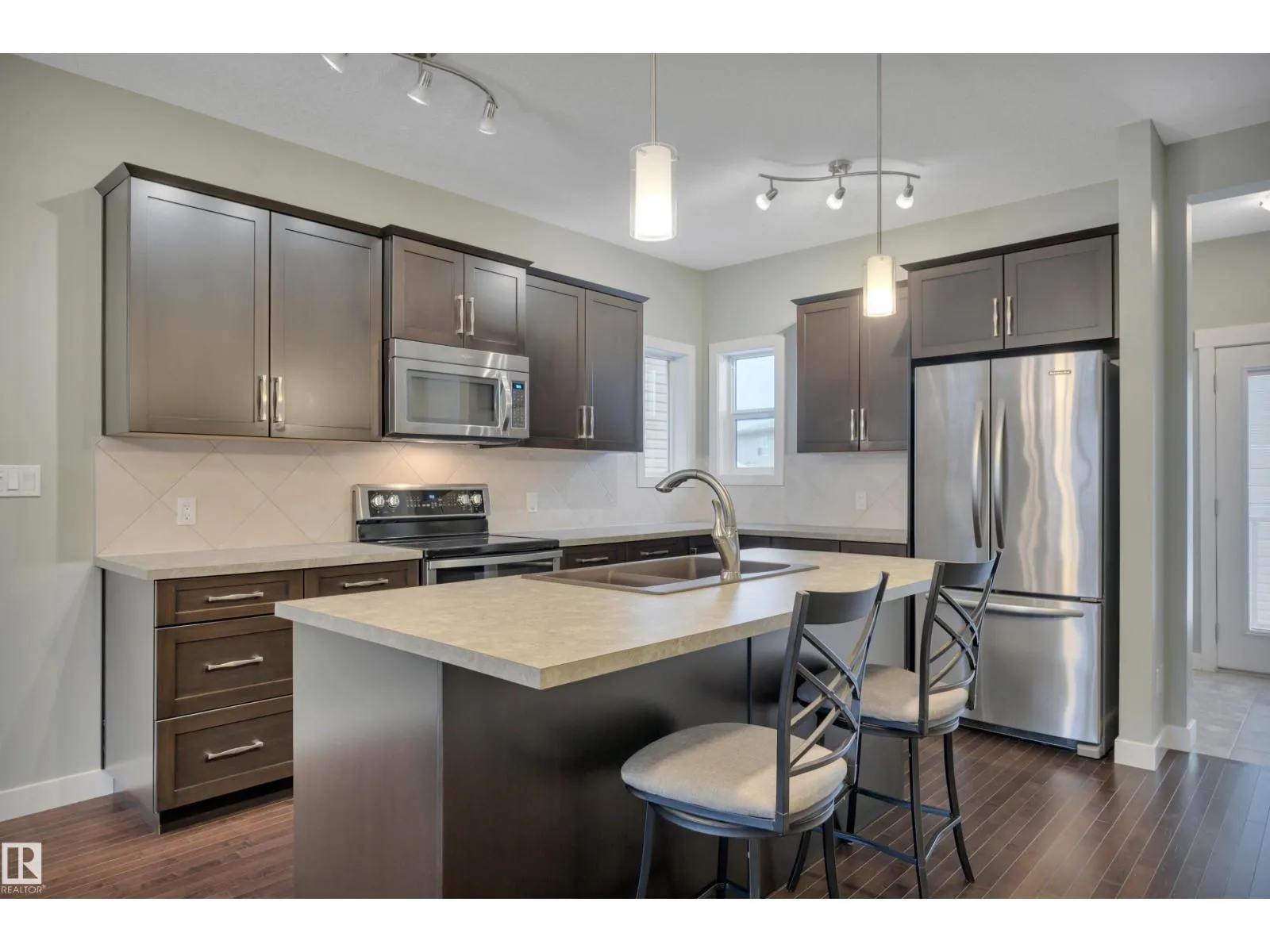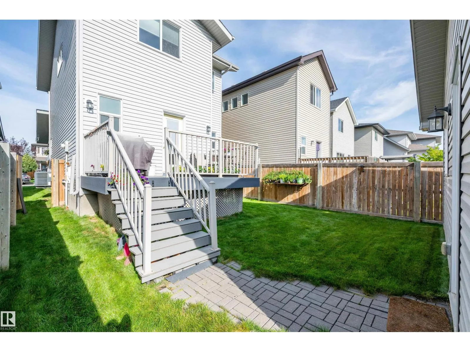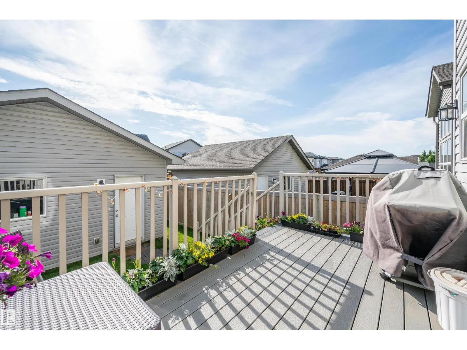 Welcome to Secord! This air-conditioned 3-bedroom home with a finished basement and double detached garage is a must-see. The front living room welcomes you with hardwood floors, 9' ceilings, and an abundance of natural light. The open-concept main floor is ideal for entertaining, featuring a stylish kitchen with stainless steel appliances, pantry, and central dining area. Upstairs, you will find your primary suite with its walk-in closet and 4-piece ensuite, 2 additional bedrooms, and convenient laundry. High-end custom California Closets throughout. The professionally finished basement features an oversized family/flex room, dry bar, and additional 4-piece bathroom. Enjoy the long summer days in your backyard, with its upgraded composite deck, gas line for the BBQ, and ample space for plants or a garden. With easy access to West Edmonton Mall, schools, parks, public transit, and the upcoming Lewis Farms Recreation Centre, you'll be close to all the action. (id:27476)