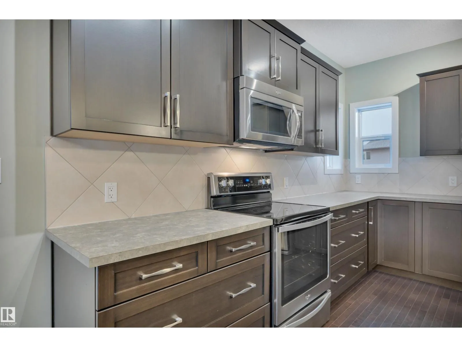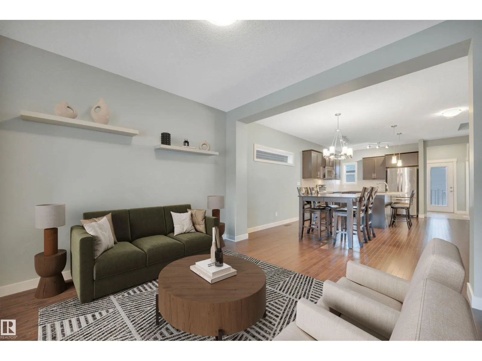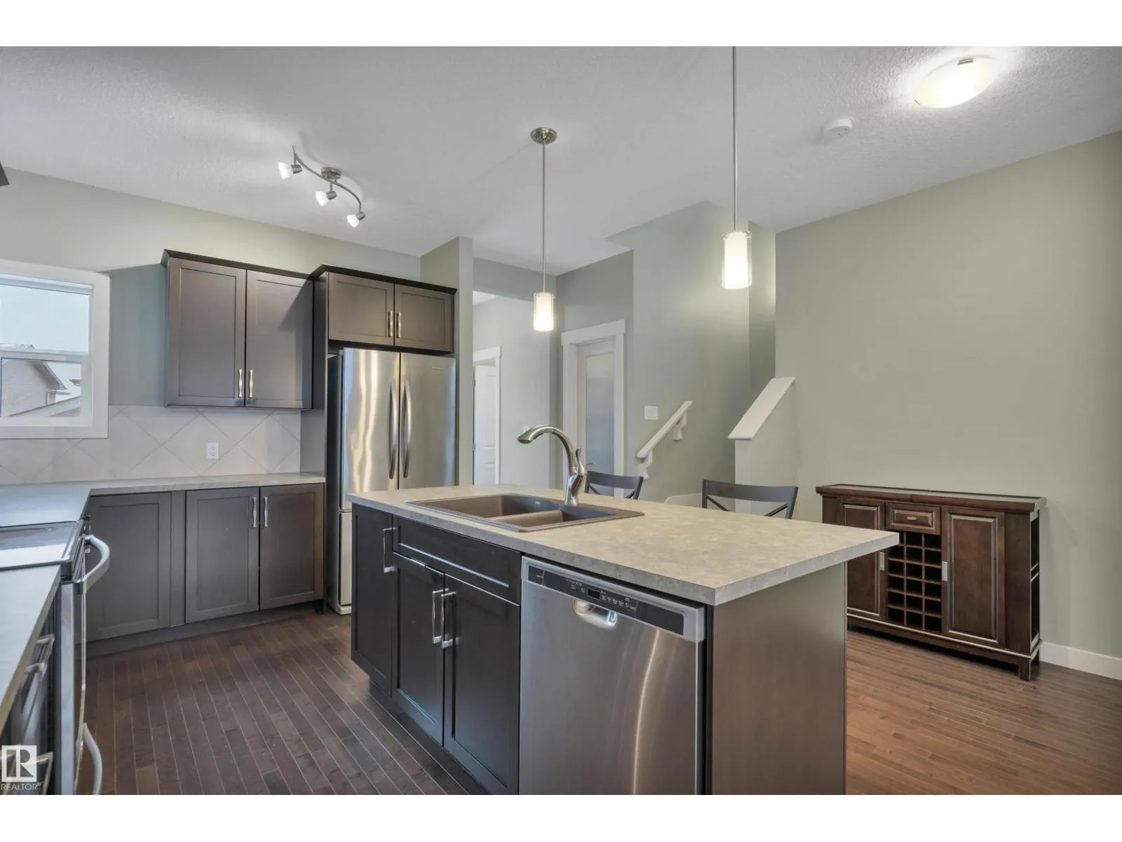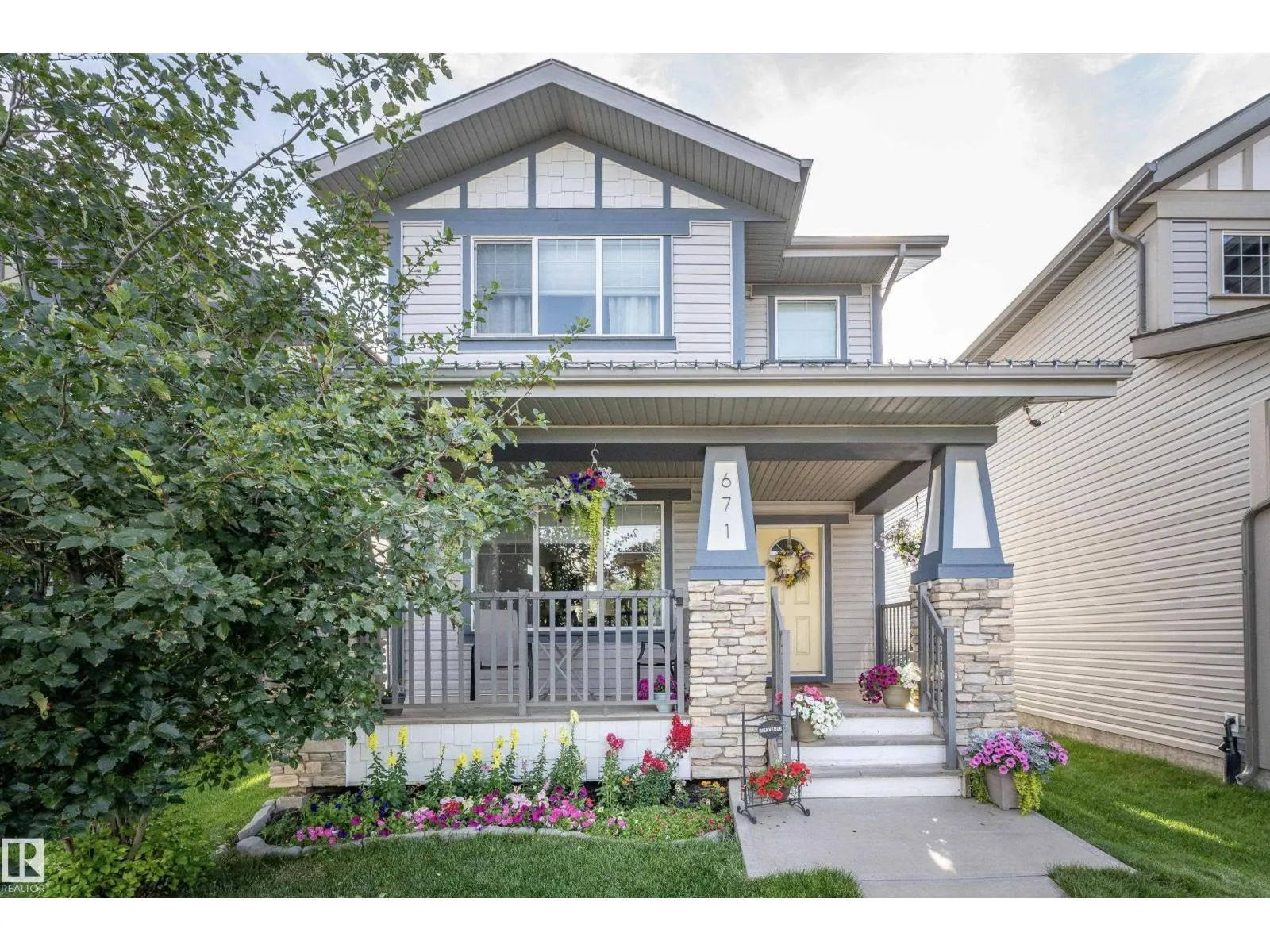 Welcome to Secord! This air-conditioned 3-bedroom home with a finished basement and double detached garage is a must-see. The front living room welcomes you with hardwood floors, 9' ceilings, and an abundance of natural light. The open-concept main floor is ideal for entertaining, featuring a stylish kitchen with stainless steel appliances, pantry, and central dining area. Upstairs, you will find your primary suite with its walk-in closet and 4-piece ensuite, 2 additional bedrooms, and convenient laundry. High-end custom California Closets throughout. The professionally finished basement features an oversized family/flex room, dry bar, and additional 4-piece bathroom. Enjoy the long summer days in your backyard, with its upgraded composite deck, gas line for the BBQ, and ample space for plants or a garden. With easy access to West Edmonton Mall, schools, parks, public transit, and the upcoming Lewis Farms Recreation Centre, you'll be close to all the action. (id:27476)