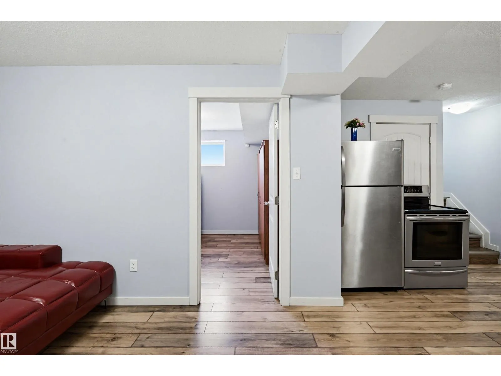 Nestled in a quiet cul de sac in the family friendly community of Laurel, this beautifully maintained 4 bedroom, 3.5 bathroom duplex offers space, flexibility, and an exceptional setting. The thoughtfully designed home features a fully finished basement complete with a kitchen, separate side entrance, and its own laundry, creating a versatile living area well suited for extended family, guests, or added income potential. Step outside to a large backyard with no rear neighbours, backing directly onto a walking trail, an ideal space for kids to play and families to enjoy the outdoors, complete with apple trees. A heated garage with a water line adds everyday convenience, while the location places you just minutes from schools, shopping centres, parks, and major amenities, and only about 8 minutes from Meadows Rec Centre. A wonderful opportunity to own a spacious, well located home designed for modern family living. (id:27476)