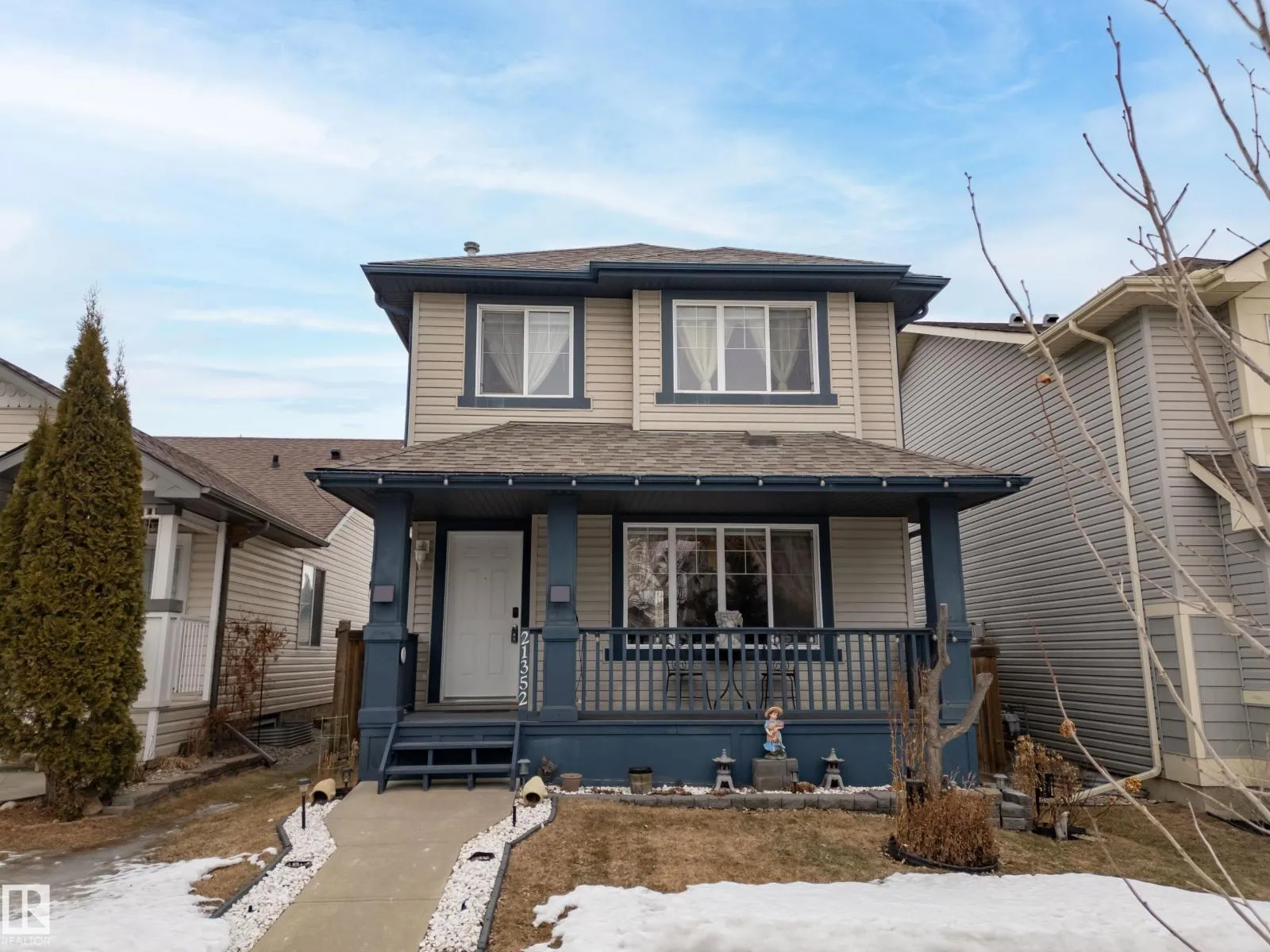 Located in the highly desirable community of Suder Greens, this immaculately kept 4-bedroom, 3.5-bath family home seamlessly combines functionality and convenience. Featuring an open-concept main floor, it has an inviting living room, dining area, well-appointed kitchen, and a convenient 2pc bath. Upstairs, you'll discover a peaceful retreat in the primary suite with its own 4pc ensuite, two additional comfortable bedrooms, and a common 4pc bath. The professionally developed basement adds significant living space, including a large recreation room, a fourth versatile room that could be used as a guest bedroom, and a full 4pc bathroom. This fantastic property features a detached double garage and is located at the end of a cul-de-sac, minimizing through traffic. Living here means having it all: excellent road access to the Anthony Henday and Whitemud Drive, great local schools, and being steps away from the extensive new recreation center, Costco, and the Lewis Farms Transit Centre. (id:27476)