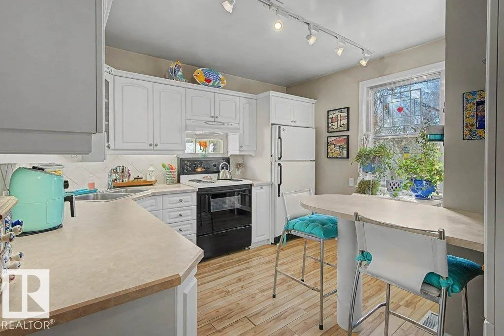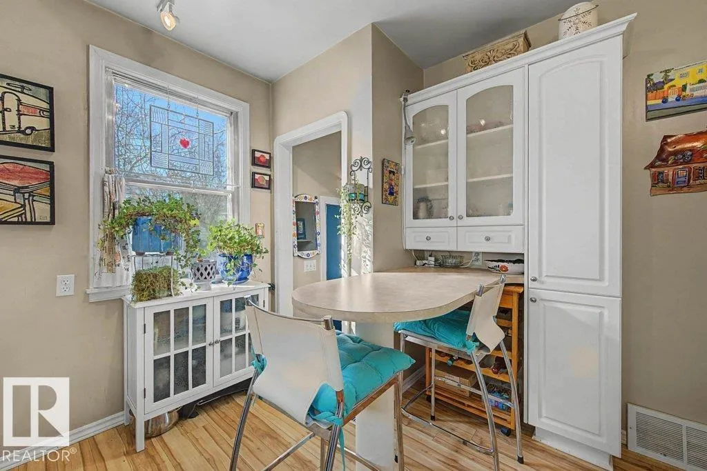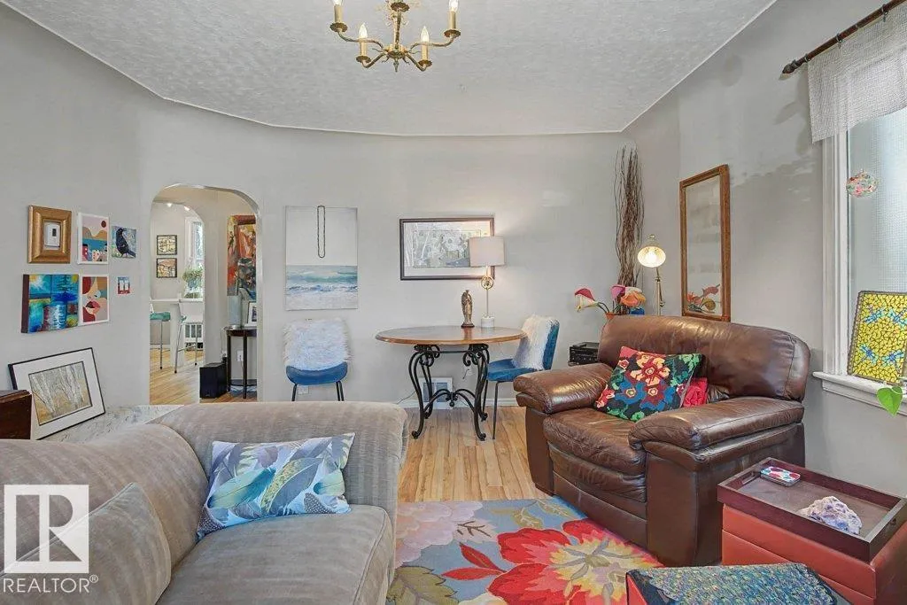 Live steps from Mill Creek Ravine in the heart of Strathcona with this charming 1947 bungalowâperfect for those who value character, walkability, and access to Edmontonâs iconic river valley. Just under 800 sq.ft., the bright main floor features an upgraded white kitchen with breakfast bar for easy mornings and casual entertaining, two bedrooms, a 4pc bath, and inviting living/dining spaces enhanced by coved ceilings and timeless details. Newer flooring adds a fresh and bright feel. The finished basement expands your lifestyle with a rec room, games area, third bedroom, 3pc bath, laundry, and ample storageâideal for guests, hobbies, or a home office. Enjoy sunny afternoons in the south-facing yard with mature landscaping, deck, and a beautiful apple tree. A newer double garage offers secure parking and extra storage. All just minutes to Whyte Ave, trails, cafes, and amenities. (id:27476)