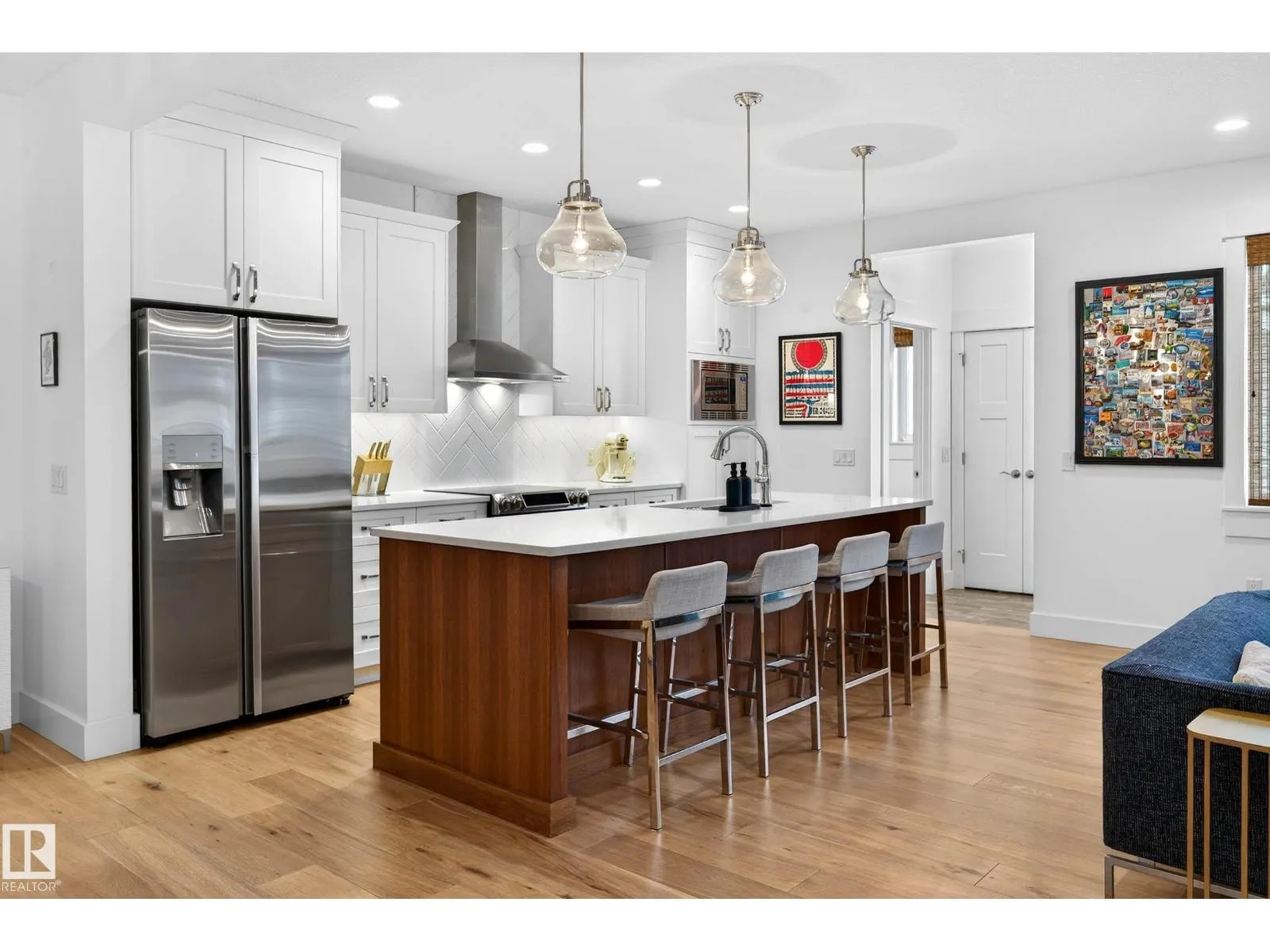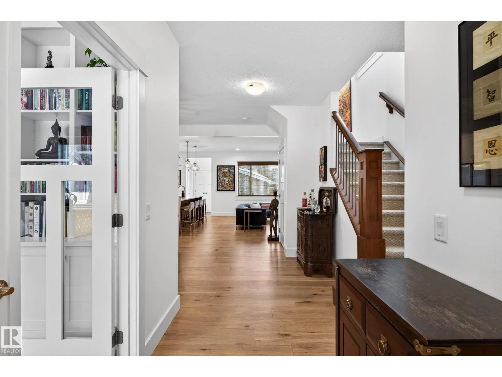 Located in the heart of Ritchie, this meticulously maintained Justin Gray custom built home sits on a full lot & offers exceptional family living. A welcoming front porch leads to a bright & warm main floor featuring engineered hardwood, a generous den/office, a spacious living room w/gas fireplace, dining area, chefâs kitchen w/large island & solid wood cabinetry. Upstairs offers a flexible family hangout space & three bedrooms, including a kidsâ room w/custom built-in bunks. Primary suite is stunning retreat w/vaulted ceilings, double walk-in closets & a beautiful ensuite w/large soaker tub. Fully professionally finished basement is perfect for entertaining w/games area & room for play or watching a movie. Offering wet bar, fourth bedroom & full bath. Enjoy a private yard, sunny deck & double garage. Walk to school or to Ritchie Market for favourites incl. Campio, Transcend Coffee & ACME Meats. Custom wood blinds, 9ft ceilings, A/C & built-in organizers & shelving throughout complete this stunning home. (id:27476)