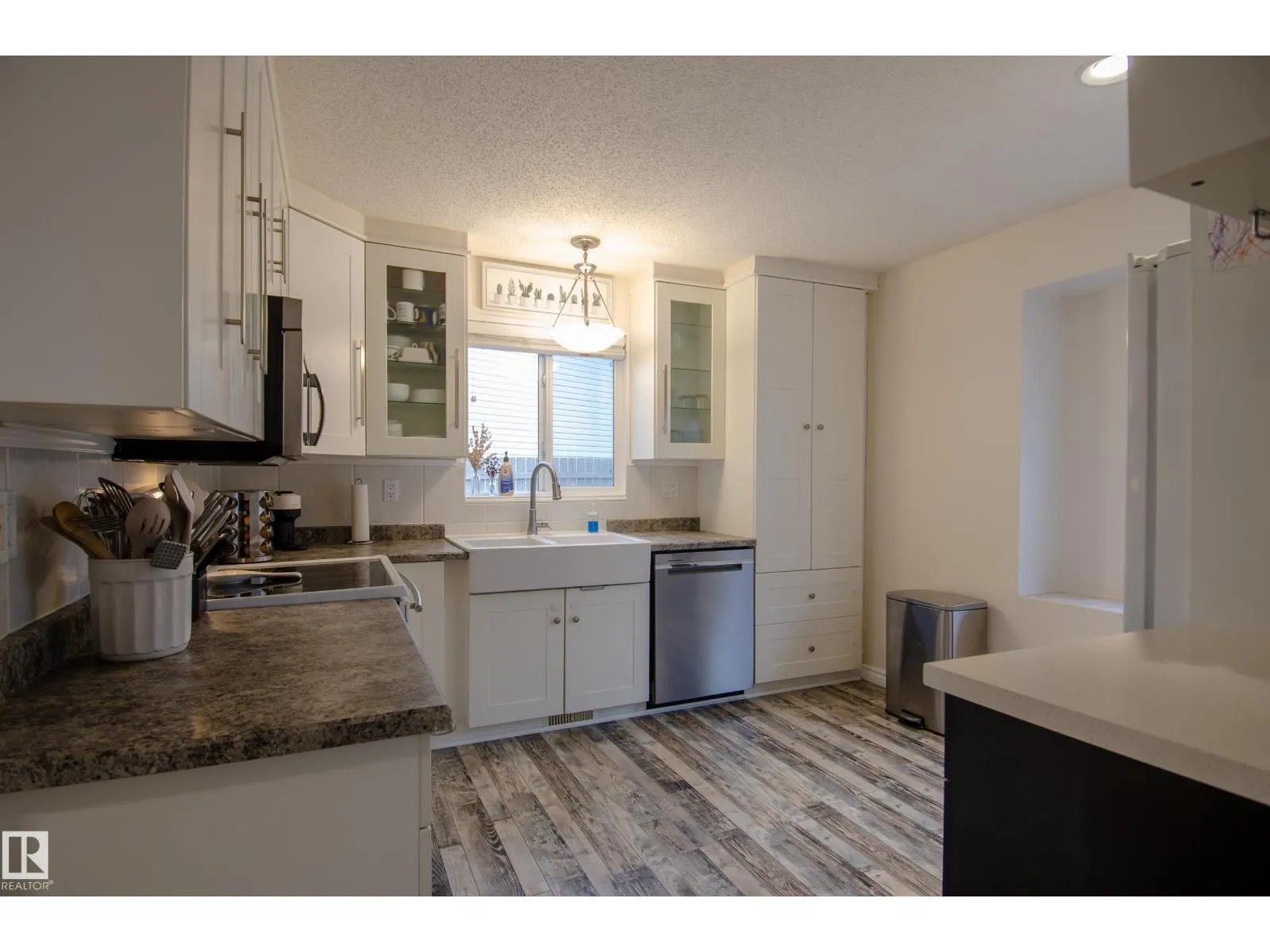 Tucked away on a quiet Crawford Plains cul-de-sac, this 4-level split offers over 2,000 sq. ft. of total living space. The main floor impresses with modern flooring, a stylish feature wall, and a sun-filled kitchen featuring a farmhouse sink. Upstairs are three generous bedrooms, including a primary with cheater-door access to the 4-piece bath. The third level provides a spacious family room, a fourth bedroom, and a second full bathroom. The basement features a versatile flex room and a large 5th bedroom (non-conforming window size). Efficiency is a highlight with a 4-year-old furnace and a brand-new heat pump, providing an eco-friendly way to heat and cool the home (optimal to -10°C). The private backyard is an entertainer's dream with a large deck and gazebo. Completing the property is an oversized double detached garage (28' x 25'), ideal for a workshop. This move-in-ready home perfectly balances functionality with major mechanical upgrades in a prime family-oriented location. (id:27476)