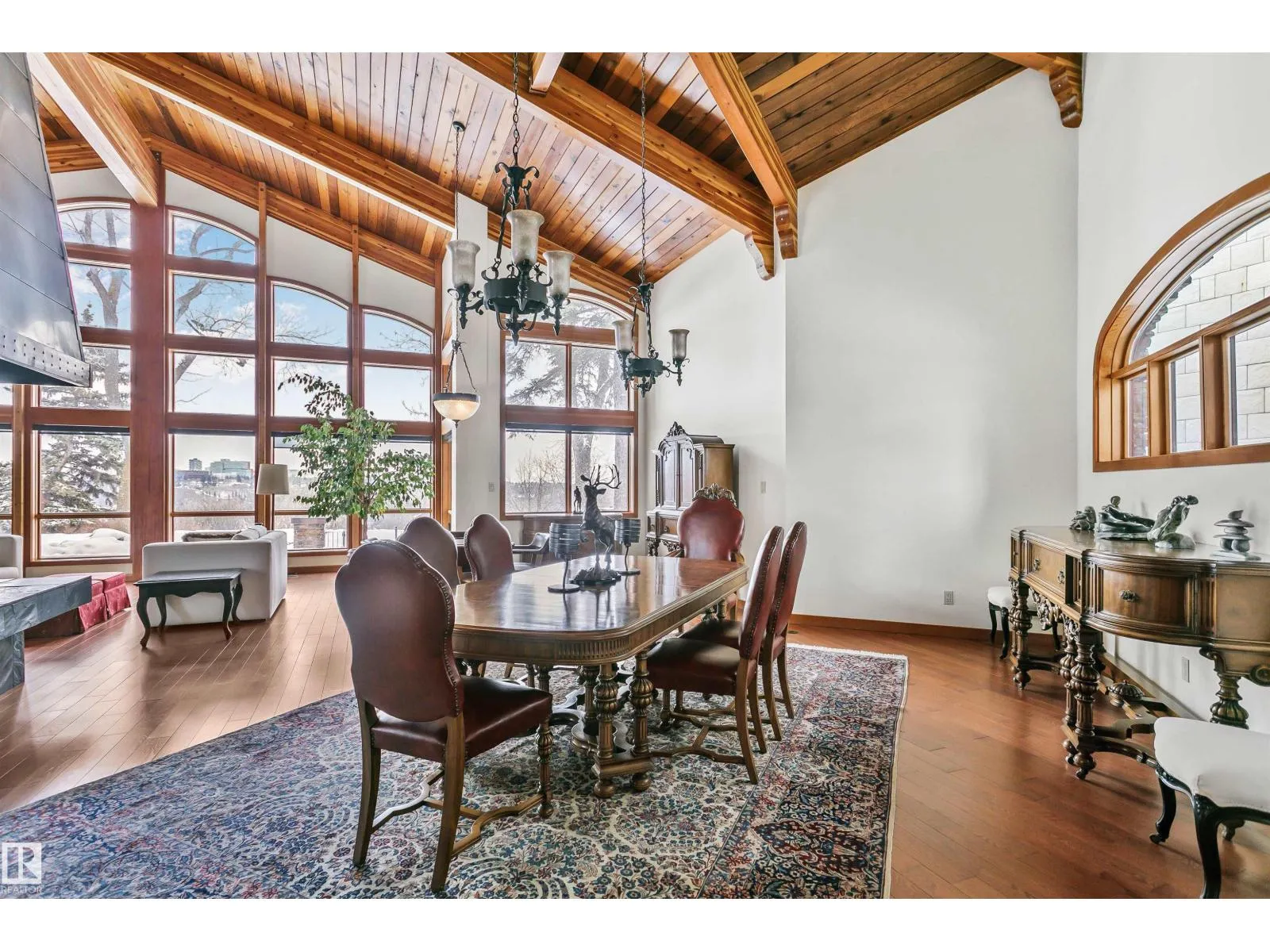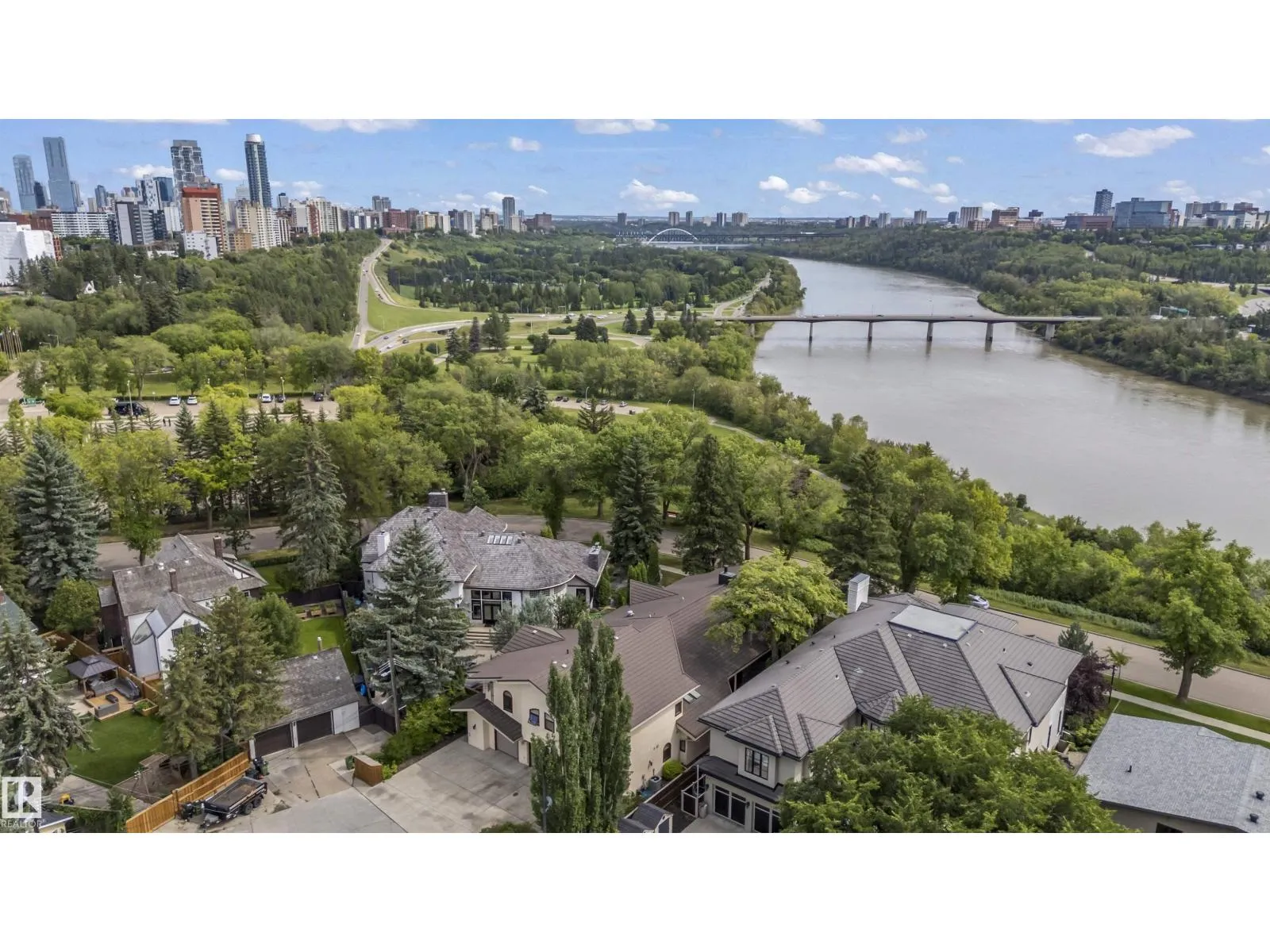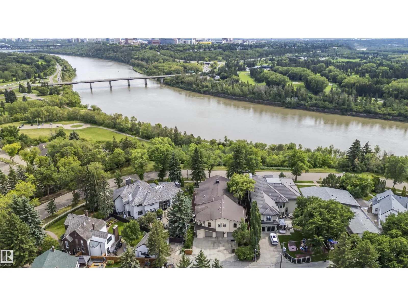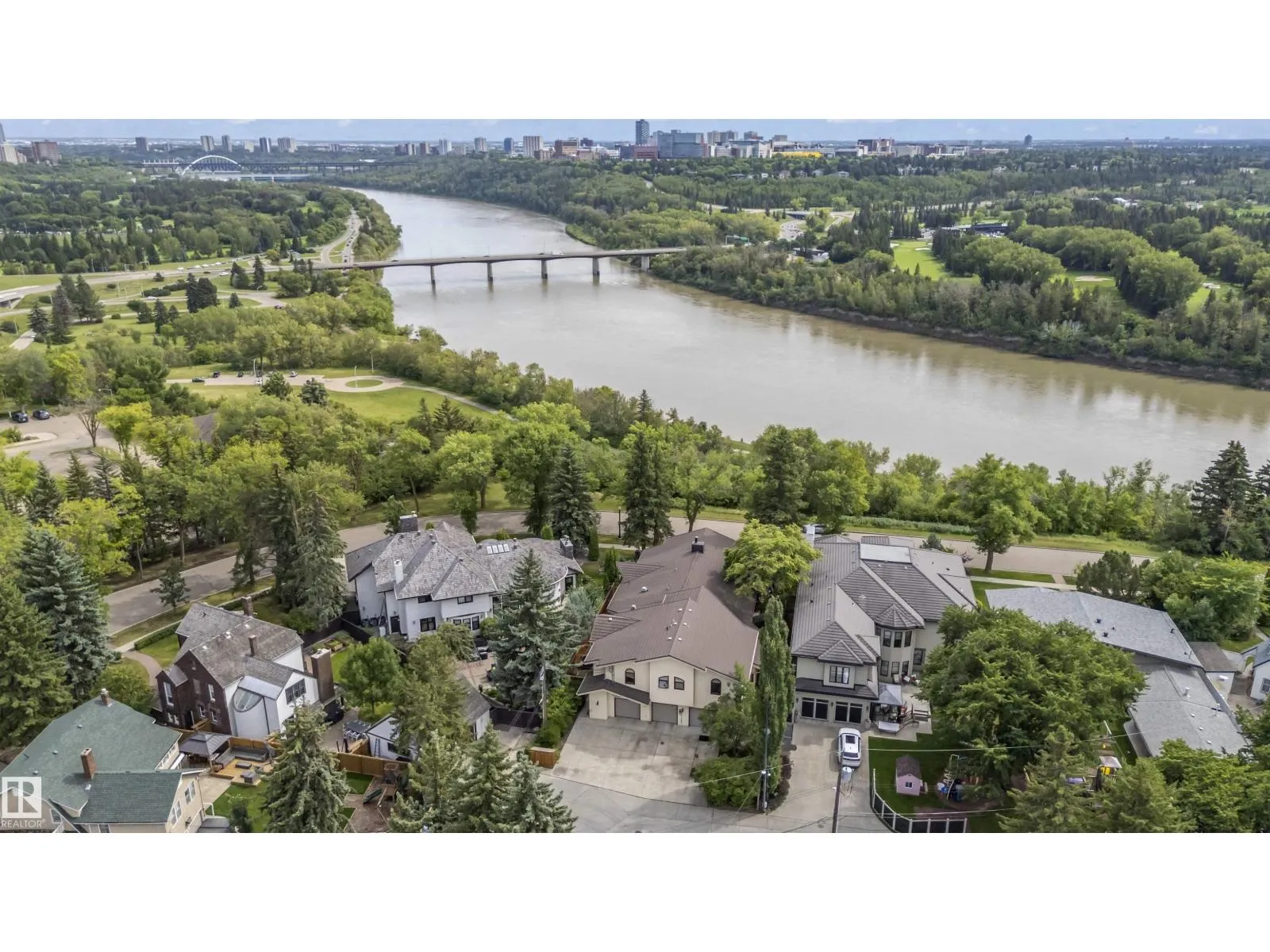 Prestigious Old Glenora with breathtaking river views. This extraordinary custom design built bungalow with upper floor nanny/children wing with separate entrance is superior construction. 5,429 sf above grade, m/f 3,845 sf upper floor 1513 sf. The residence blends timeless elegance with modern sophistication, featuring expansive principal rooms, soaring ceilings & impeccable craftsmanship throughout. The gourmet kitchen is designed for both entertaining & everyday luxury, flowing seamlessly into formal & casual living spaces filled with natural light & framed by stunning vistas. Recently installed brand new hardwood floors & updated decor.  The primary retreat on the main floor offers a spa inspired ensuite & generous walk-in closet. Upper level has 2 additional bedrooms with ensuites & a spacious family room perfect for guests or growing families. Designed for effortless living without compromise, this rare offering is set on a beautifully landscaped lot with one Edmontonâs most coveted address. (id:27476)