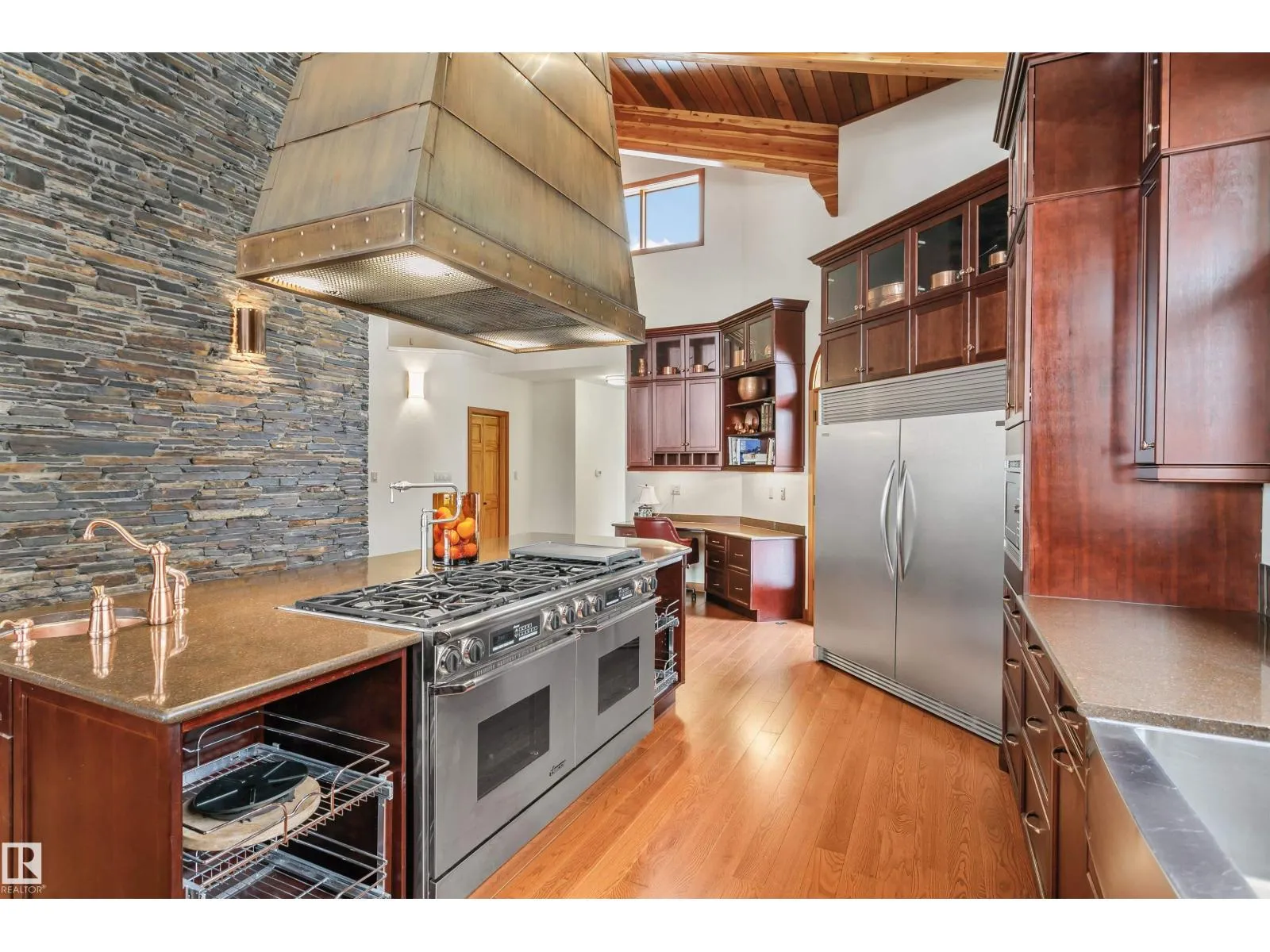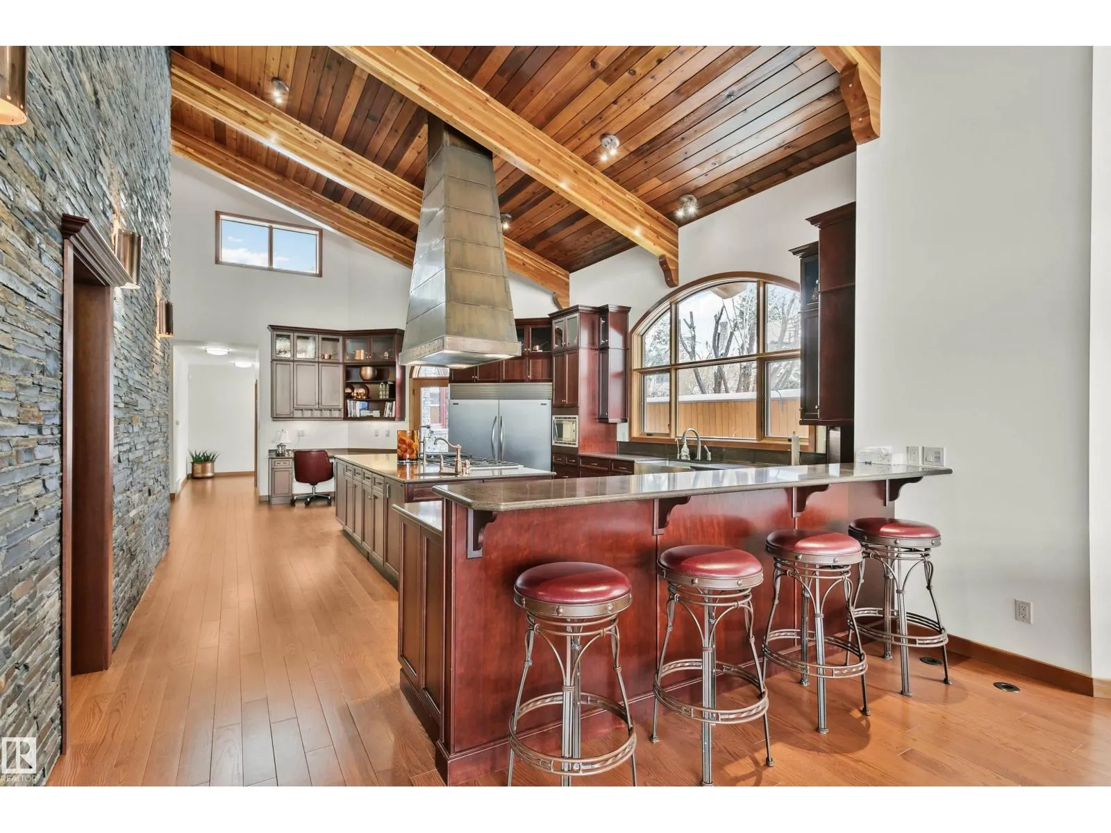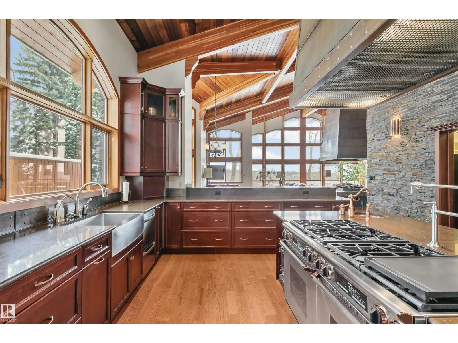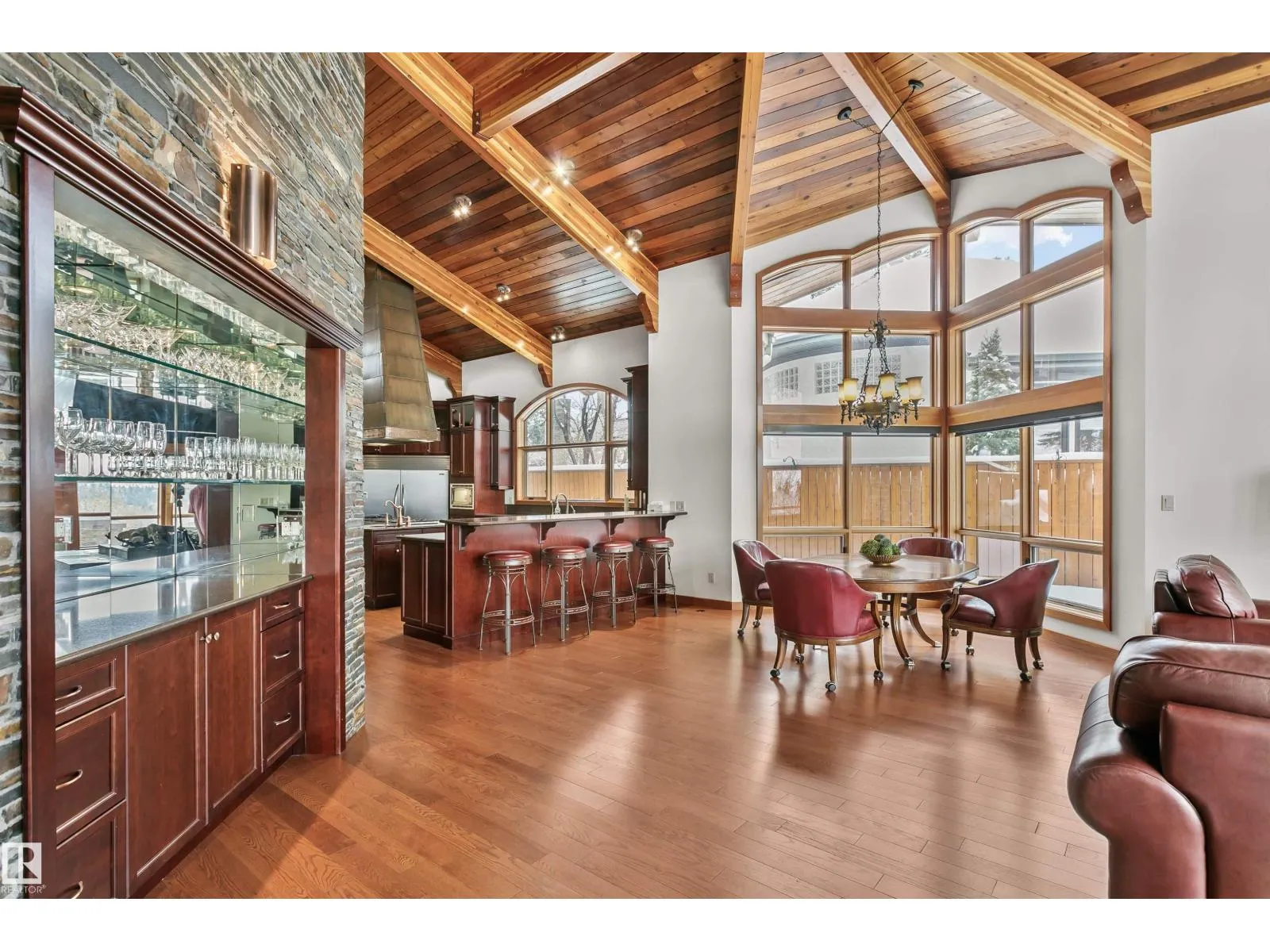 Prestigious Old Glenora with breathtaking river views. This extraordinary custom design built bungalow with upper floor nanny/children wing with separate entrance is superior construction. 5,429 sf above grade, m/f 3,845 sf upper floor 1513 sf. The residence blends timeless elegance with modern sophistication, featuring expansive principal rooms, soaring ceilings & impeccable craftsmanship throughout. The gourmet kitchen is designed for both entertaining & everyday luxury, flowing seamlessly into formal & casual living spaces filled with natural light & framed by stunning vistas. Recently installed brand new hardwood floors & updated decor.  The primary retreat on the main floor offers a spa inspired ensuite & generous walk-in closet. Upper level has 2 additional bedrooms with ensuites & a spacious family room perfect for guests or growing families. Designed for effortless living without compromise, this rare offering is set on a beautifully landscaped lot with one Edmontonâs most coveted address. (id:27476)
