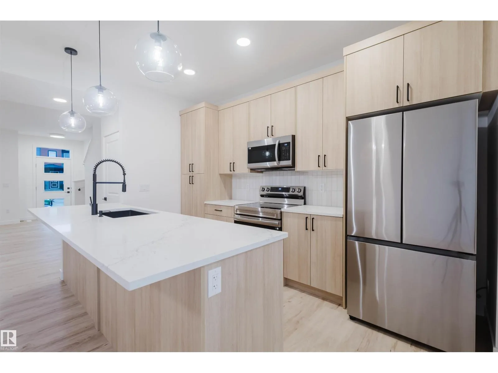 Discover Your Dream Home in Kinglet Gardens. This stunning 3-bedroom, 2.5-bathroom duplex seamlessly blends style and functionality. The main floor boasts 9' ceilings and a convenient half bath, perfect for guests. The beautifully designed kitchen is a highlight, featuring 42 upgraded cabinets, quartz countertops, and a waterline to the fridge. Upstairs, enjoy the flex area, spacious laundry room, full 4-piece bathroom, and 3 generously sized bedrooms. The luxurious primary suite offers a walk-in closet and ensuite. The separate side entrance and unfinished basement offer plenty of opportunities. Other features include FULL LANDSCAPING, a $3k appliance allowance, unfinished basement with painted floors, high-efficiency furnace, and triple-pane windows. Buy with confidence. Built by Rohit. UNDER CONSTRUCTION! Photos may differ from actual property. Appliances NOT included. (id:27476)