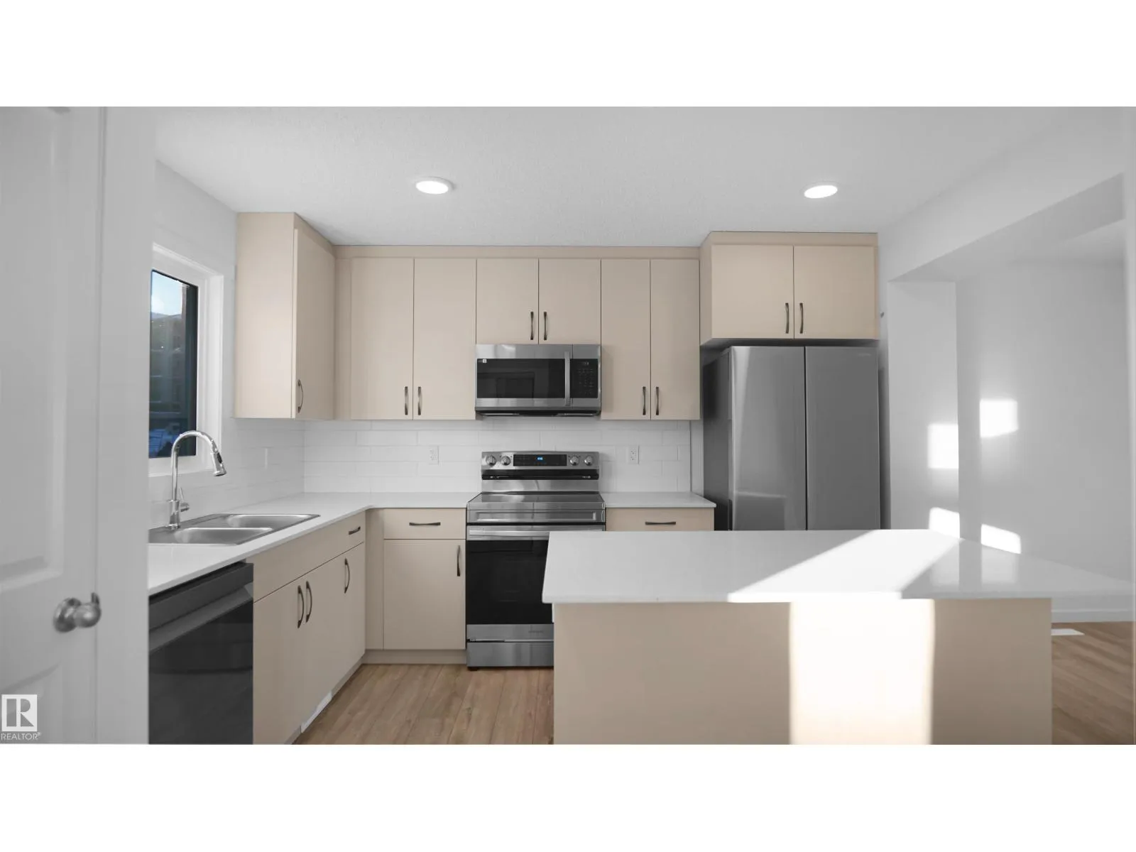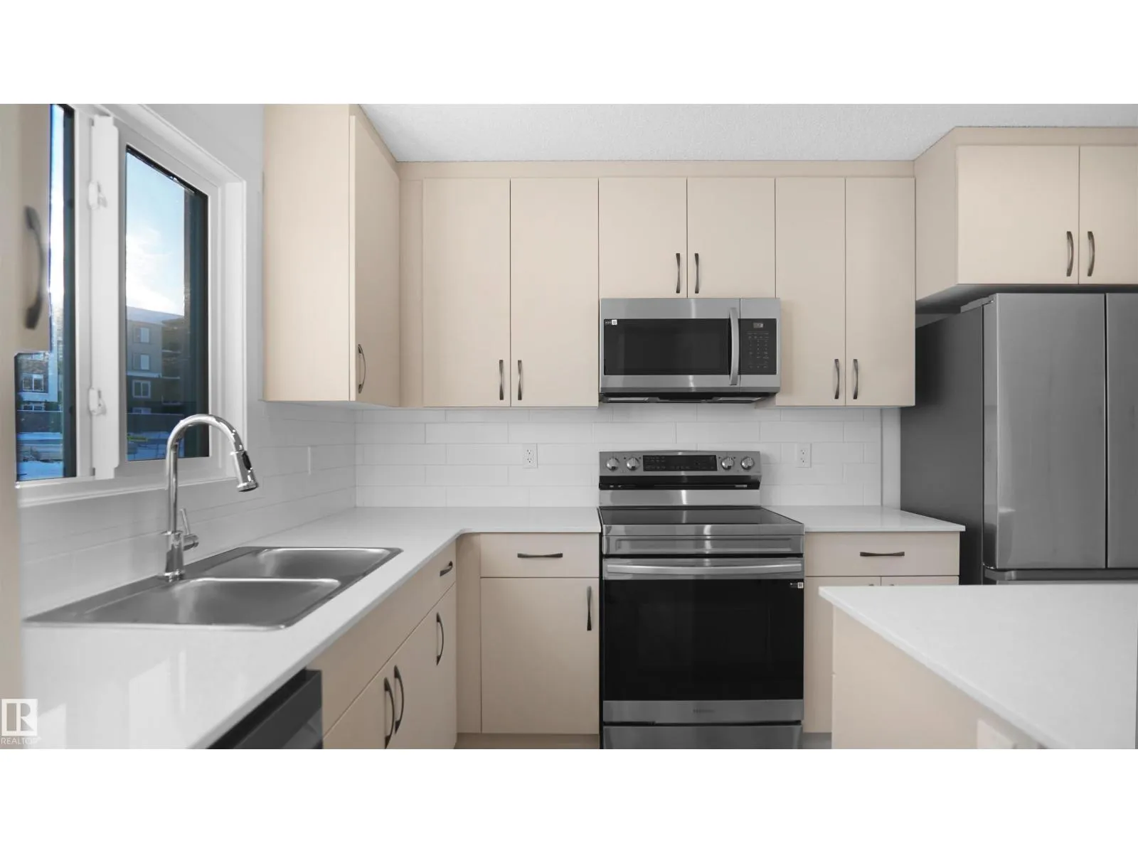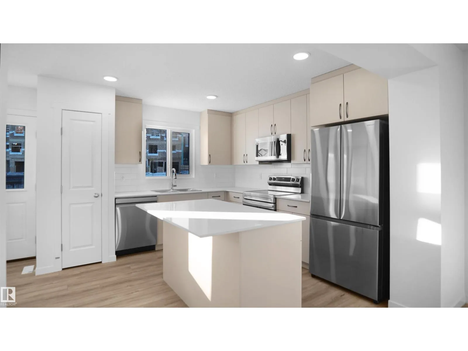 Welcome home to this brand new row house unit the âRowan Built by StreetSide Developments and is located in one of South West Edmonton's newest premier communities of Desrochers. With almost 900 square Feet, it comes with front yard landscaping and a single rear detached parking pad this opportunity is perfect for a young family or young couple. Your main floor is complete with upgrade luxury Vinyl Plank flooring throughout the great room and the kitchen. room. Highlighted in your new kitchen are upgraded cabinet and a tile back splash. The upper level has 2 bedrooms and 1 full bathrooms. This home also comes with a unfinished basement perfect for a future development. ***Home is under construction and the photos are of the show home colors and finishing's may vary, will be complete the end of April to mid may 2026*** (id:27476)