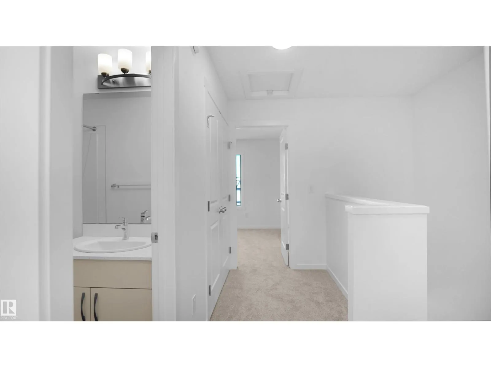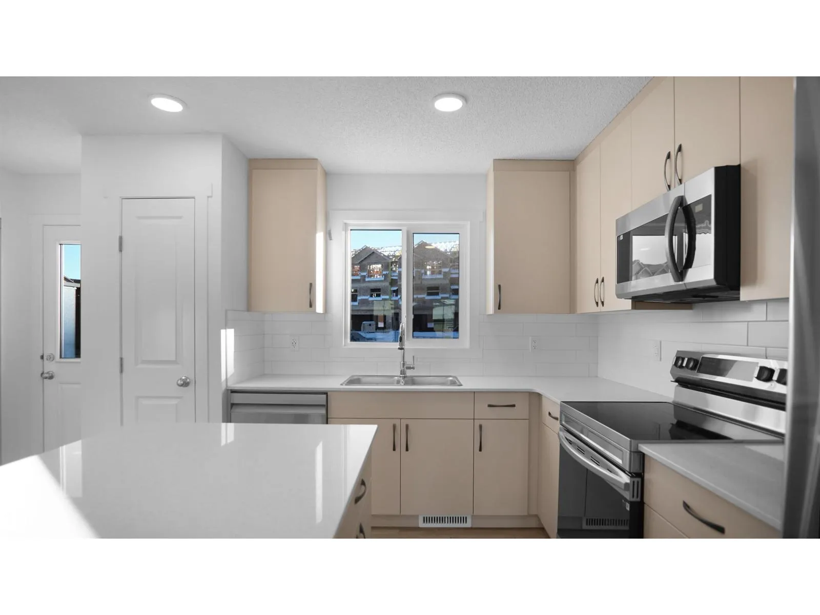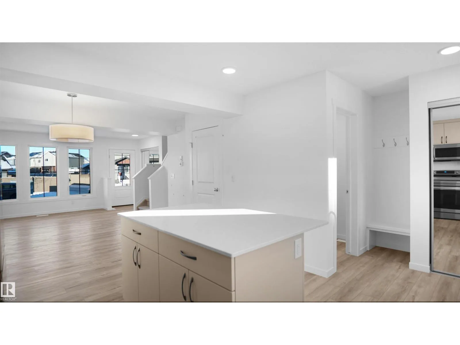 Welcome home to this brand new row house unit the âRowan Built by StreetSide Developments and is located in one of South West Edmonton's newest premier communities of Desrochers. With almost 900 square Feet, it comes with front yard landscaping and a single rear detached parking pad this opportunity is perfect for a young family or young couple. Your main floor is complete with upgrade luxury Vinyl Plank flooring throughout the great room and the kitchen. room. Highlighted in your new kitchen are upgraded cabinet and a tile back splash. The upper level has 2 bedrooms and 1 full bathrooms. This home also comes with a unfinished basement perfect for a future development. ***Home is under construction and the photos are of the show home colors and finishing's may vary, will be complete the end of April to mid may 2026*** (id:27476)