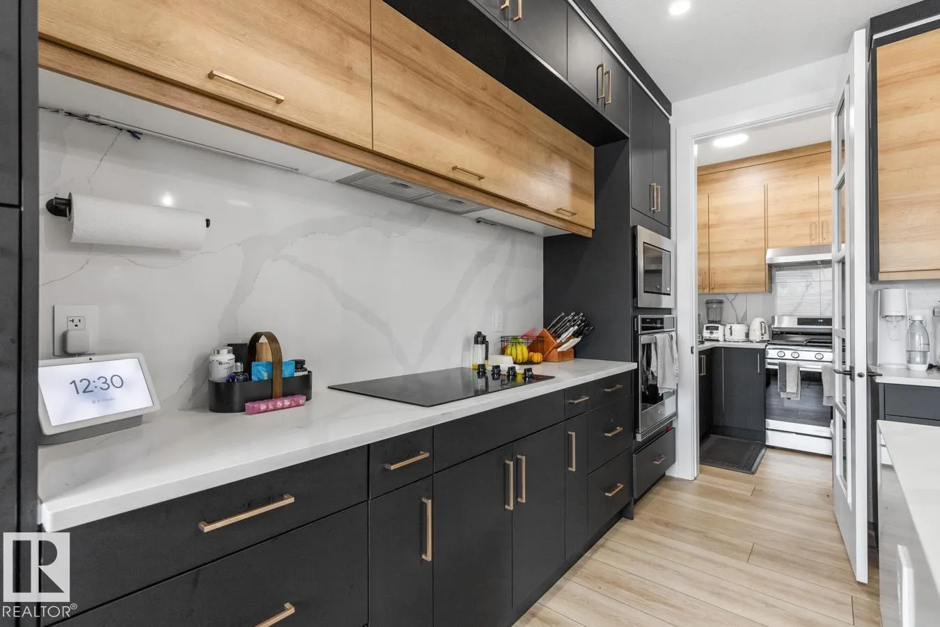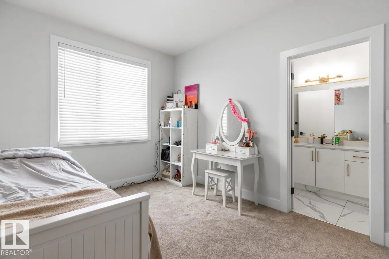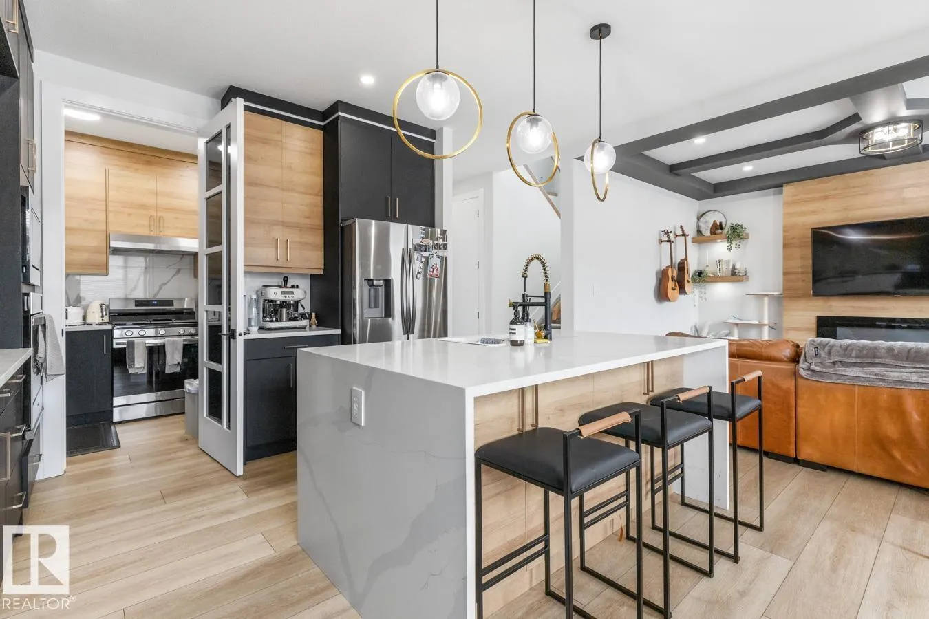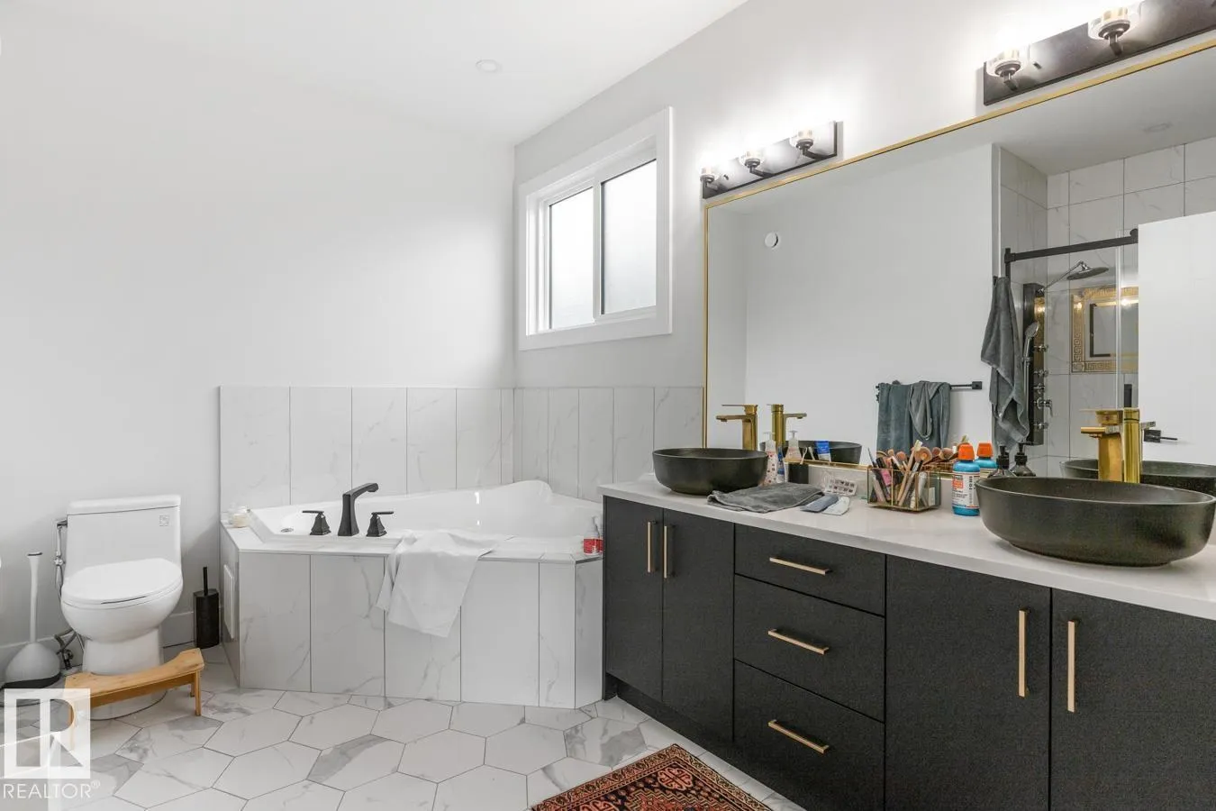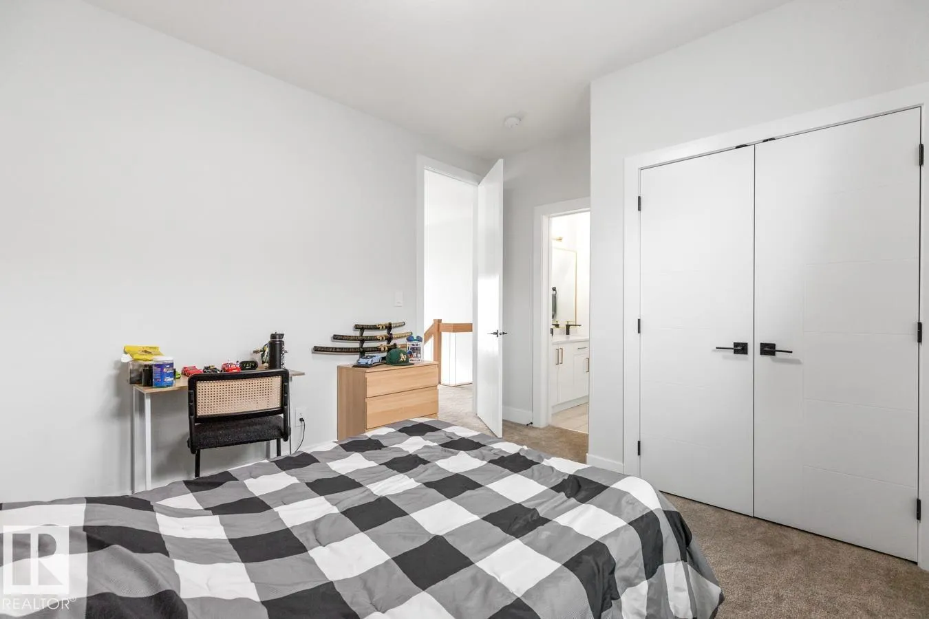 Deluxe Custom Built home on a pie shape lot in a Cul De Sac featuring 5 Bedrooms, & 4 Baths. You will enjoy 9 foot ceilings on all levels and an opening from the main to the upper floor giving a airy open feeling. 8 ft doors all around. Main floor has a living room, family room, formal dining room, bedroom, full bath, and a spacious kitchen with large island, upgraded cabinetry, quartz countertops/backsplash, breakfast nook and a adjoining spice kitchen with a gas stove. Family room has a decorative electric fireplace and designed ceilings. The upper floor has four good size bedrooms. The master suite has a walk in closet, indent ceilings, huge ensuite with separate shower and jetted tub. Two other bedrooms having a jack & Jill bath also a fourth bedroom and a third bathroom. Upstairs laundry and a loft/bonus room and glass railings. The basement is open for future development with a separate side entrance. Located in the great neighbourhood of Schonsee close to Henday, shopping, lake, park, and bus. (id:27476)