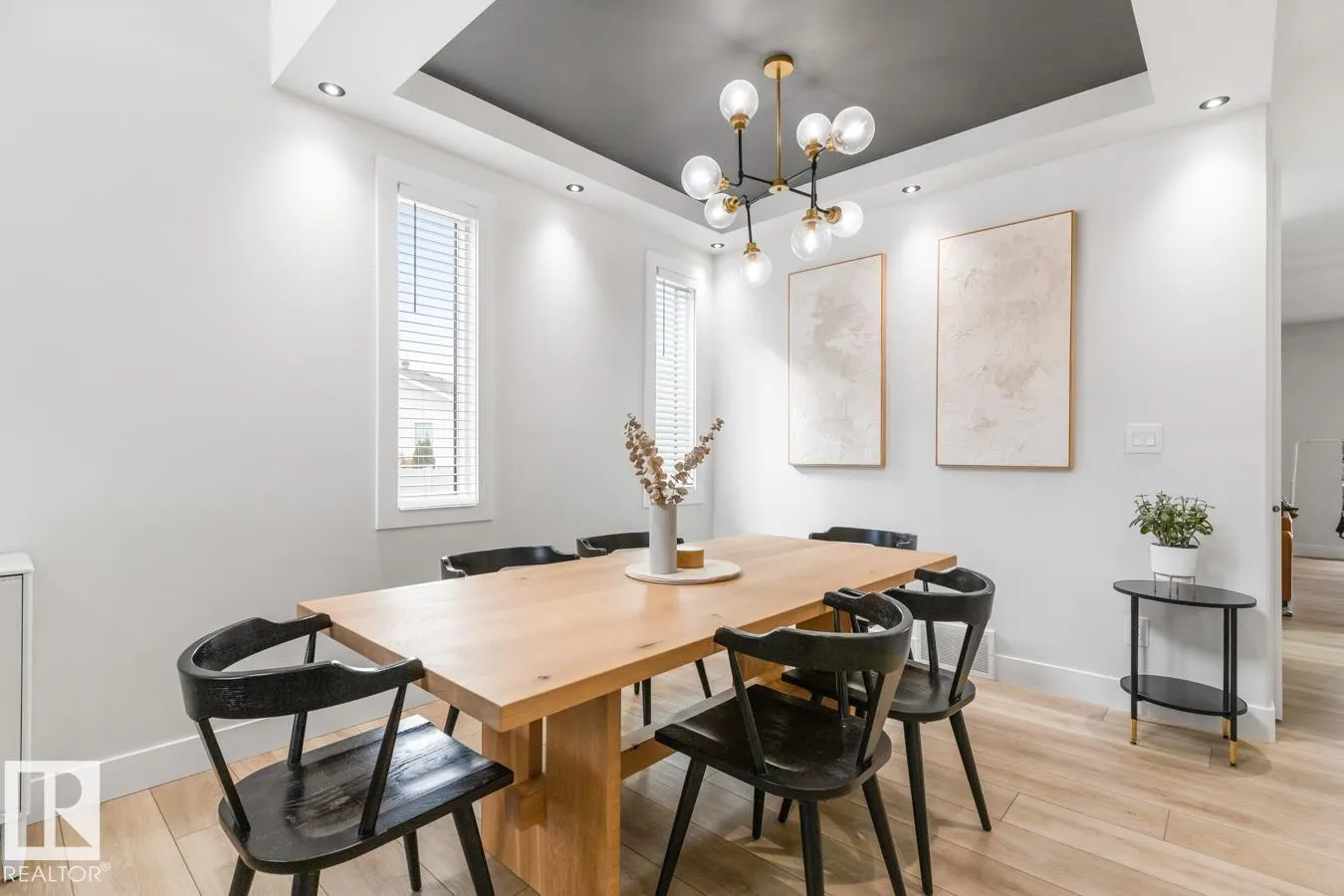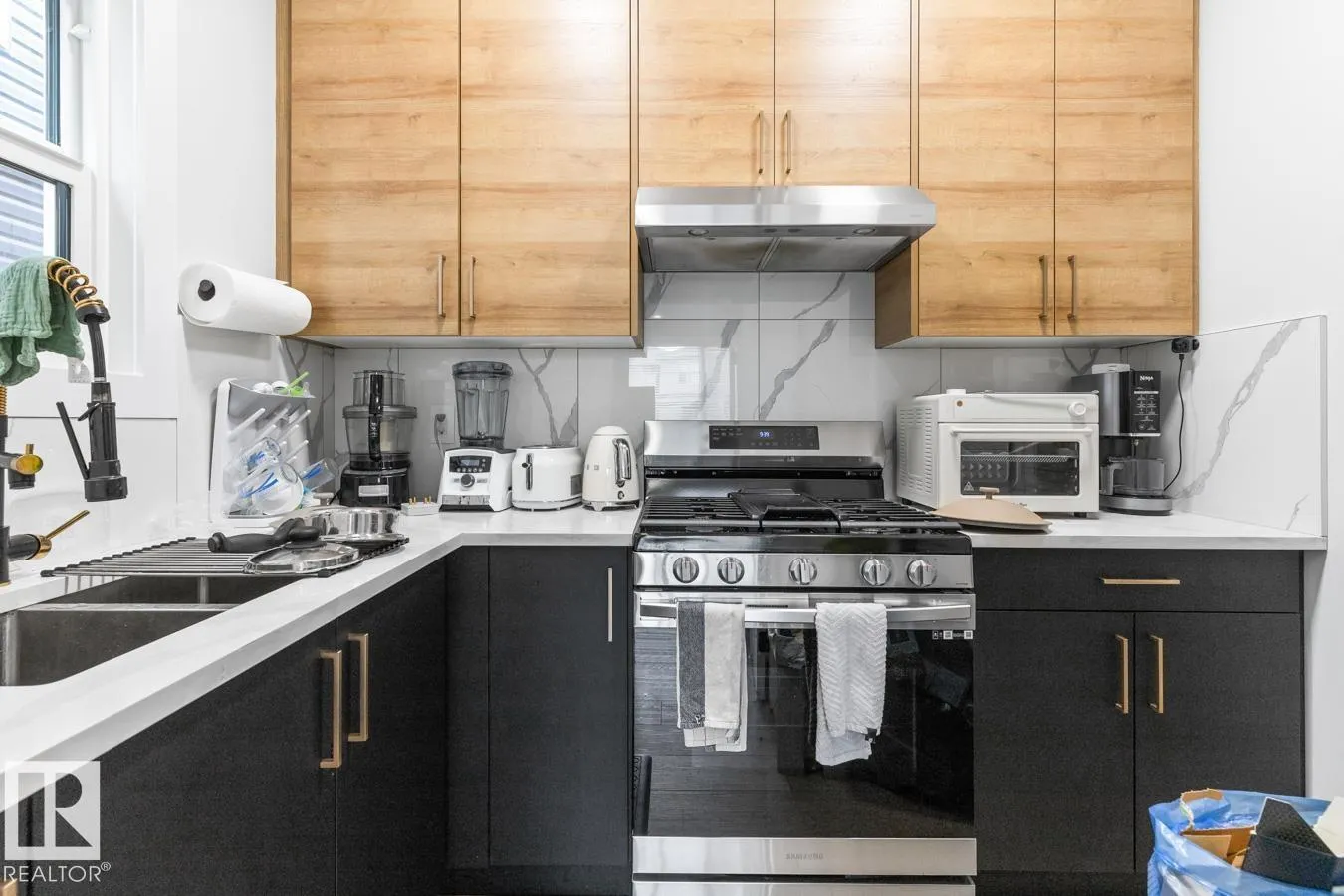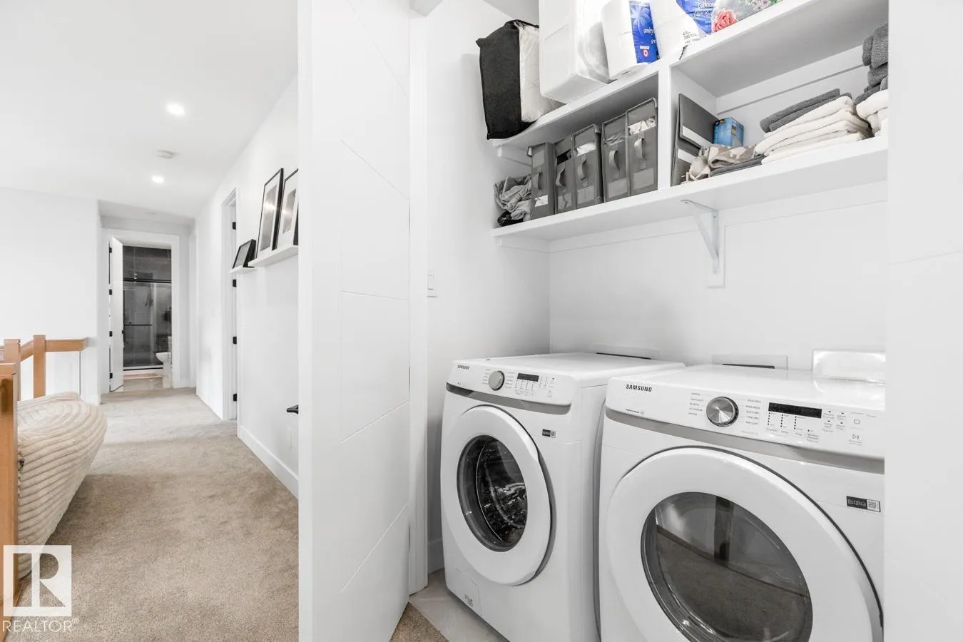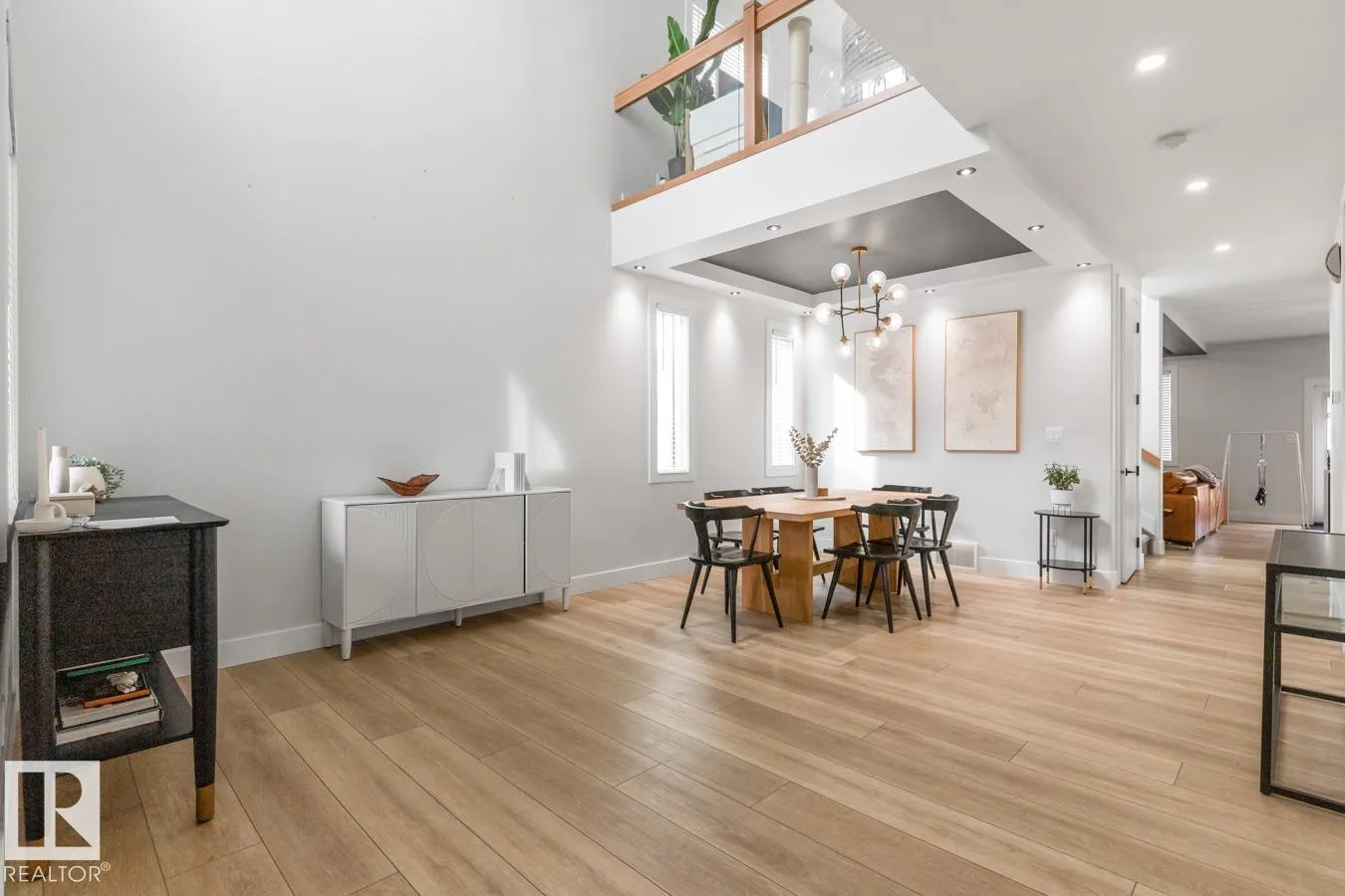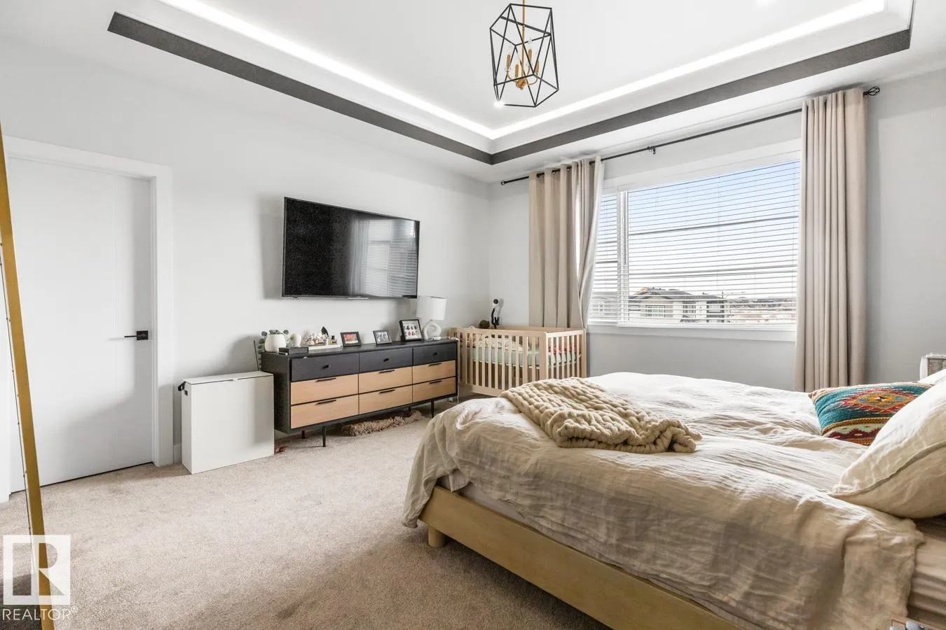 Deluxe Custom Built home on a pie shape lot in a Cul De Sac featuring 5 Bedrooms, & 4 Baths. You will enjoy 9 foot ceilings on all levels and an opening from the main to the upper floor giving a airy open feeling. 8 ft doors all around. Main floor has a living room, family room, formal dining room, bedroom, full bath, and a spacious kitchen with large island, upgraded cabinetry, quartz countertops/backsplash, breakfast nook and a adjoining spice kitchen with a gas stove. Family room has a decorative electric fireplace and designed ceilings. The upper floor has four good size bedrooms. The master suite has a walk in closet, indent ceilings, huge ensuite with separate shower and jetted tub. Two other bedrooms having a jack & Jill bath also a fourth bedroom and a third bathroom. Upstairs laundry and a loft/bonus room and glass railings. The basement is open for future development with a separate side entrance. Located in the great neighbourhood of Schonsee close to Henday, shopping, lake, park, and bus. (id:27476)