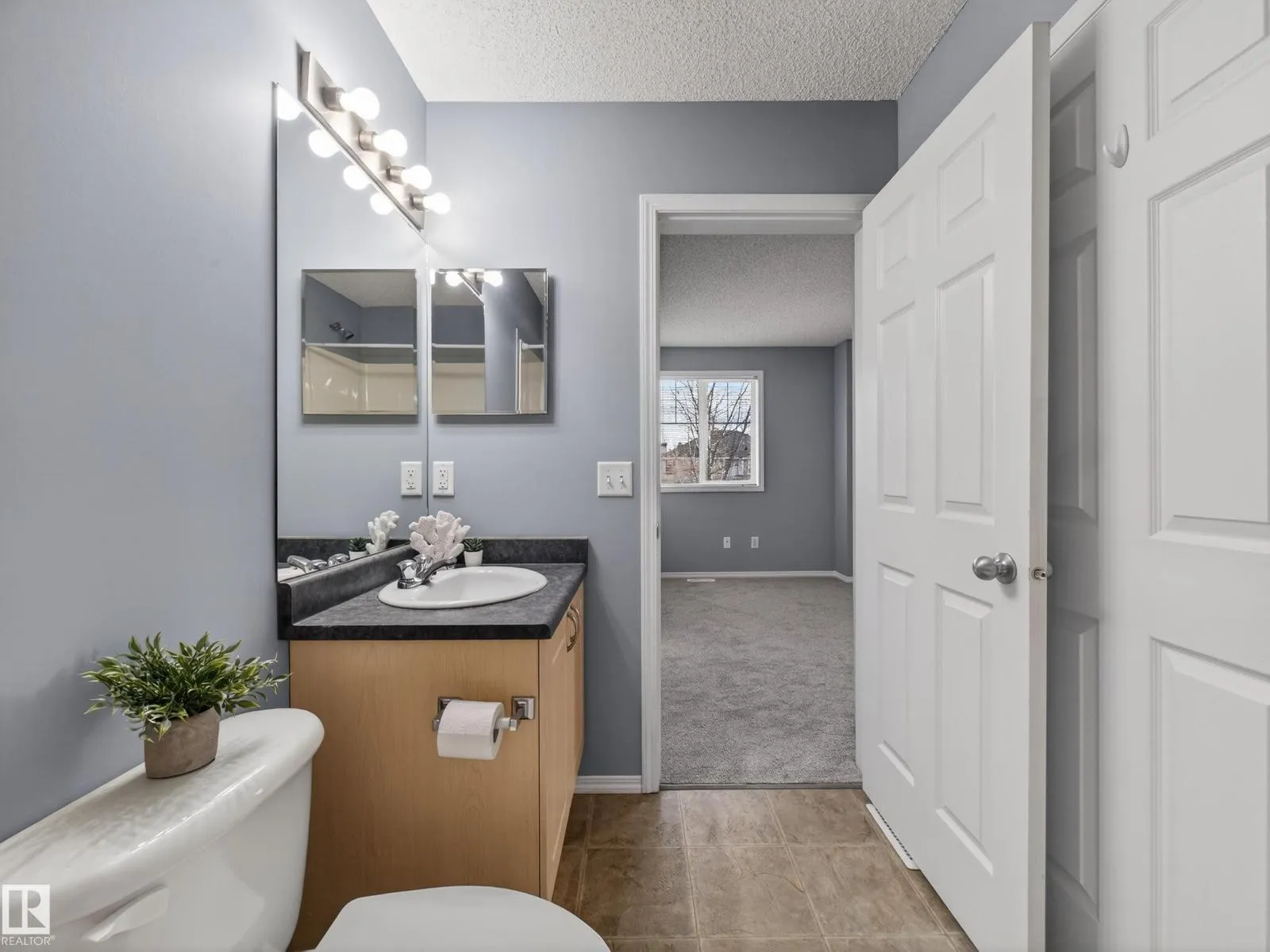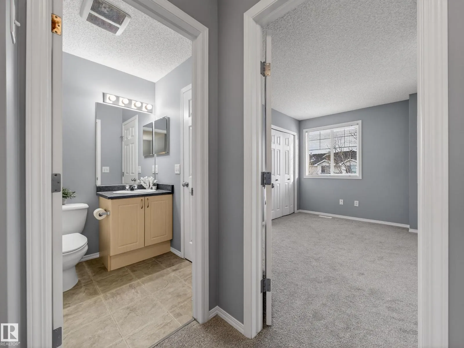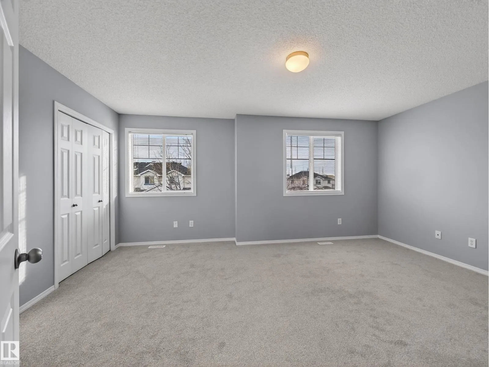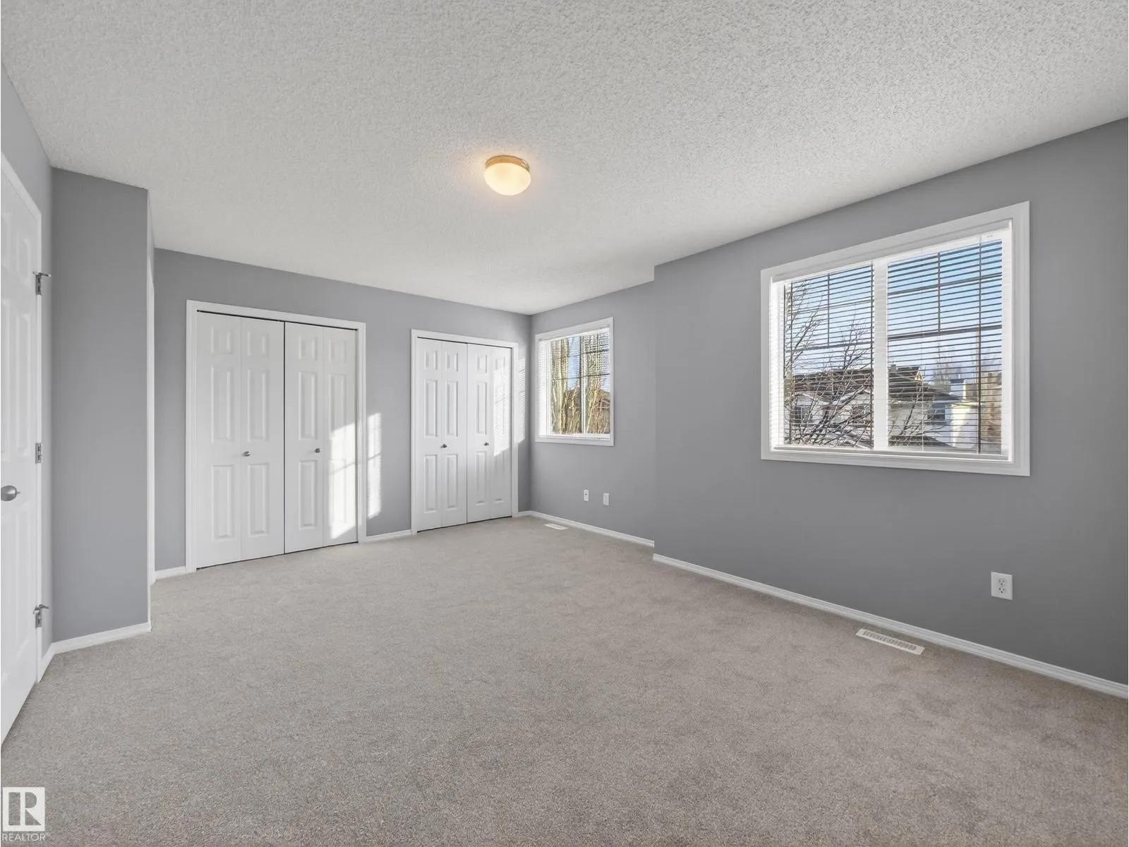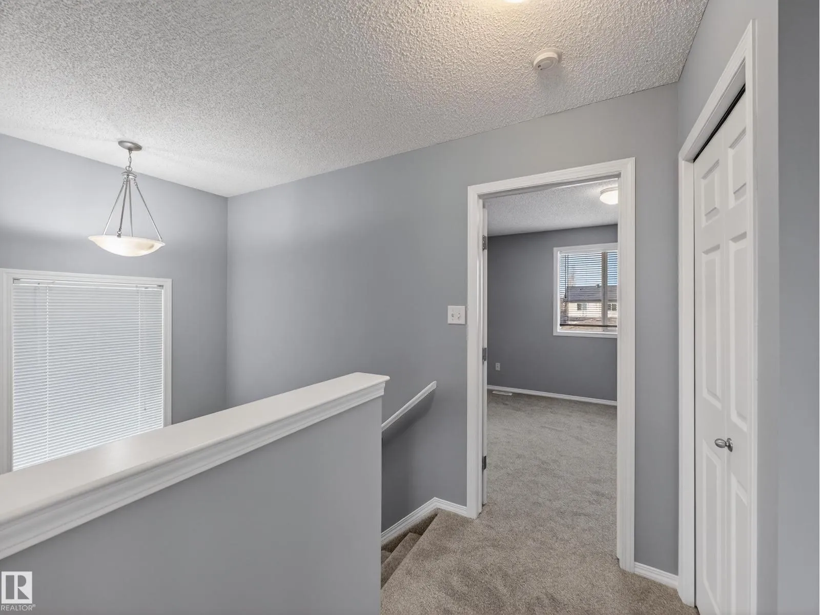 Welcome to Rutherford! This freshly painted half duplex with brand new carpet offers a bright, airy feel with an abundance of natural light throughout. The functional main floor layout features a spacious kitchen with ample counter space, perfect for meal prep and entertaining, plus a cozy gas fireplace that creates a warm and inviting living area. Upstairs, youâll find two spacious primary bedrooms, offering comfort, flexibility, ideal for families, guests, or roommates . Step outside to a large yard and enjoy the added bonus of a double detached garage. Conveniently located close to schools, parks, shopping, and easy access to the Anthony Henday. (id:27476)