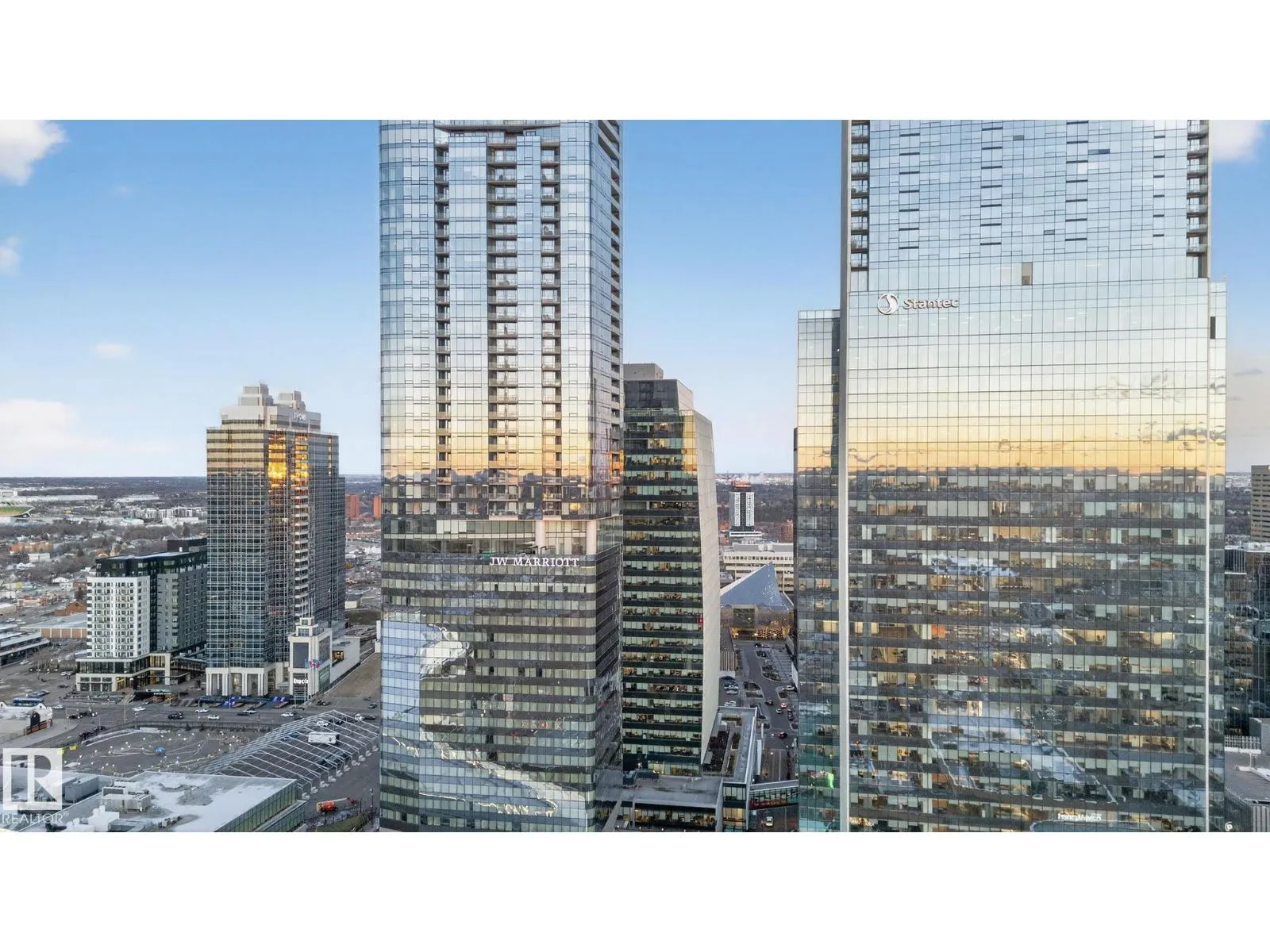 Welcome to THE LEGENDS PRIVATE RESIDENCE, where LUXURY, LIFESTYLE & LOCATION merge in Edmontonâs most iconic high-rise. Perched high above the ICE DISTRICT, this WEST-FACING CORNER SUITE showcases FLOOR-TO-CEILING WRAP-AROUND WINDOWS, incredible SUNSET VIEWS, and DIRECT PEDWAY ACCESS to Rogers Place, City Market Mall, dining, shopping, and year-round entertainment. Inside, enjoy OPEN-CONCEPT LIVING, elegant finishes, TWO SPACIOUS BEDROOMS WITH SPA-INSPIRED ENSUITES, plus a versatile DEN for your office or quiet retreat. Step out onto TWO PRIVATE BALCONIES to take in the skyline. Residents enjoy WORLD-CLASS AMENITIES: indoor POOL, HOT TUB, multiple LOUNGES, chic PARTY ROOMS, private OUTDOOR PATIOS, secure entry, and exclusive access to ARCHETYPE FITNESS. This is DOWNTOWN LUXURY LIVING at its finest. (id:27476)