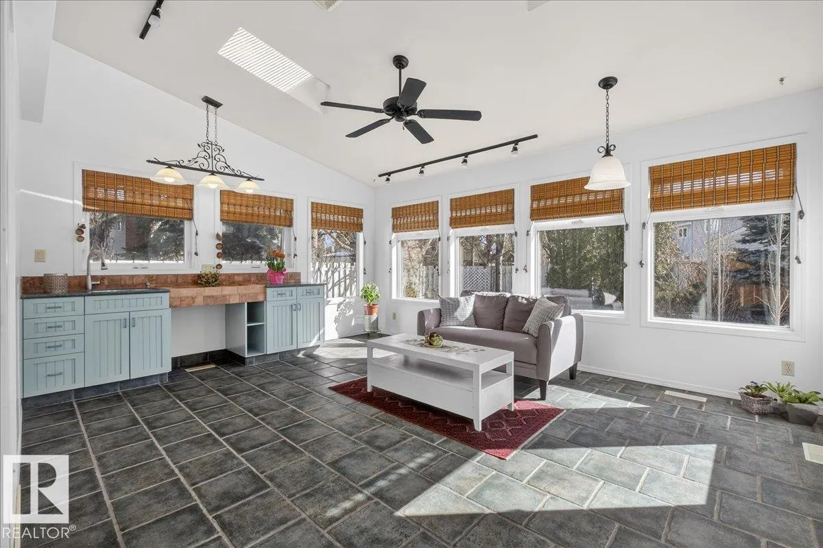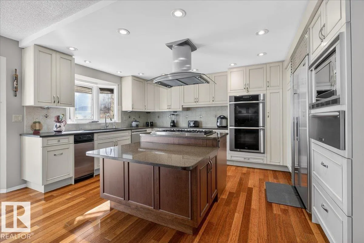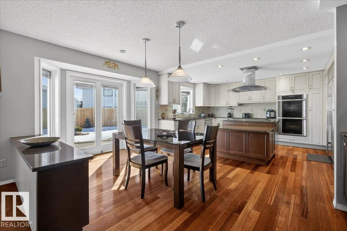 Experience luxury in Gariepy, just a block from the River Valley. This executive 7-bed, 4-bath home sits on a massive, private pie-shaped lot in a quiet cul-de-sac. You cannot beat this unique locationâwalking distance to top restaurants, bars, cafes, and amenities, plus minutes to West Edmonton Mall, the Anthony Henday, and St. Albert. Main floor bedroom / office. The heart of the home is a chefâs dream kitchen with top-notch high-end appliances, a 6-burner gas stove, and a massive two-level island. It flows into a heated sunroom, perfect for year-round views. The south-facing backyard is a private oasis with professional stonework, a koi pond, and a fire pitâan incredible space once the snow melts. The fully finished basement includes its own kitchen, ideal for a mother-in-law suite. With three bedrooms up, including a master oasis with an air-jet tub, this home is perfect for raising your kids near the cityâs best schools. Nothing is missing; your familyâs dream home is waiting. (id:27476)