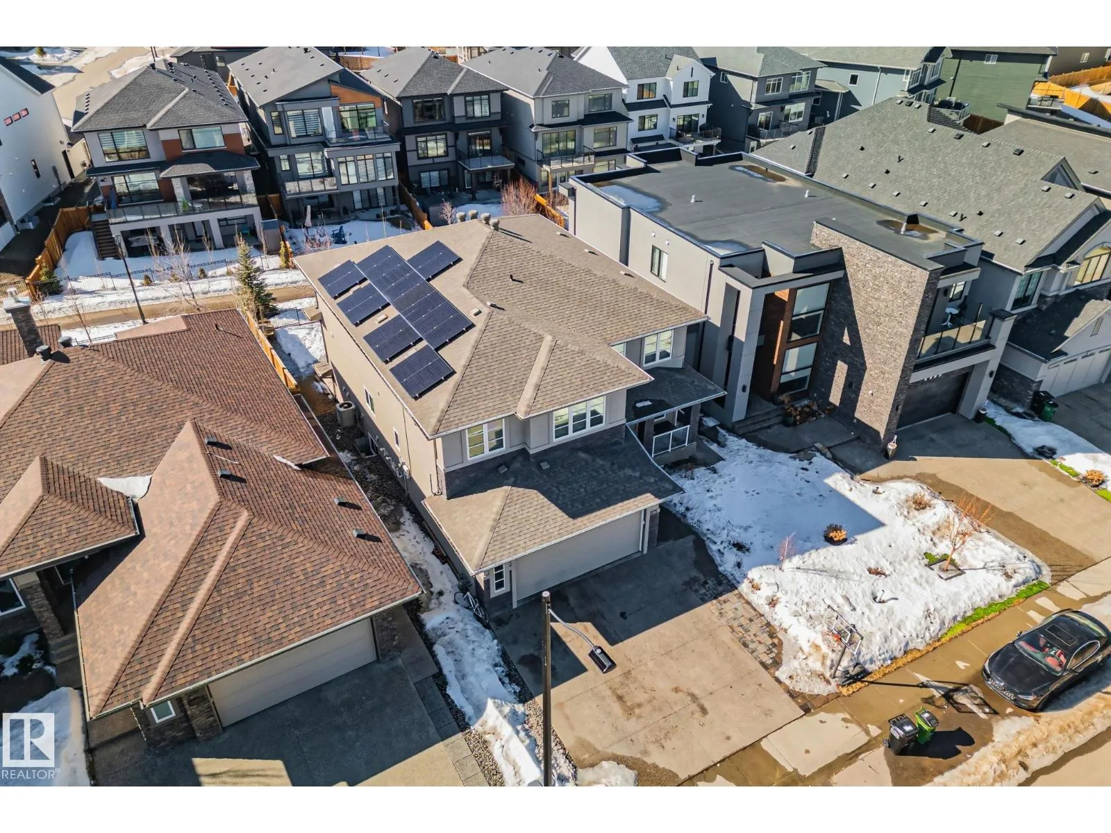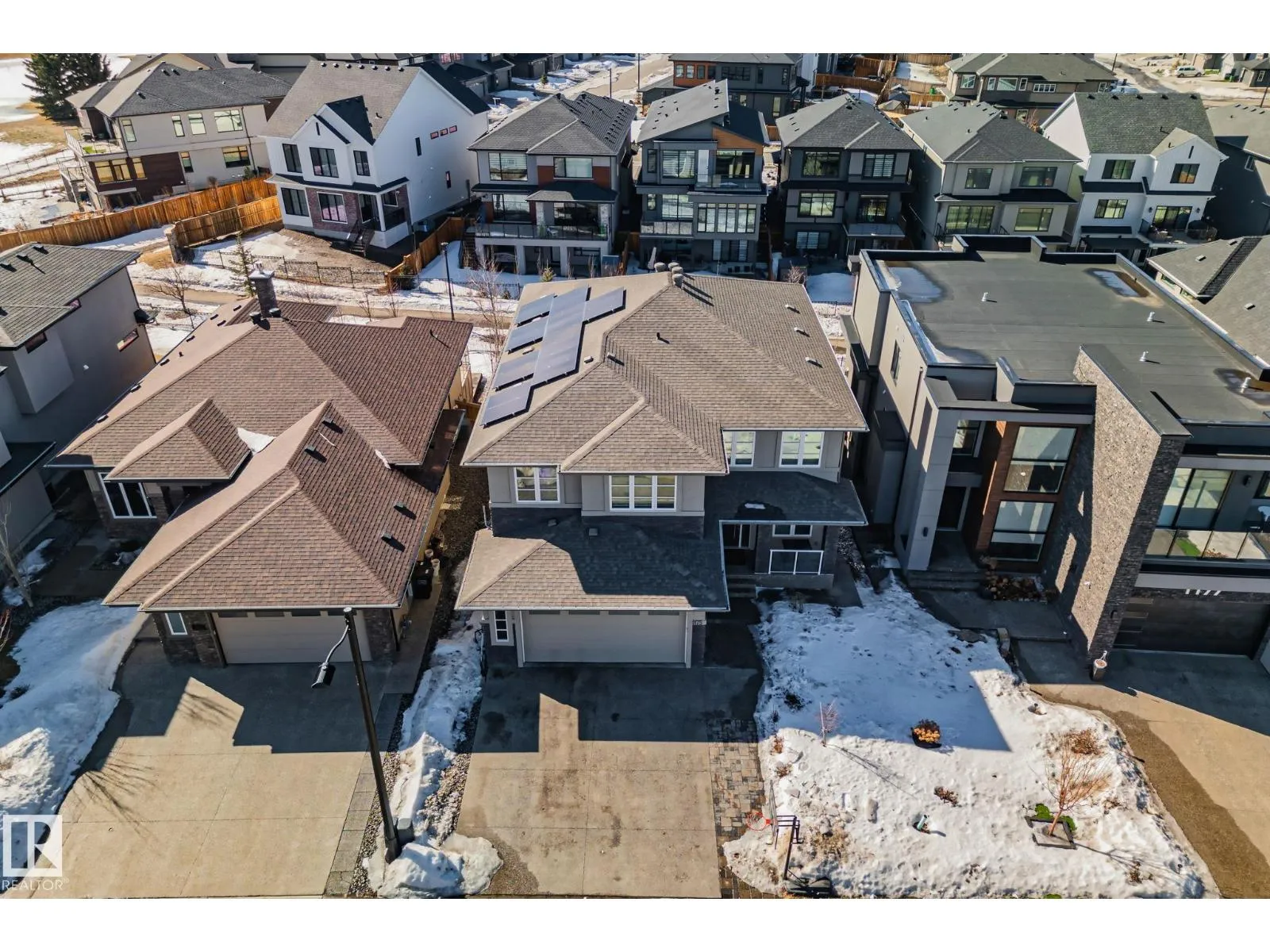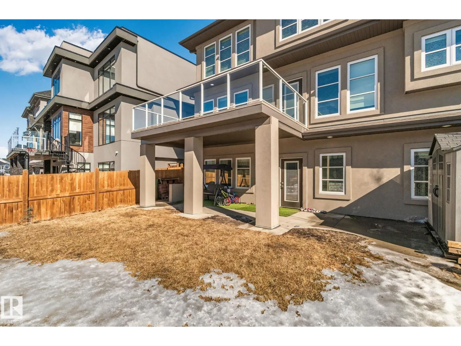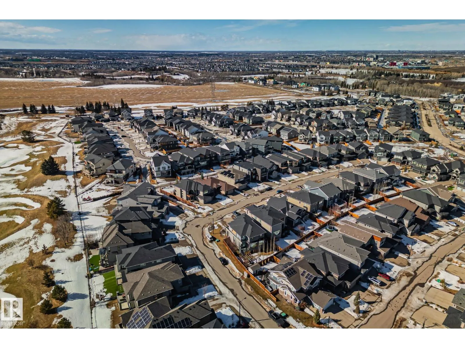 Step into one of Jagare Ridgeâs most impressive homes, where prestige meets space and thoughtful design. Set on a walkout lot with golf course views, this home offers over 4600 sq ft of finished living space across three levels, including a walkout basement with a second kitchen and rear entrance. The moment you enter, the two-storey open foyer and glass railings fill the home with light and create an expansive, airy feel. Main-floor living areas feature two fireplaces, generous gathering spaces, and a dedicated office, while upstairs provides spacious bedrooms for the whole family. The basement is designed for entertainment, with tiered theatre-style seating in the media room, and added flexibility for older children or extended family. Step outside to the large sun deck and patio, and enjoy the premium surroundings steps from the golf course. A high-efficiency solar system reduces energy costs and adds lasting value, making this home both luxurious and smartly designed. (id:27476)