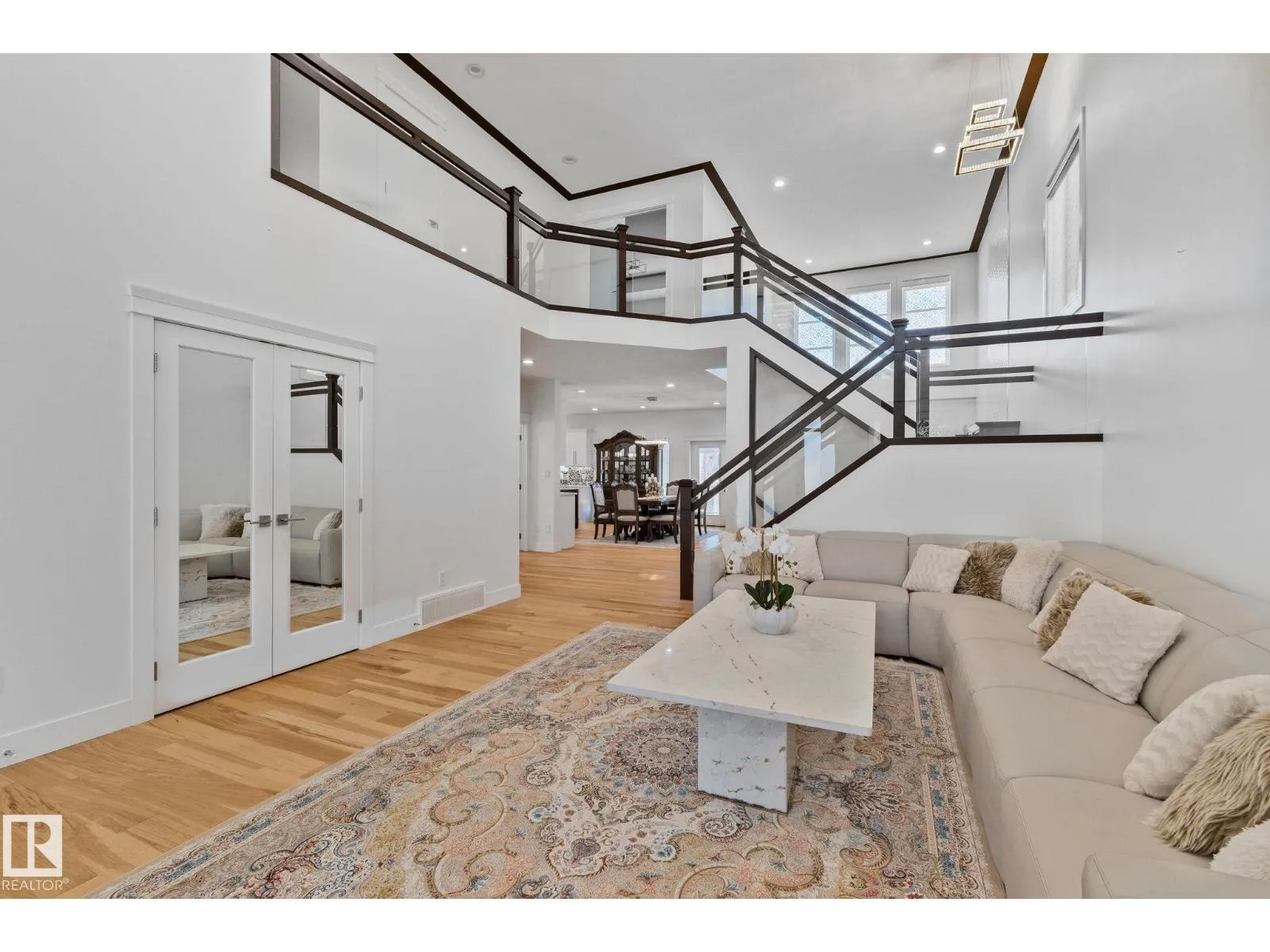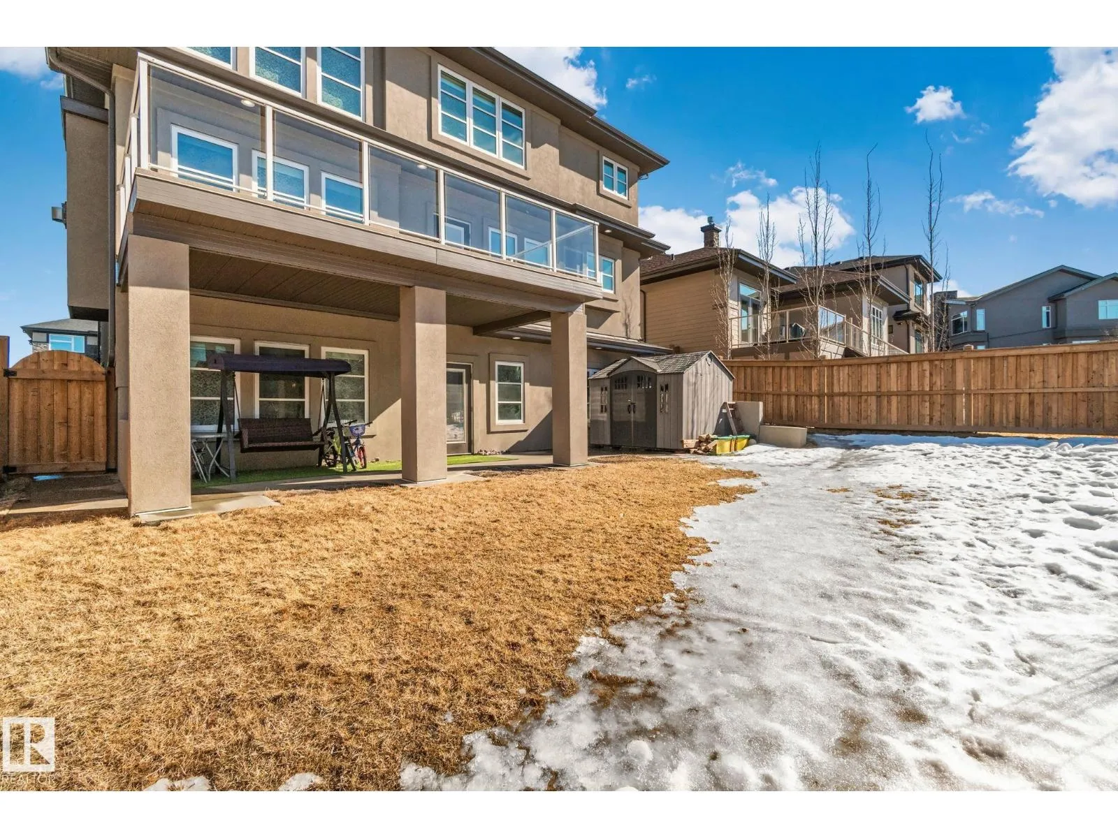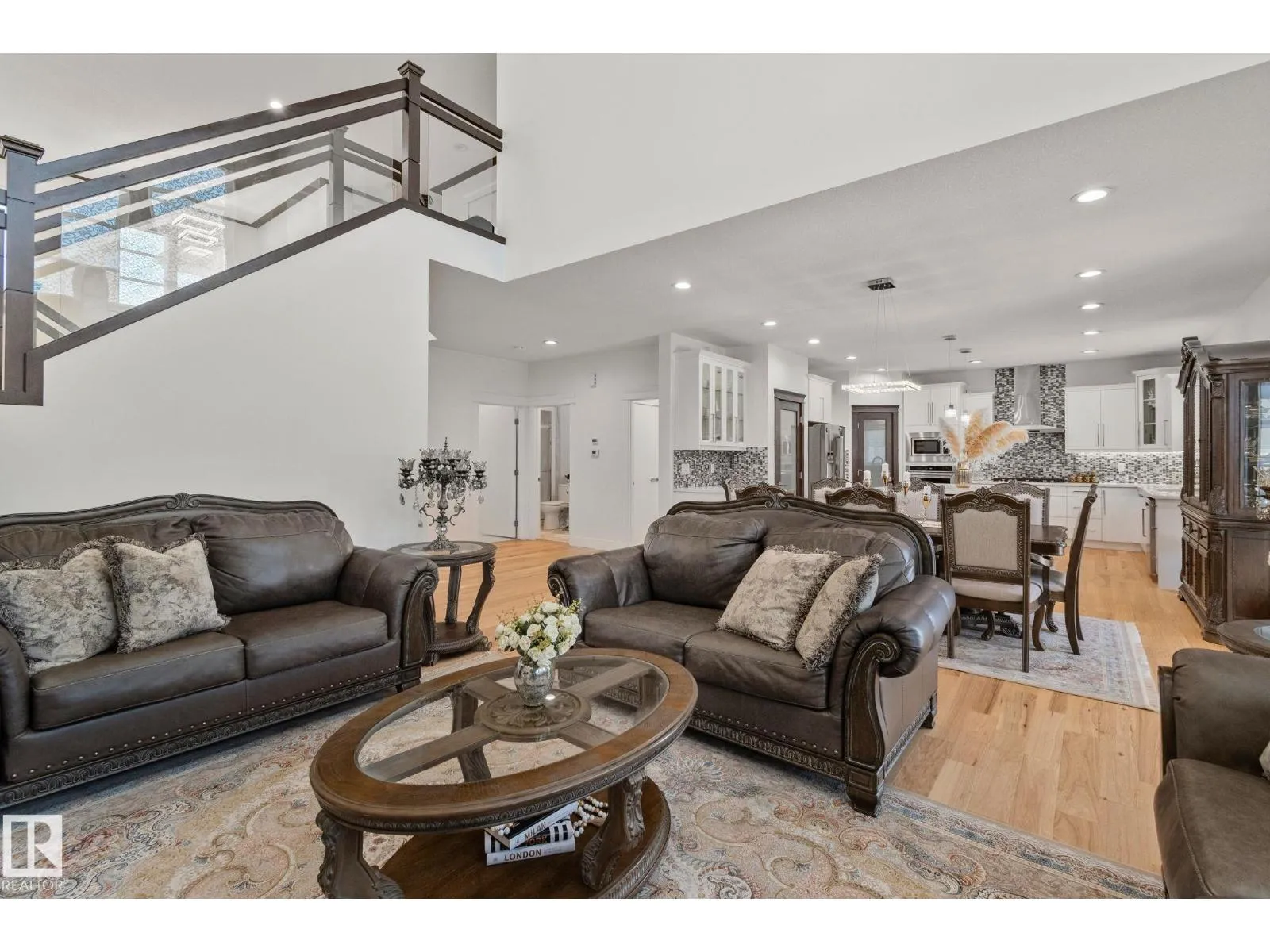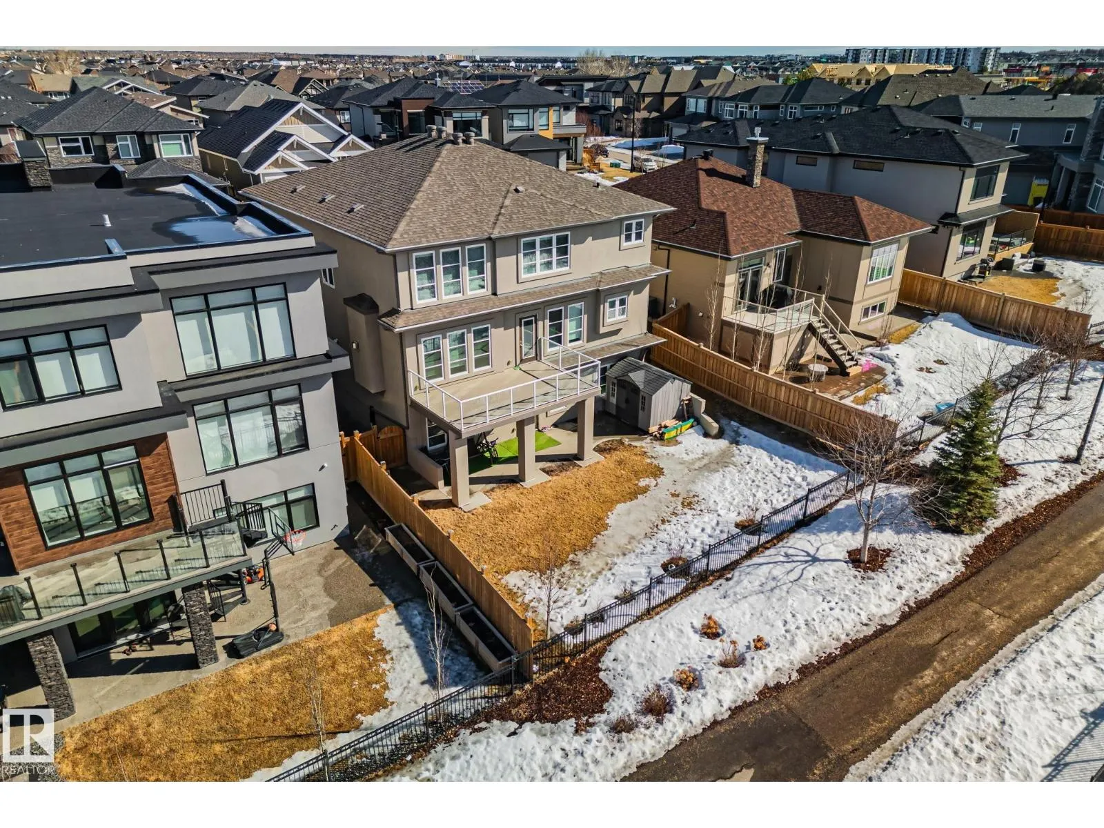 Step into one of Jagare Ridgeâs most impressive homes, where prestige meets space and thoughtful design. Set on a walkout lot with golf course views, this home offers over 4600 sq ft of finished living space across three levels, including a walkout basement with a second kitchen and rear entrance. The moment you enter, the two-storey open foyer and glass railings fill the home with light and create an expansive, airy feel. Main-floor living areas feature two fireplaces, generous gathering spaces, and a dedicated office, while upstairs provides spacious bedrooms for the whole family. The basement is designed for entertainment, with tiered theatre-style seating in the media room, and added flexibility for older children or extended family. Step outside to the large sun deck and patio, and enjoy the premium surroundings steps from the golf course. A high-efficiency solar system reduces energy costs and adds lasting value, making this home both luxurious and smartly designed. (id:27476)