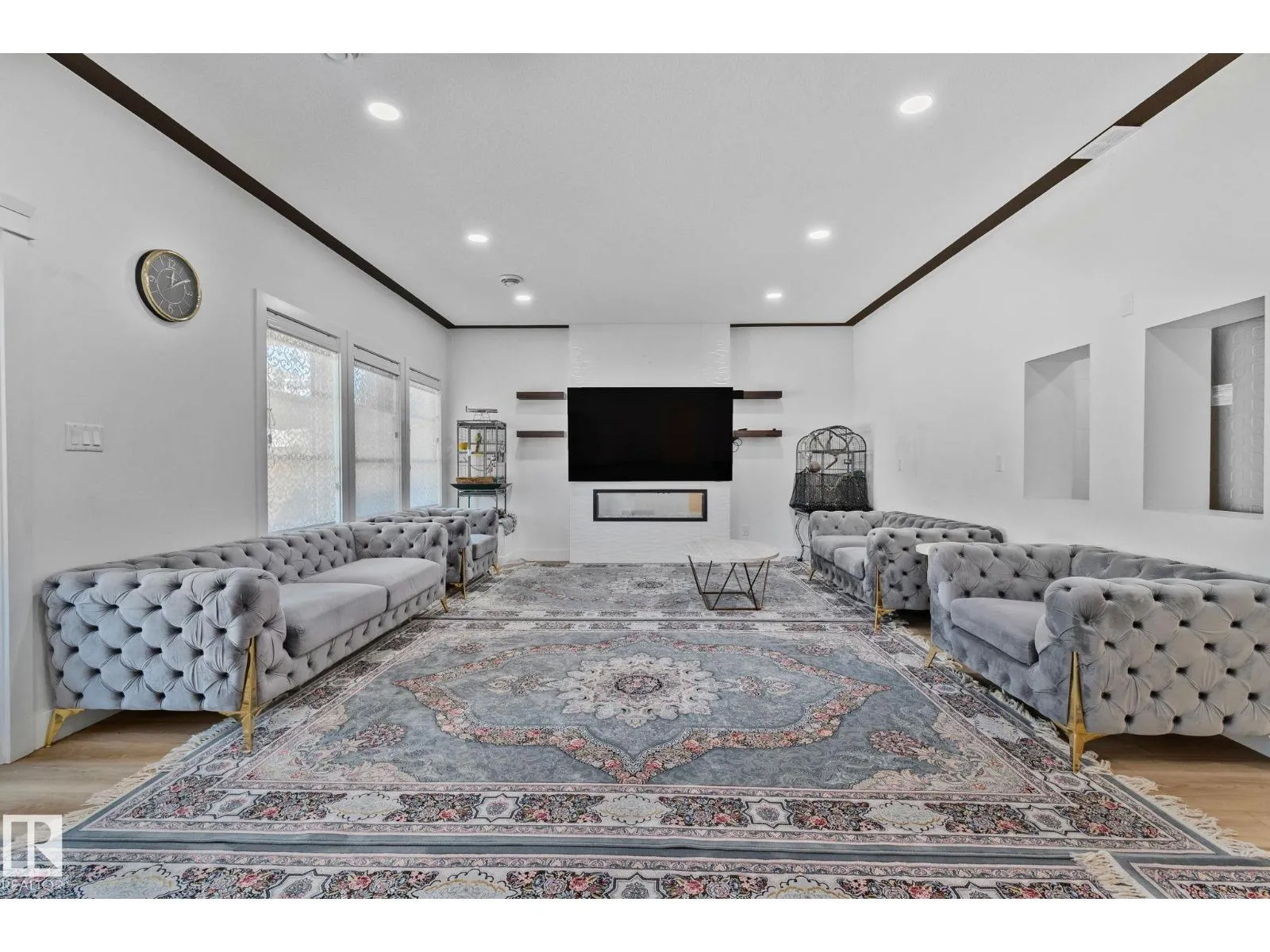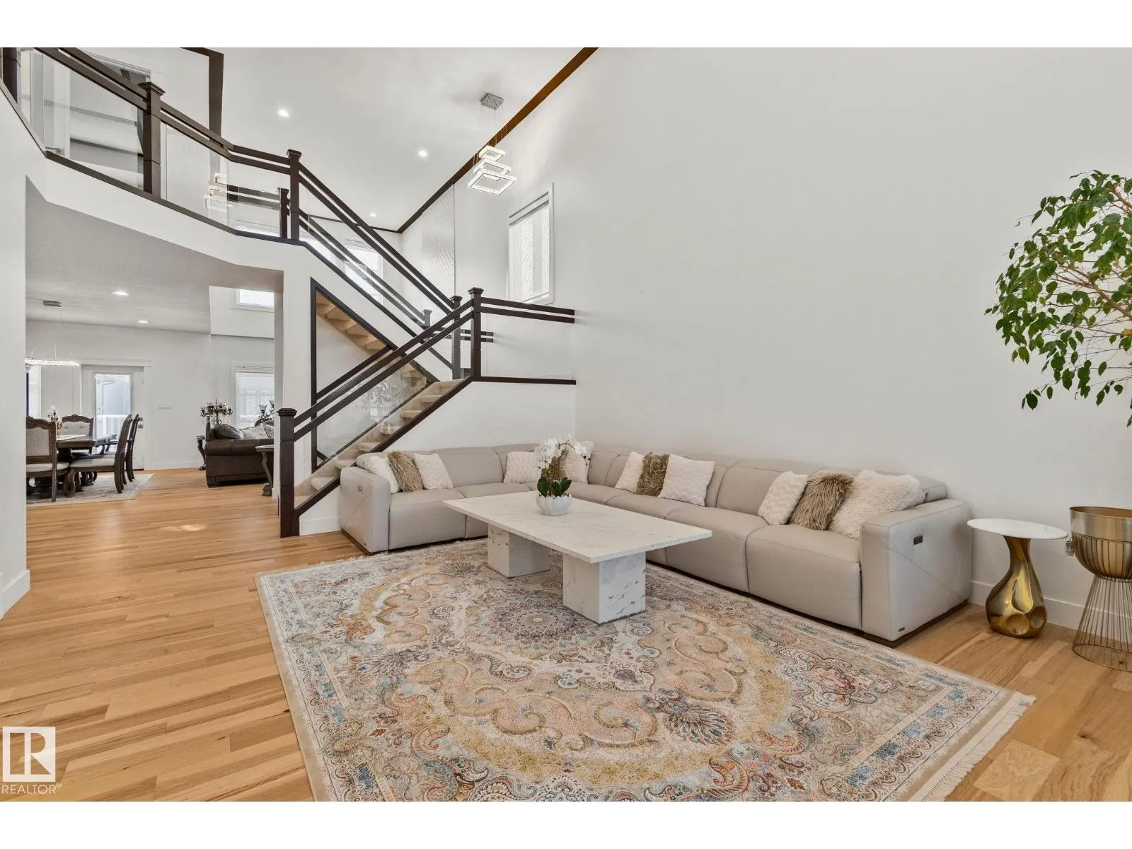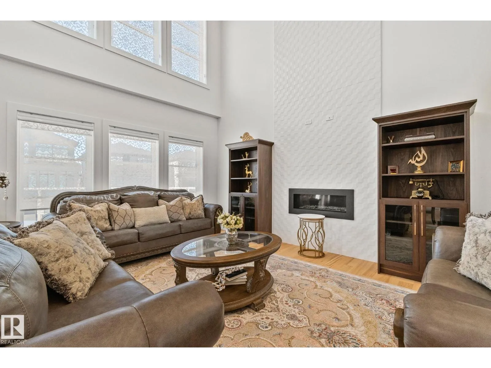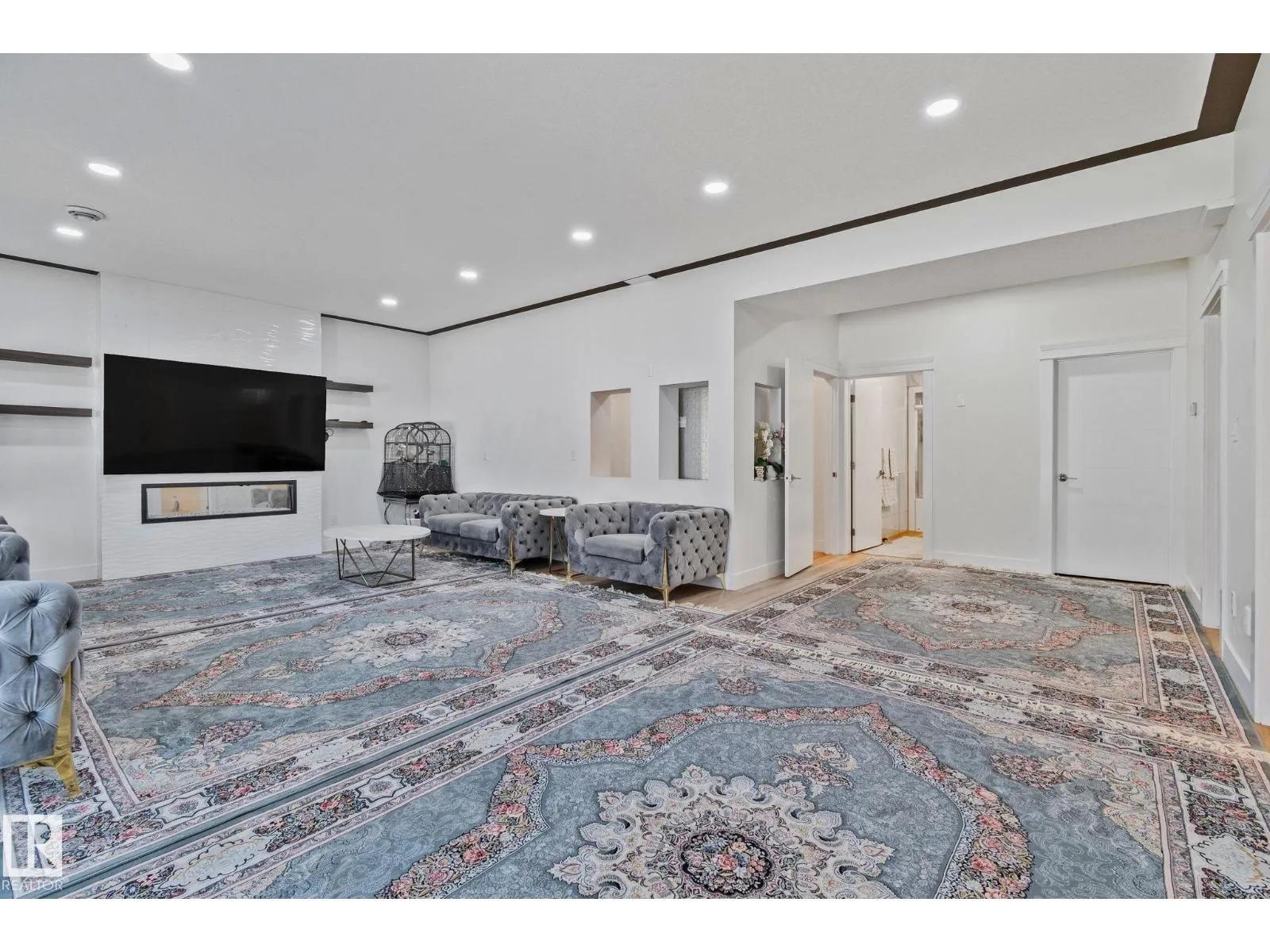 Step into one of Jagare Ridgeâs most impressive homes, where prestige meets space and thoughtful design. Set on a walkout lot with golf course views, this home offers over 4600 sq ft of finished living space across three levels, including a walkout basement with a second kitchen and rear entrance. The moment you enter, the two-storey open foyer and glass railings fill the home with light and create an expansive, airy feel. Main-floor living areas feature two fireplaces, generous gathering spaces, and a dedicated office, while upstairs provides spacious bedrooms for the whole family. The basement is designed for entertainment, with tiered theatre-style seating in the media room, and added flexibility for older children or extended family. Step outside to the large sun deck and patio, and enjoy the premium surroundings steps from the golf course. A high-efficiency solar system reduces energy costs and adds lasting value, making this home both luxurious and smartly designed. (id:27476)
