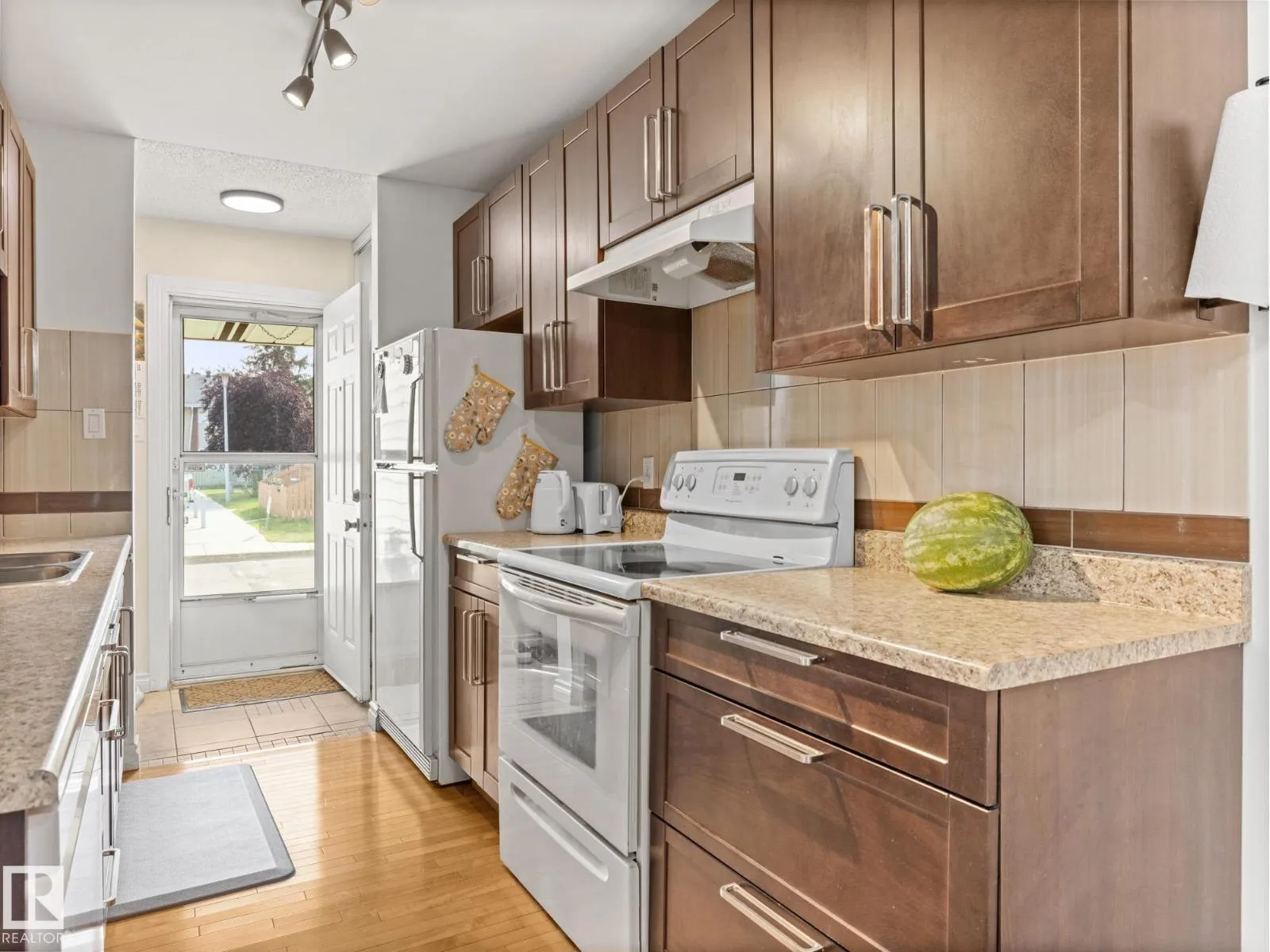 Welcome to this beautifully renovated townhouse offering style and functionality in a prime location! The main floor features a bright, walk-through kitchen with NEW appliances, a spacious dining area, and a large living room with a blend of ceramic tile and hardwood flooring. Conveniently located on this level is a 2-piece bathroom, plenty of storage space, and a NEW dryer for added everyday convenience. Upstairs youâll find three generous-sized bedrooms and a 4-piece bathroom, perfect for family living. The fully finished basement provides additional living space with a versatile recreation room and office area. Enjoy the enclosed yard for added privacy and outdoor enjoyment. Ideally situated close to West Edmonton Mall, public transit, and schoolsâthis home is move-in ready and waiting for you! (id:27476)