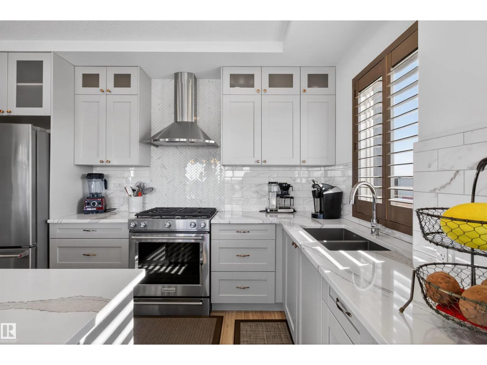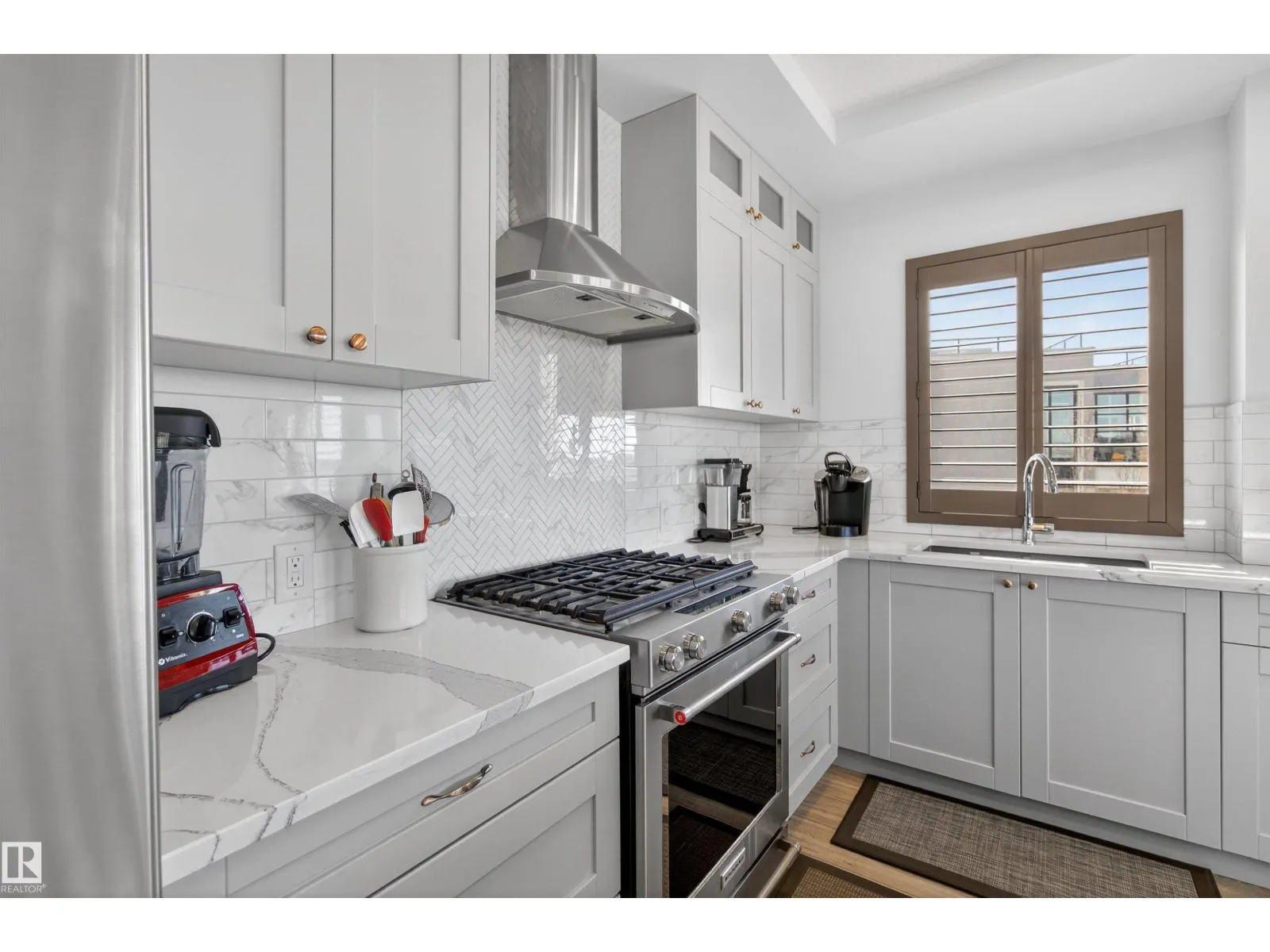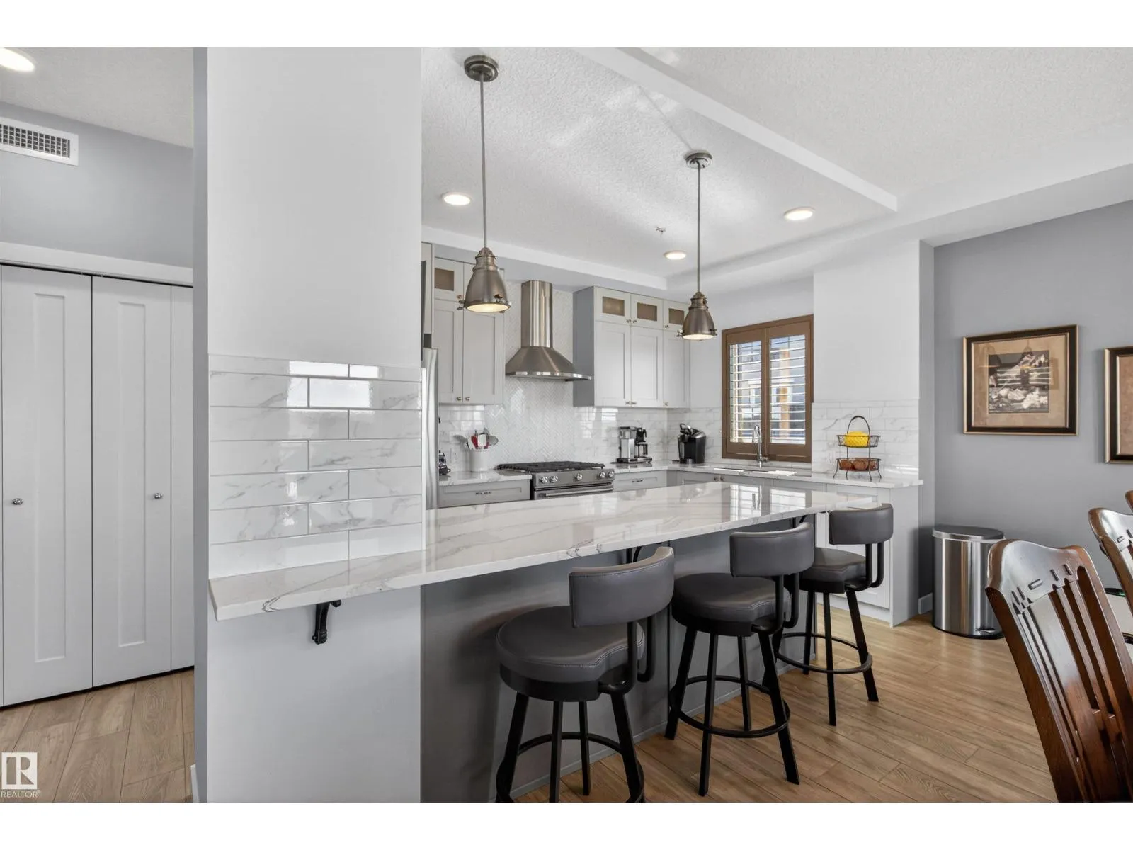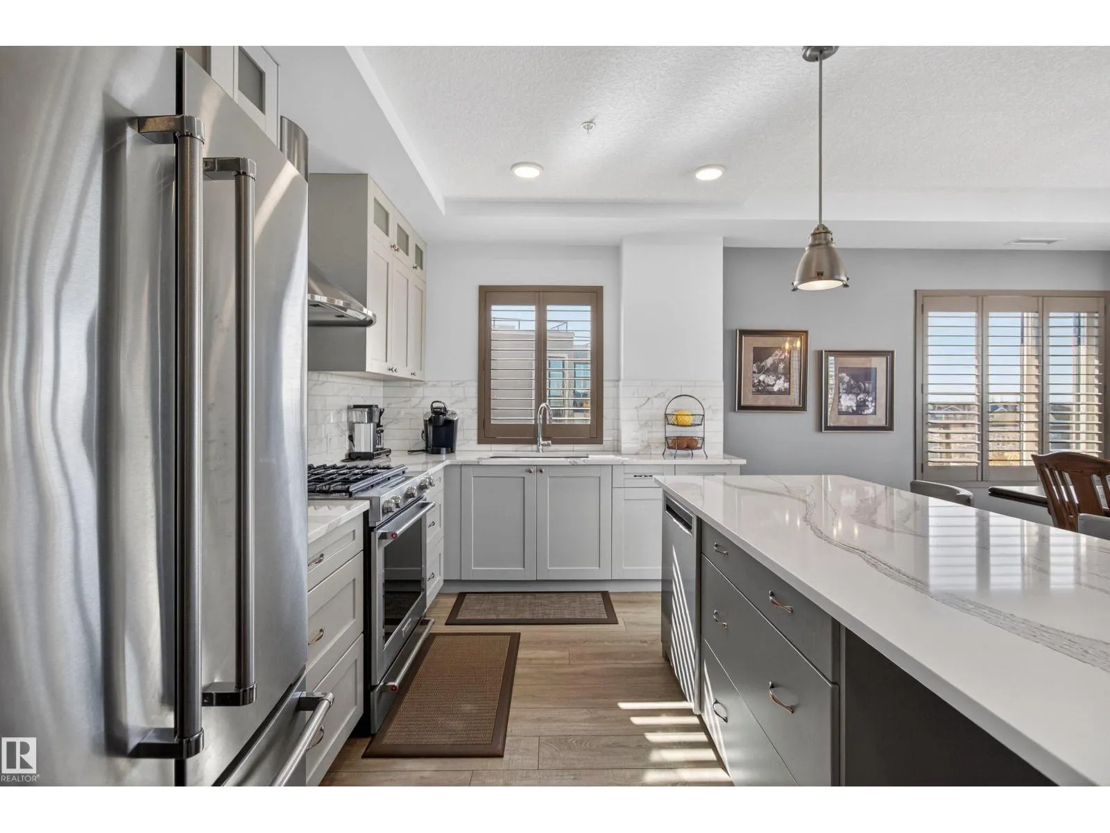 SOUTHWEST CORNER UNIT CONDO! VIEW OF THE POND & GREEN SPACE! This extensively upgraded executive style condo offers HIGH END QUALITY FINISHINGS throughout. Over $75K in professional upgrades! Featuring an open concept with 1515 sq ft and luxury vinyl plank flooring. You'll love the DREAM KITCHEN! Gorgeous Quartz countertops, beautiful cabinetry, pantry & all appliances including a 5 burner gas stove. Generous dining area and a large living room. Patio doors lead to the WRAP AROUND BALCONY to enjoy the views! Fire table and BBQ gas hookup. TWO LARGE BEDROOMS WITH WALK-IN CLOSETS & LUXURIOUS ENSUITES! DEN/OFFICE or potential 3rd bedroom. Powder room for guests. Convenient in-suite laundry. TWO UNDERGROUND TITLED PARKING STALLS PLUS STORAGE CAGE! Awesome fitness room is on the second level. Fabulous and secure building located in one of south Edmonton's most sought after communities. Close to major amenities, parks, transit & shopping. 18+ building. Enjoy the best of condo living at Lux At Upper Windermere! (id:27476)