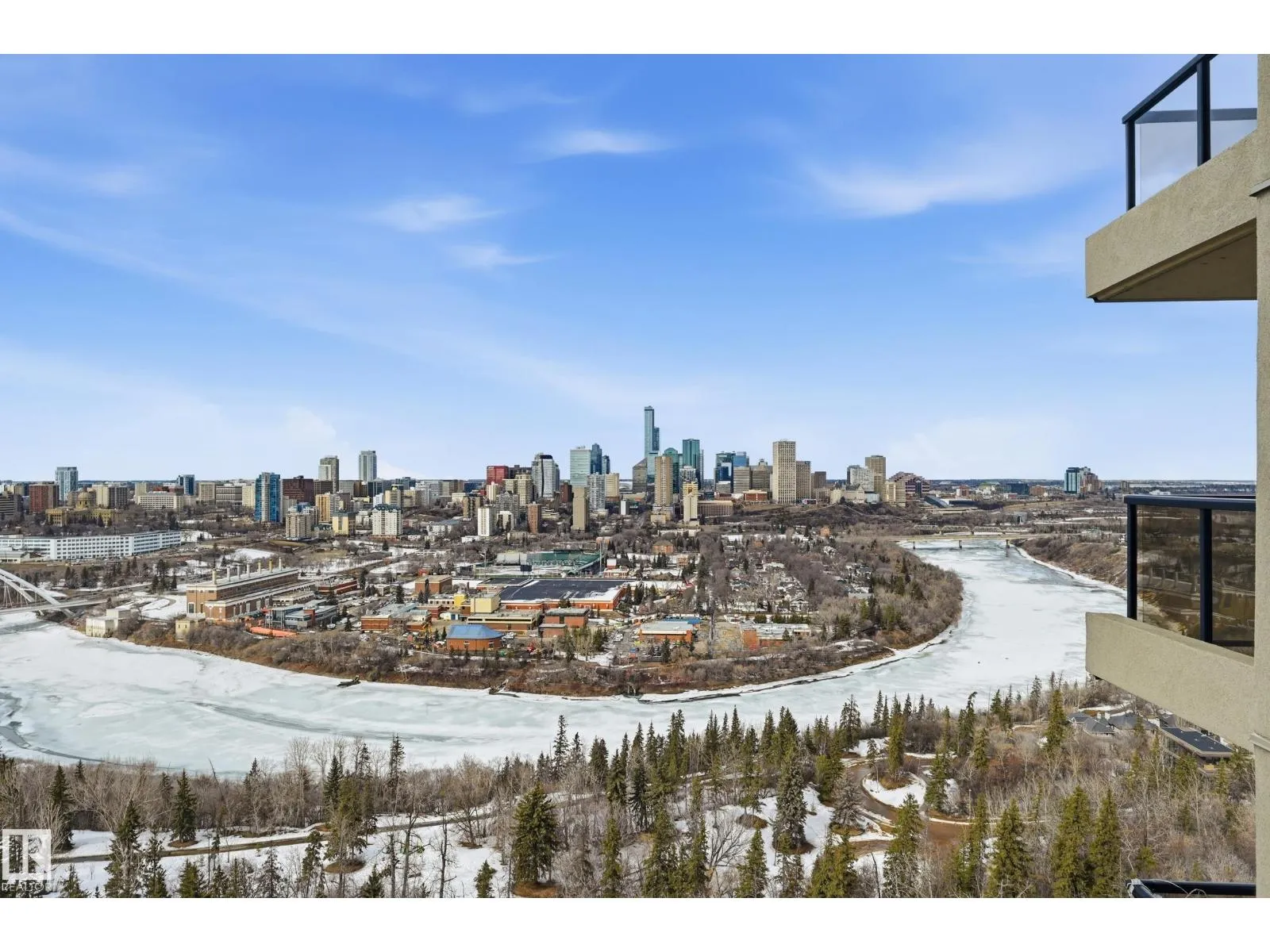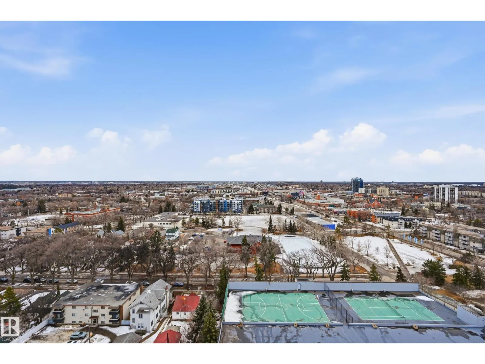 Perfect location on prestigious Saskatchewan Drive within walking distance to UofA campus & the River Valley. This 2 bedroom/2 bathroom & 2 parking stall unit boasts an open layout with south city views from the 19th floor & offers an exceptional urban lifestyle. Ample natural light throughout from the oversized windows. Patio with dual access for sunrise/sunset enjoyment. Living room & full dining area provides a functional and inviting floor plan. Open kitchen with walk-in pantry & storage. Primary bedroom has a walk through closet to a 5pc ensuite. 2nd bedroom & additional 4pc bathroom. Upgrades include granite counters, newer flooring, paint, baseboards & window coverings. Residents of Waters Edge enjoy access to outstanding building amenities which include: fitness room, indoor/outdoor sport courts for racquetball, tennis, basketball & social rooms. Located in Strathcona, steps to Garneau, Whyte Ave nightlife, dining, shopping & everyday servicing amenities. Quick possession available. (id:27476)