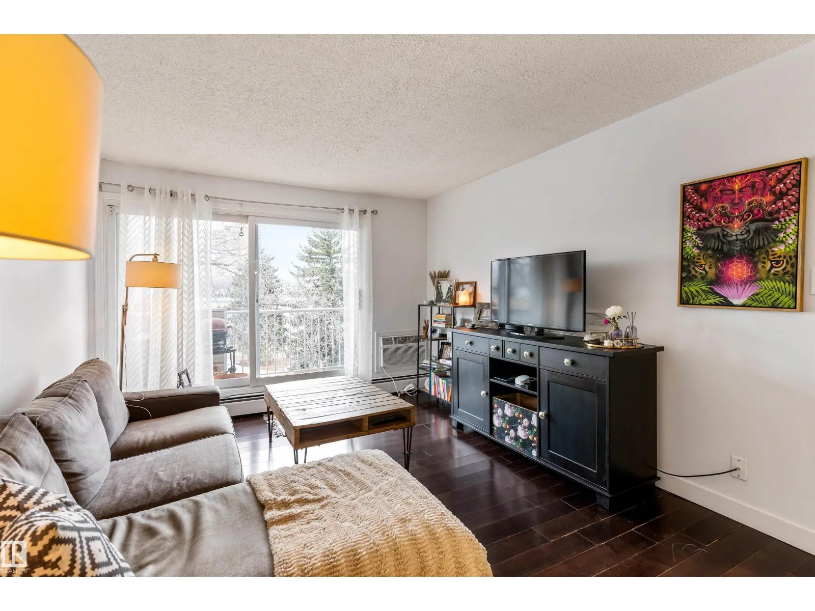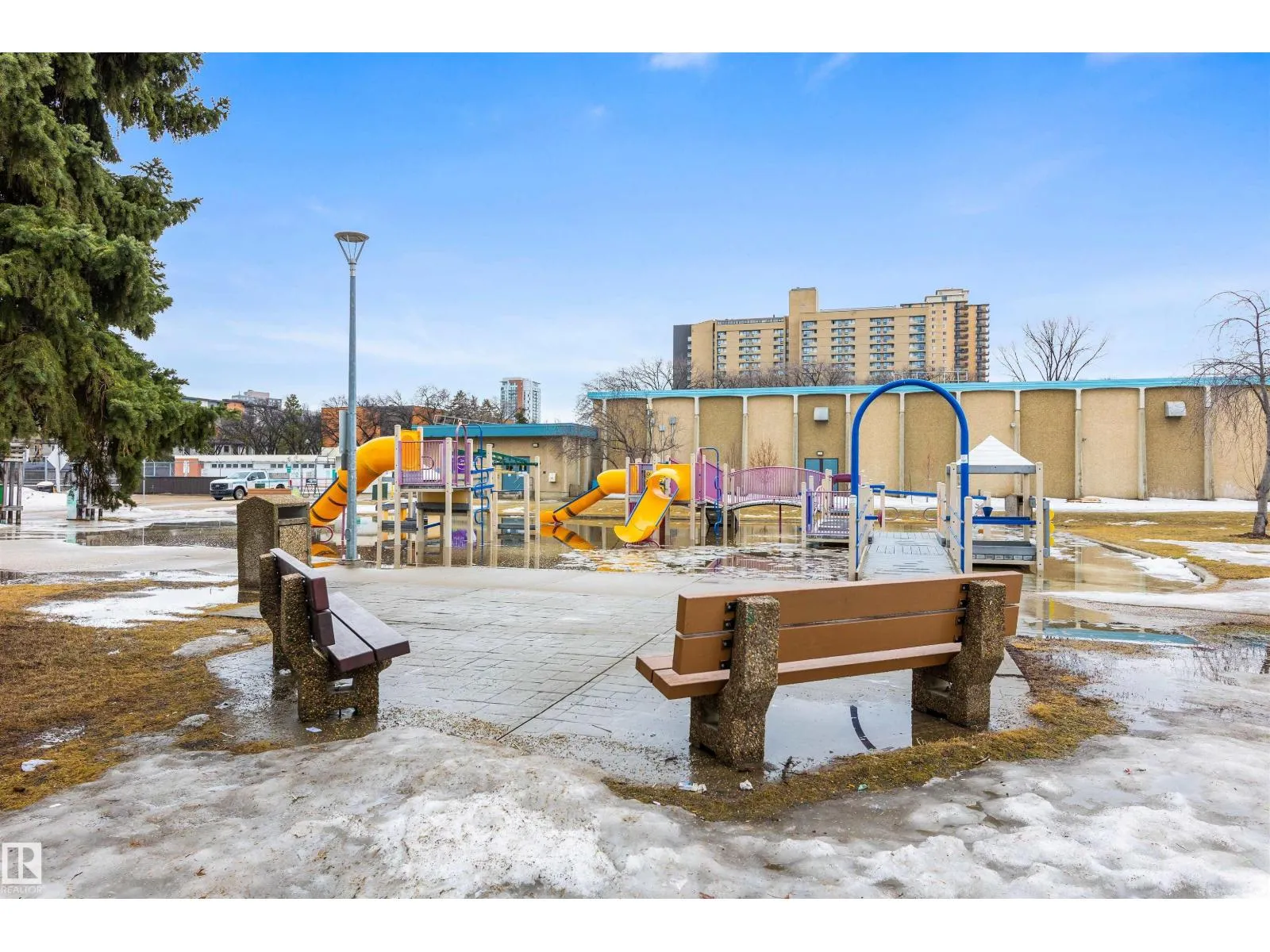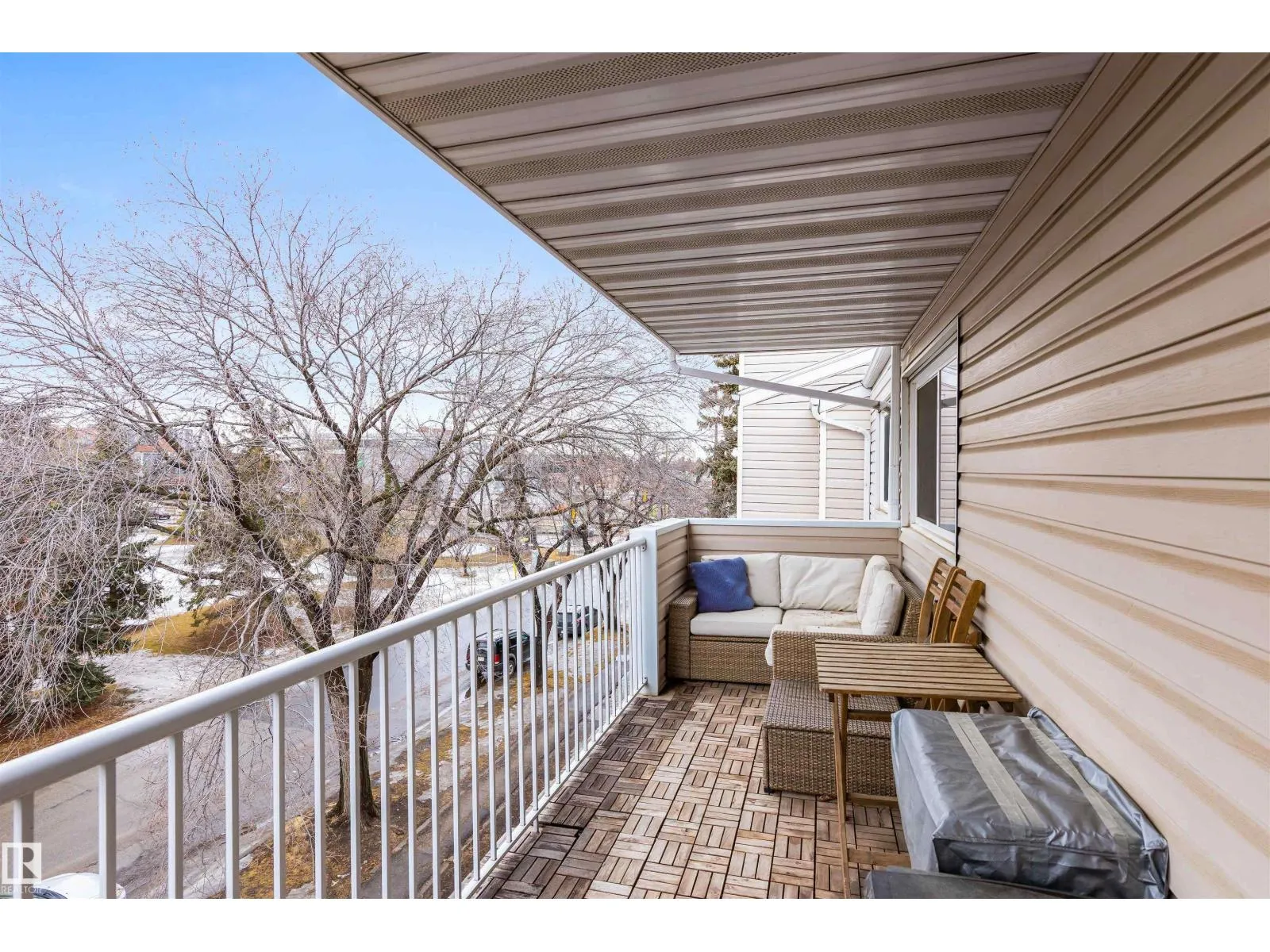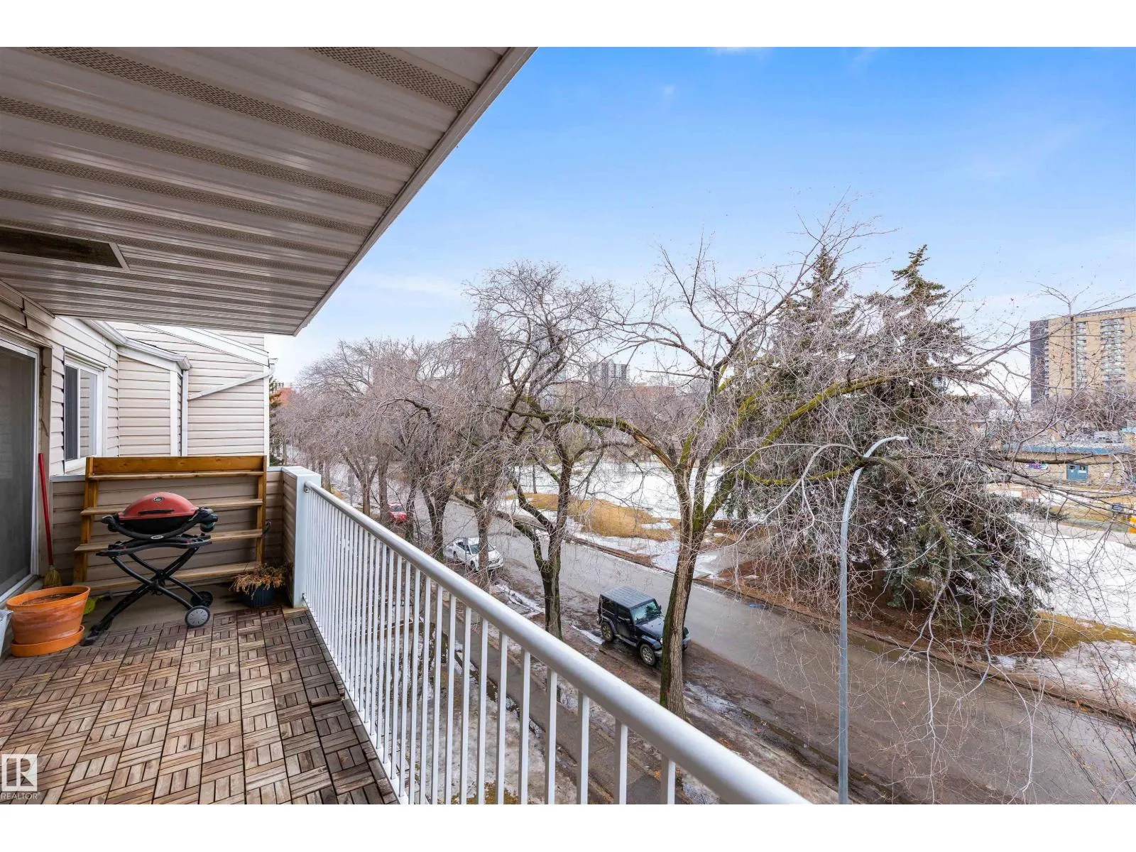 Discover this 1 bedroom, TOP FLOOR unit in a prime, central location. Nestled right ACROSS FROM THE PARK & just steps away from the vibrant Brewery District, this fantastic condo offers the perfect blend of comfort & convenience. This low-rise unit features an ELEVATOR, a west-facing balcony, a large primary bedroom w/ walk through closet & a spacious renovated 4-piece bathroom. The kitchen is an open concept w/ newer white cabinetry, GRANITE counters, s/s appliances & a breakfast bar. Convenient IN-SUITE LAUNDRY. There is an oversized living room + a dining/flex area, perfect for an at home office or additional entertaining area. Enjoy the outdoors on the impressive balcony & appreciate the security of a covered, titled parking stall. As a bonus, residents have access to the expansive 2nd floor sundeck. Youâll love being within walking distance to trendy restaurants, shopping, Rogers Place, public transit, the River Valley & moreâall surrounded by charming tree-lined streets. (id:27476)