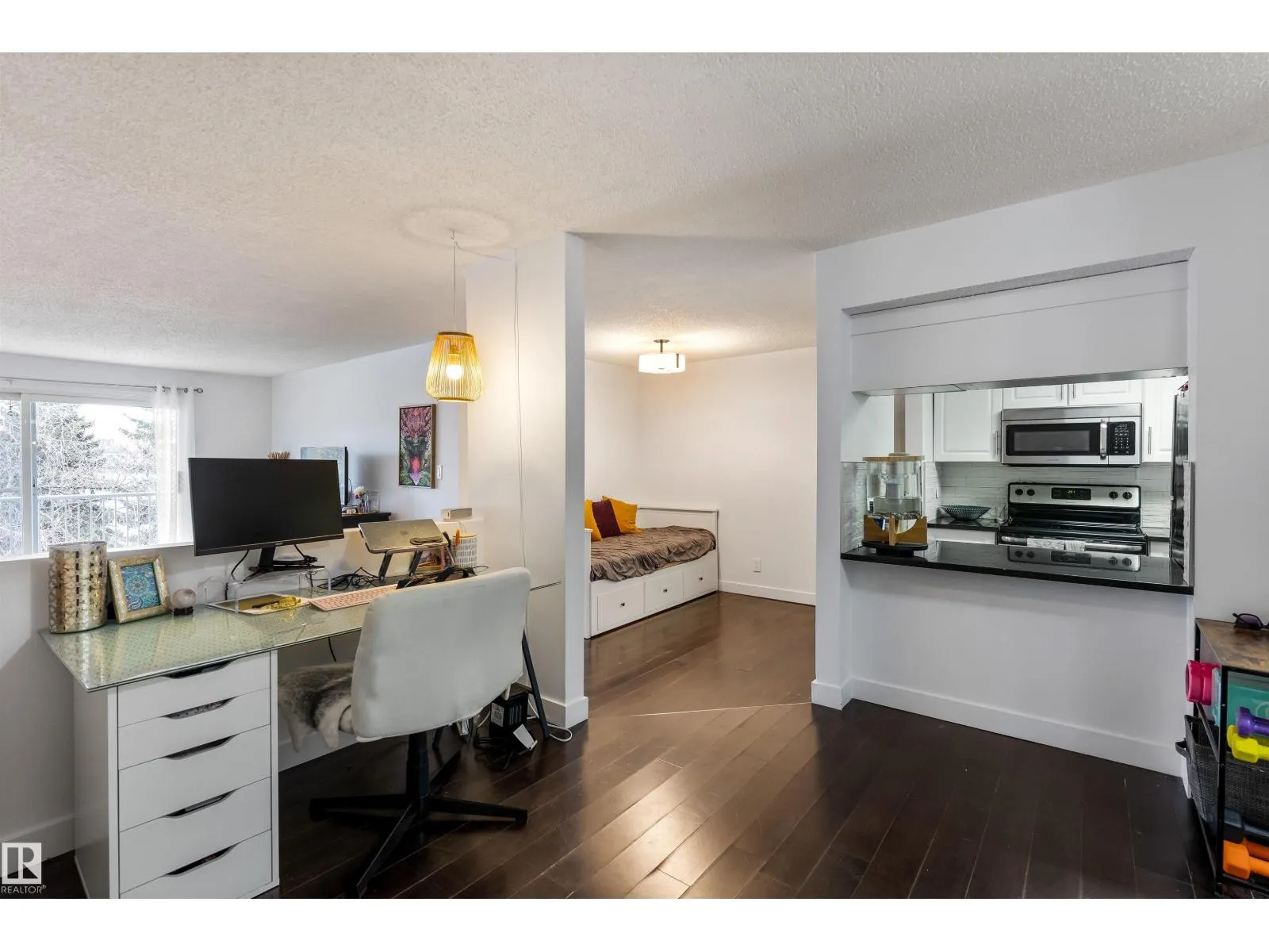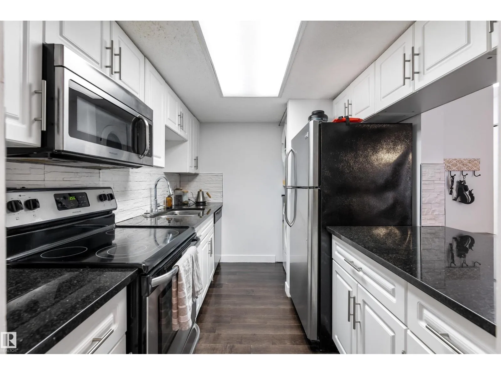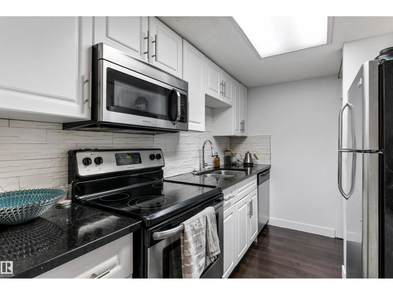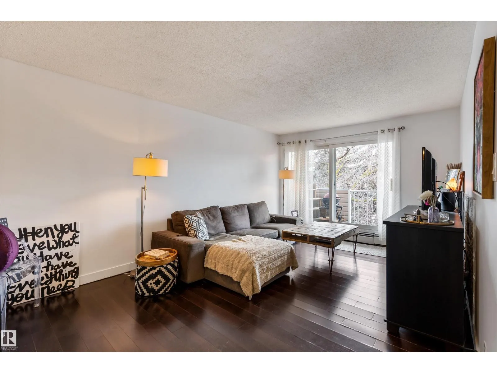 Discover this 1 bedroom, TOP FLOOR unit in a prime, central location. Nestled right ACROSS FROM THE PARK & just steps away from the vibrant Brewery District, this fantastic condo offers the perfect blend of comfort & convenience. This low-rise unit features an ELEVATOR, a west-facing balcony, a large primary bedroom w/ walk through closet & a spacious renovated 4-piece bathroom. The kitchen is an open concept w/ newer white cabinetry, GRANITE counters, s/s appliances & a breakfast bar. Convenient IN-SUITE LAUNDRY. There is an oversized living room + a dining/flex area, perfect for an at home office or additional entertaining area. Enjoy the outdoors on the impressive balcony & appreciate the security of a covered, titled parking stall. As a bonus, residents have access to the expansive 2nd floor sundeck. Youâll love being within walking distance to trendy restaurants, shopping, Rogers Place, public transit, the River Valley & moreâall surrounded by charming tree-lined streets. (id:27476)