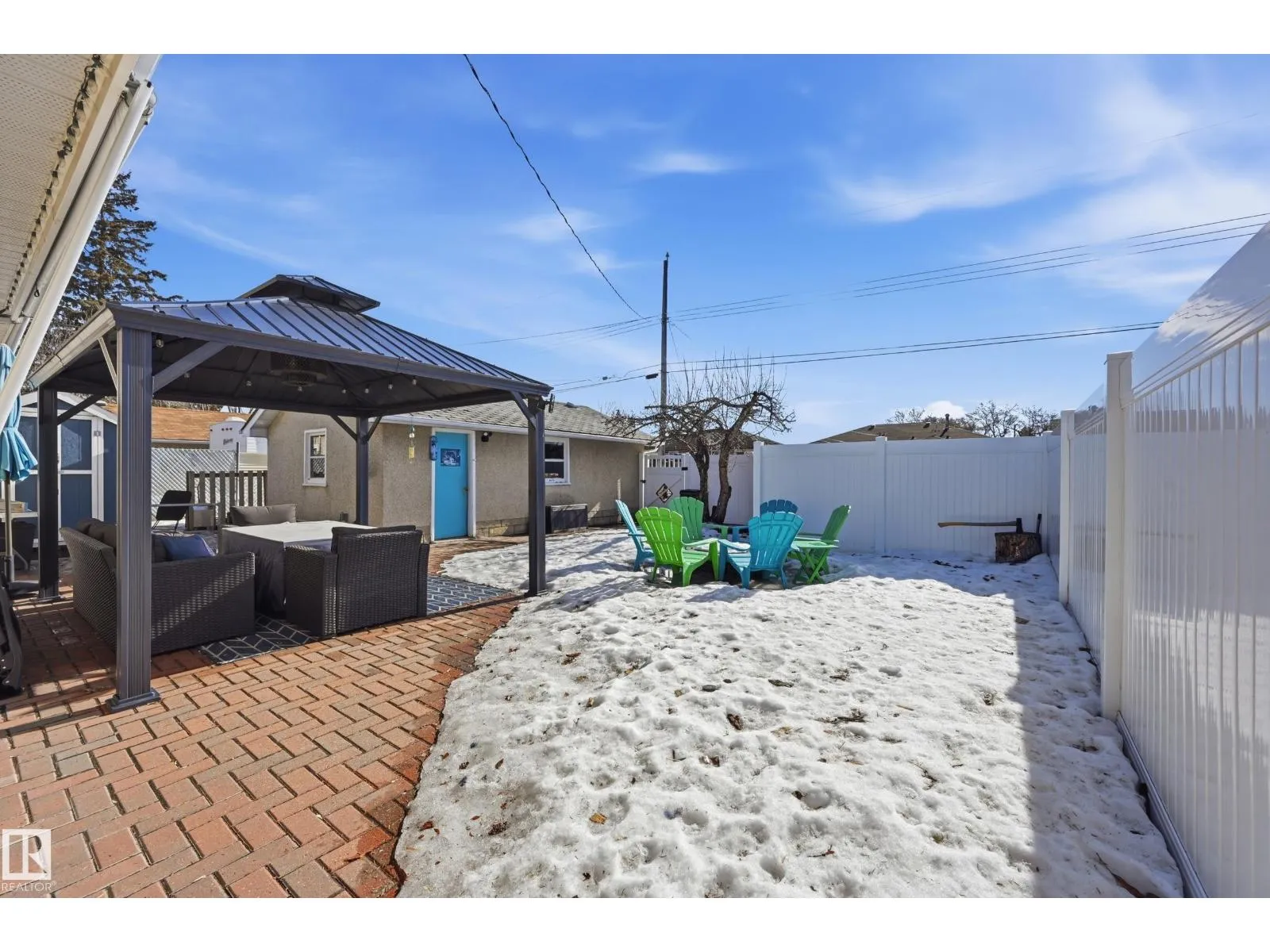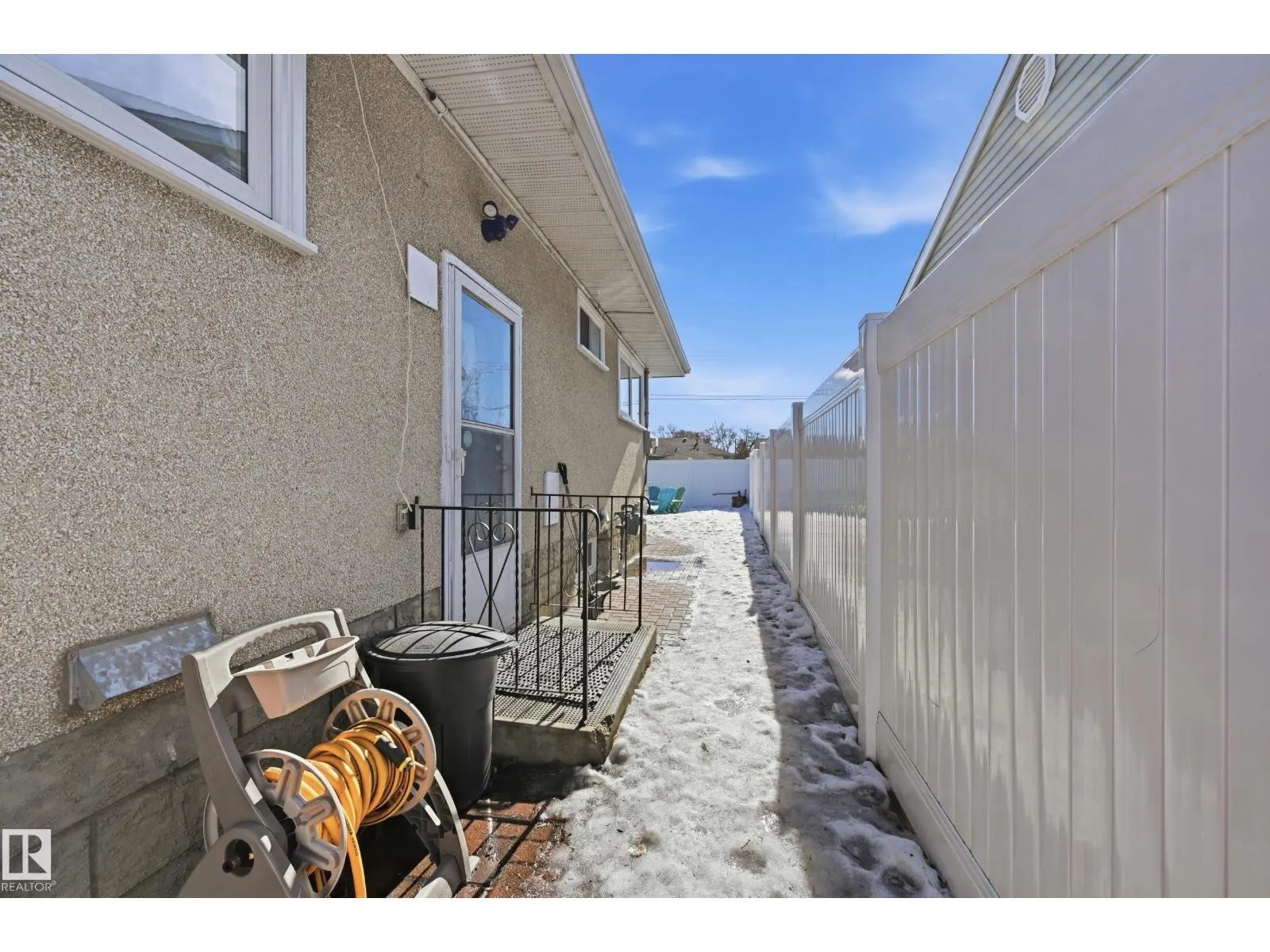 Upgrade your lifestyle. See what this turn key home has to offer. Ideally located just minutes from the LRT and the scenic trails of Mill Creek Ravine, this recently renovated bungalow offers the perfect blend of location, updates, and future potential. The main floor features 3 bedrooms, 1 full bathroom, and a bright, functional kitchen with modern finishes and updated appliances. Large windows fill the home with natural light, creating a warm and inviting atmosphere. The basement provides a great opportunity for future development to customize additional living or recreation space. Outside, Well HELLO entertaining OASIS where over $30,000 has been invested in professional landscaping in this sunny SOUTH FACING yard with custom stonework, new vinyl fence, and low-maintenance design so you can just enjoy the space, plus a convenient awning for reprieve on those sunny days. The property also features a large rear parking RV PAD, & an oversized single heated detached garage for added year-round convenience. (id:27476)