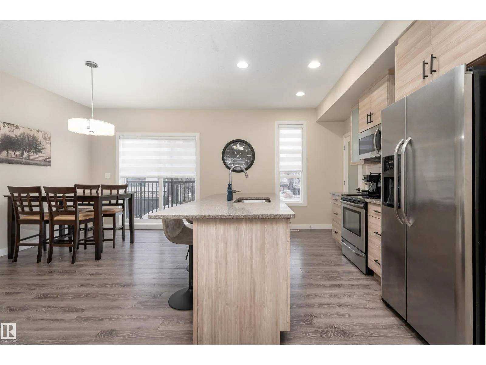 Bright and inviting townhome in Baranow, featuring 3 bedrooms, 2.5 bathrooms, and a thoughtfully designed living space with a modern open-concept layout. The main floor welcomes you with 9-foot ceilings, expansive windows, and a seamless flow between the living, dining, and kitchen areas. The living room is highlighted by a stunning feature fireplace, creating a warm and comfortable gathering space. The kitchen is well-equipped with stainless steel appliances, a generous walk-in pantry, plenty of cabinetry, and a central island that opens to the dining area. From here, step out onto your east-facing balconyâperfect for enjoying your morning coffee. Upstairs, youâll find three spacious bedrooms, including a primary retreat complete with a walk-in closet and a 4-piece ensuite. An additional full bathroom and a large linen closet add convenience to the upper level. The lower level includes a laundry area and access to the double attached garage, offering ample room for two vehicles and storage. (id:27476)