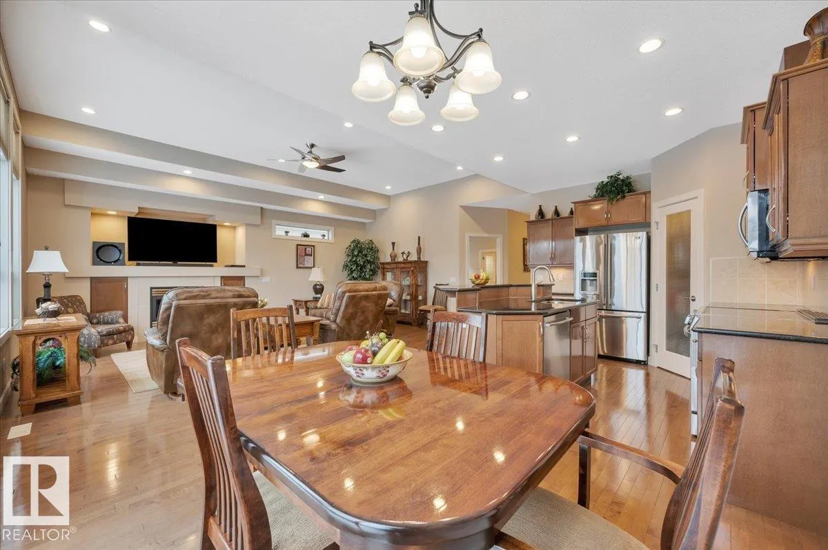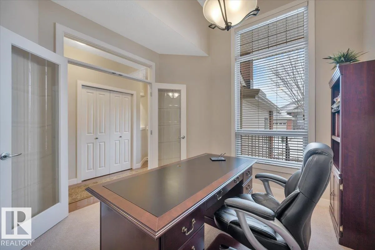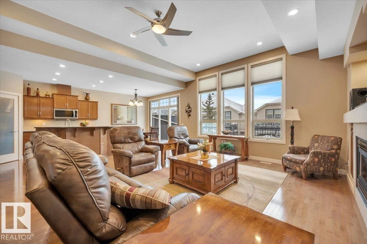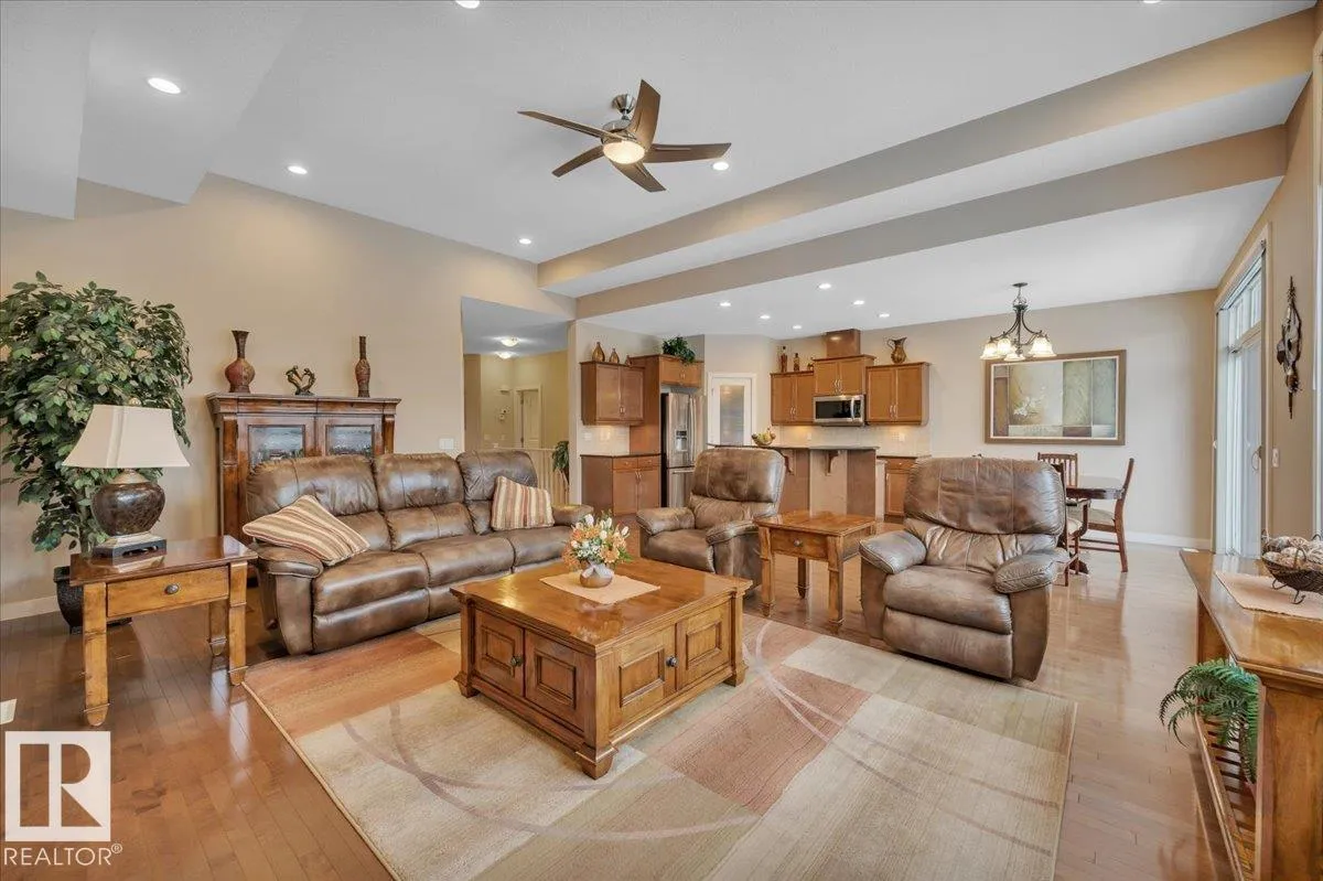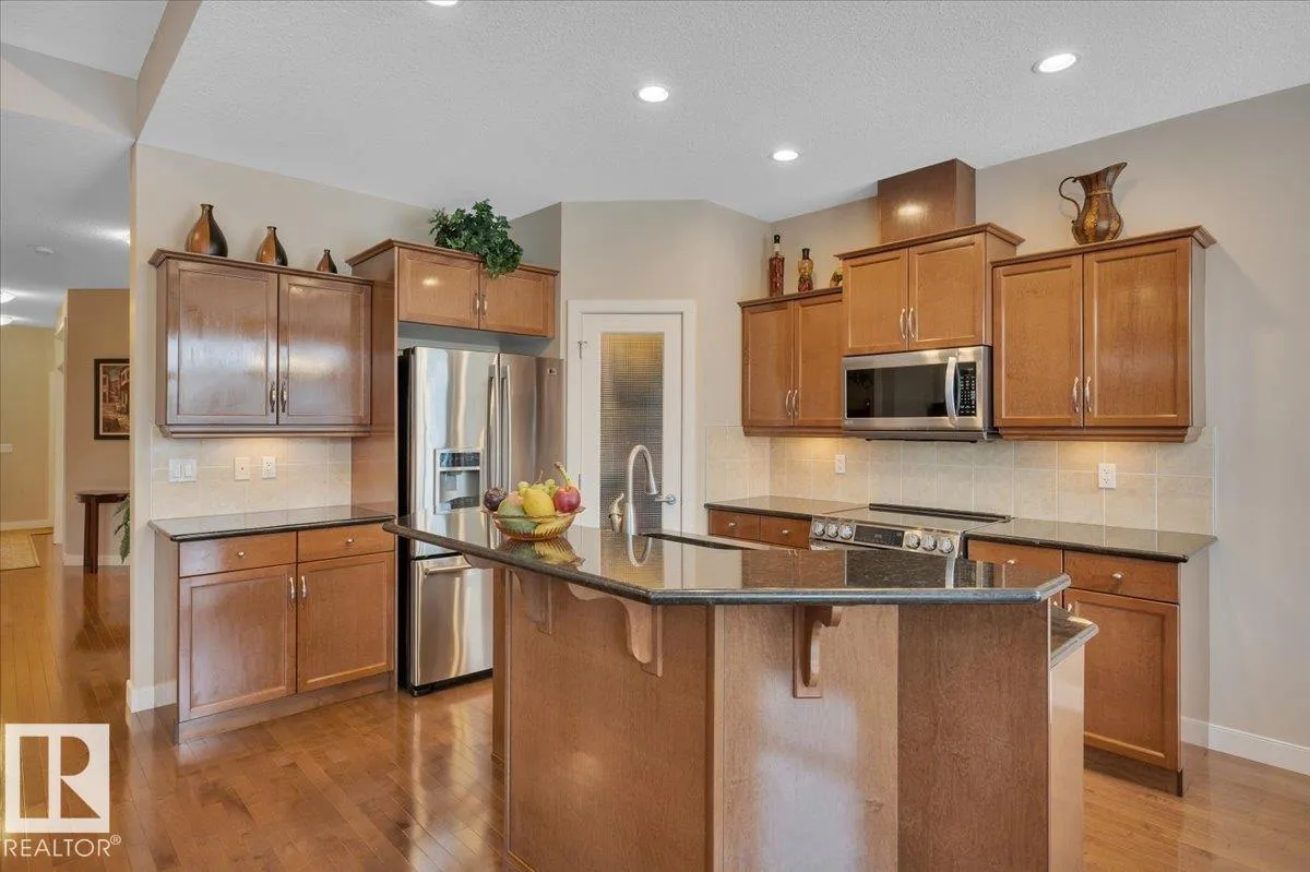 Welcome to BRINDAVAN ESTATES! The perfect retirement community consisting of half duplex bungalows situated in a private setting with only local traffic, adjacent to a large pond which attracts ducks & a variety of birds. This A/C home has an open design with high ceilings & huge windows allowing plenty of natural light. Spacious living/dining room with gas fireplace, hardwood floors, gorgeous kitchen with island, granite counters, stainless steel appliances & walk-in pantry. The den offers privacy with French doors, the primary bedroom has a 5 piece ensuite and walk-in closet. Additional guest bathroom & laundry room complete the main floor. Excellent basement development perfect for out of town guests with two bedrooms, 4 pce bath, big recreation area with second gas fireplace, wet bar & fridge plus a hobby room & plenty of storage. In summer enjoy BBQs on the large deck & take leisurely walks on the trails nearby. Quick access to shopping & Anthony Henday Dr. You'll love the easy lifestyle here! (id:27476)