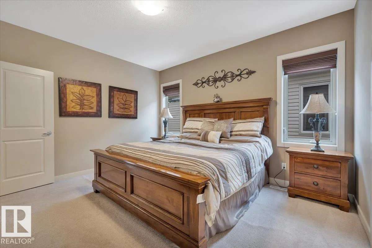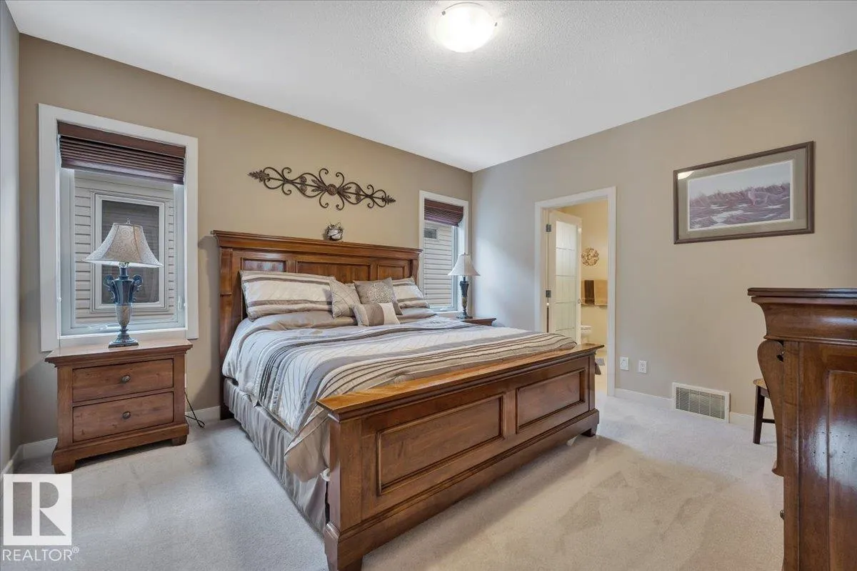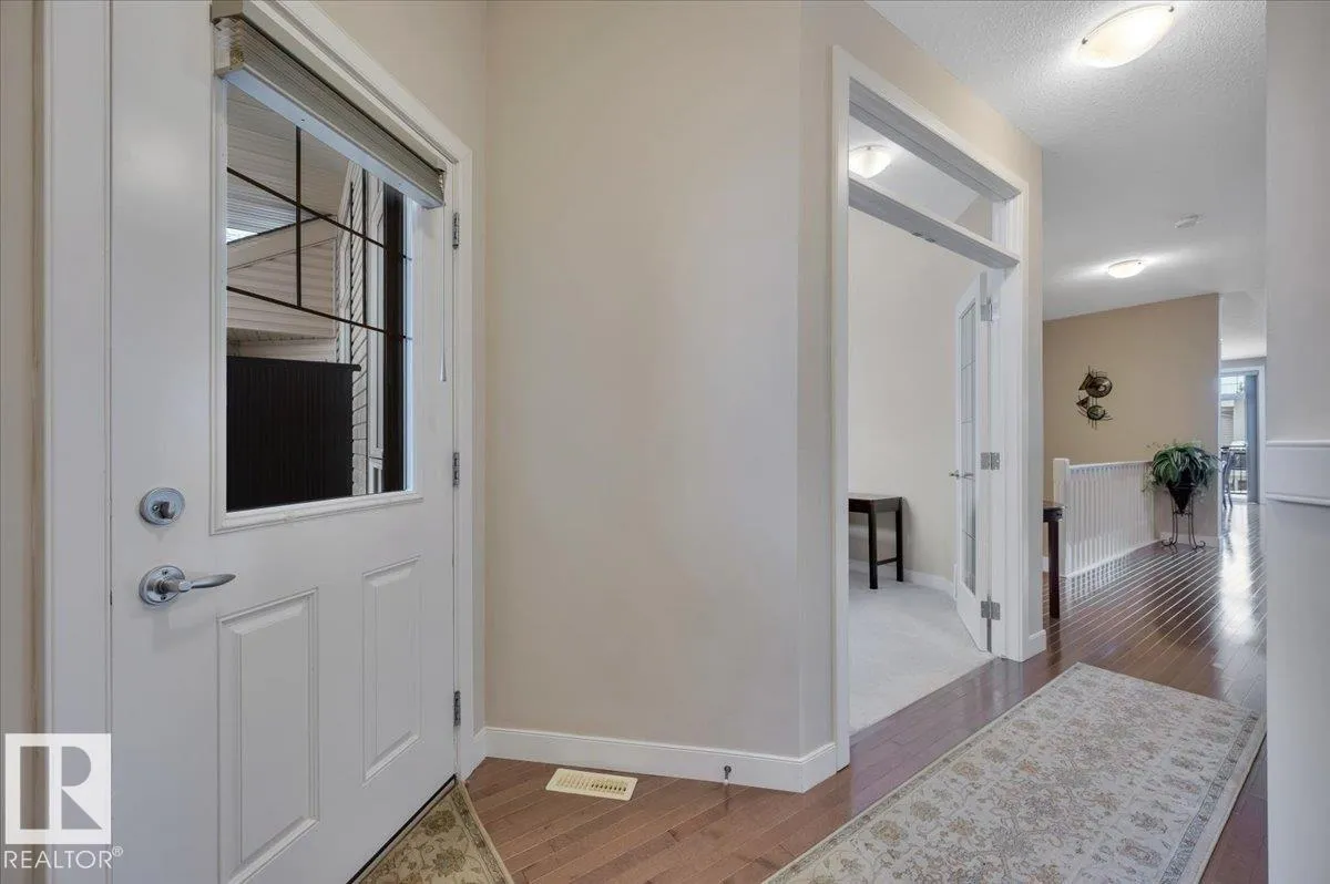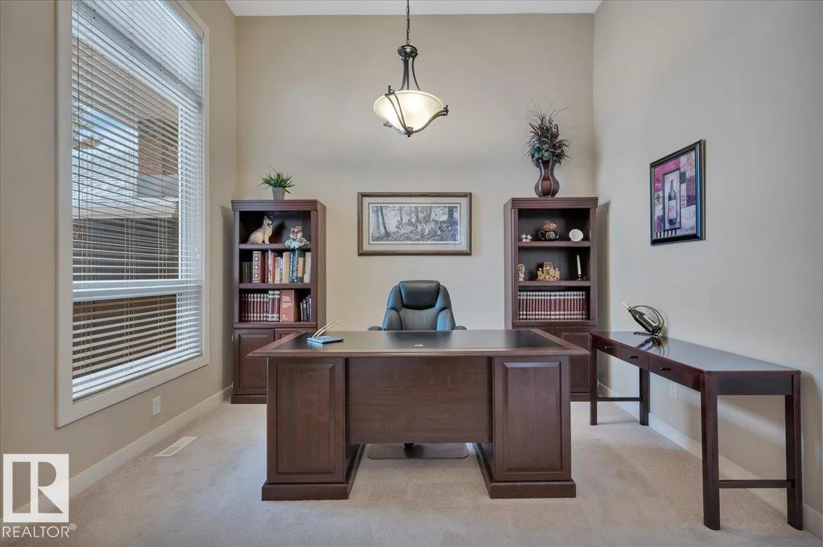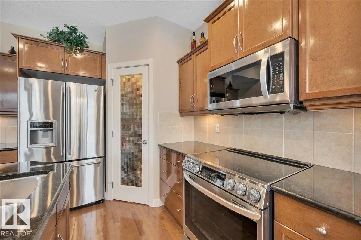 Welcome to BRINDAVAN ESTATES! The perfect retirement community consisting of half duplex bungalows situated in a private setting with only local traffic, adjacent to a large pond which attracts ducks & a variety of birds. This A/C home has an open design with high ceilings & huge windows allowing plenty of natural light. Spacious living/dining room with gas fireplace, hardwood floors, gorgeous kitchen with island, granite counters, stainless steel appliances & walk-in pantry. The den offers privacy with French doors, the primary bedroom has a 5 piece ensuite and walk-in closet. Additional guest bathroom & laundry room complete the main floor. Excellent basement development perfect for out of town guests with two bedrooms, 4 pce bath, big recreation area with second gas fireplace, wet bar & fridge plus a hobby room & plenty of storage. In summer enjoy BBQs on the large deck & take leisurely walks on the trails nearby. Quick access to shopping & Anthony Henday Dr. You'll love the easy lifestyle here! (id:27476)