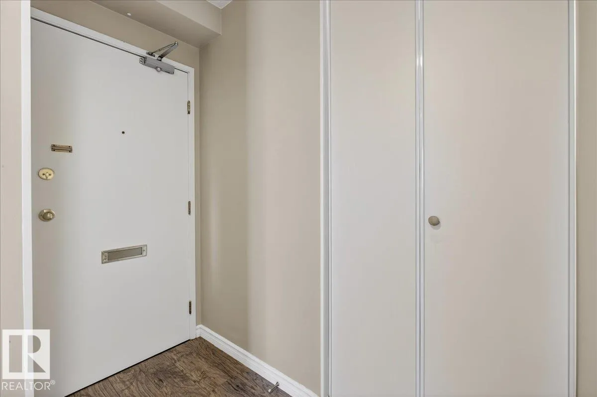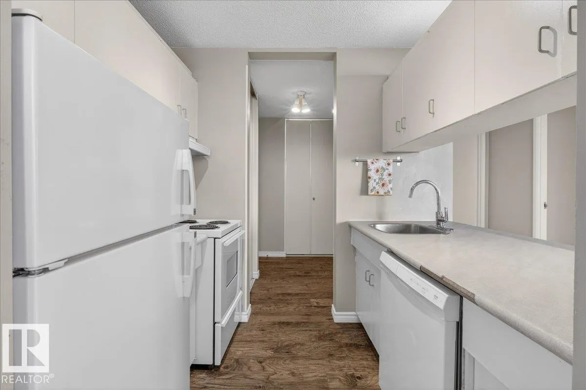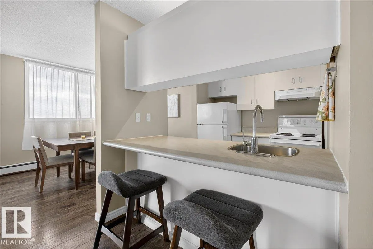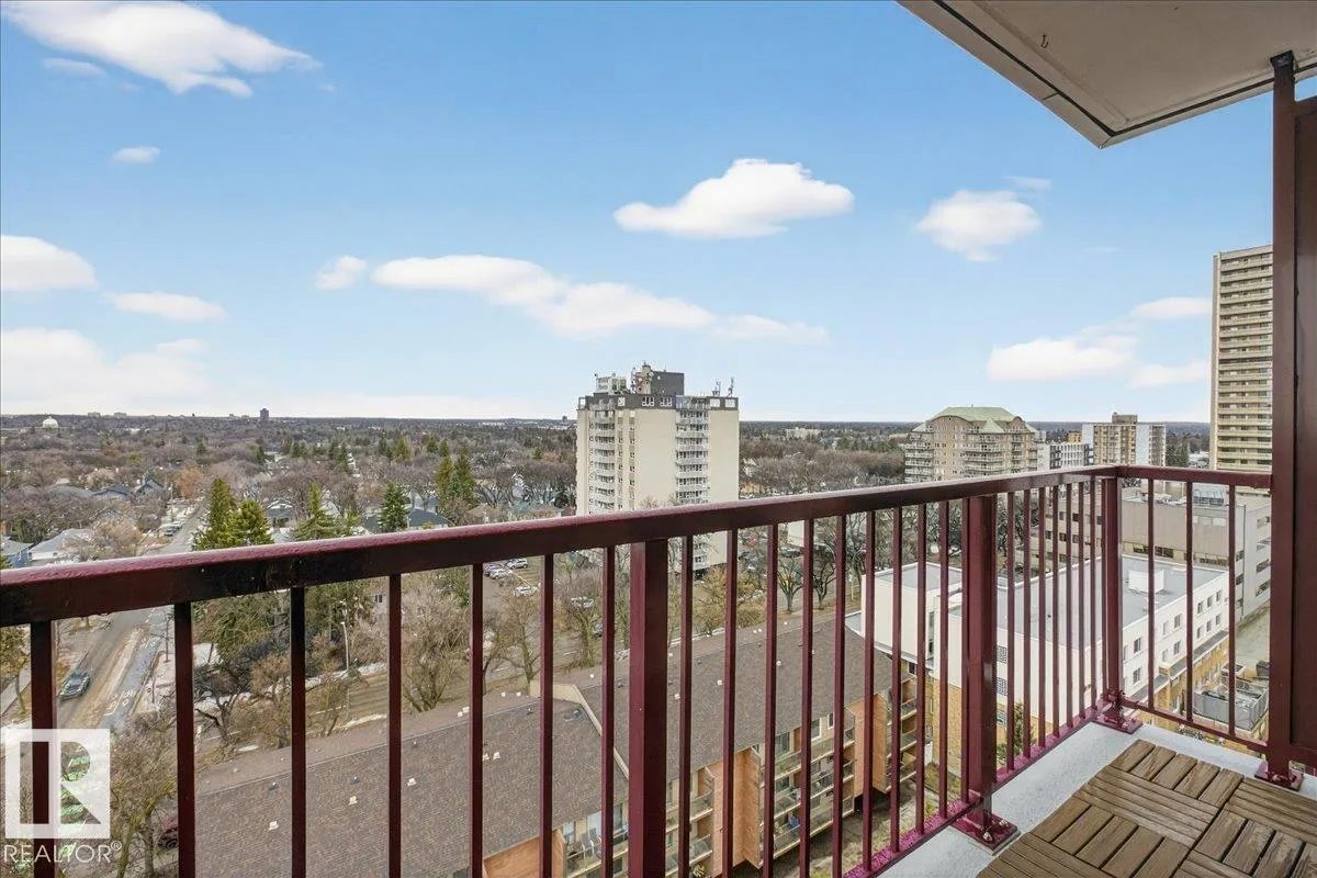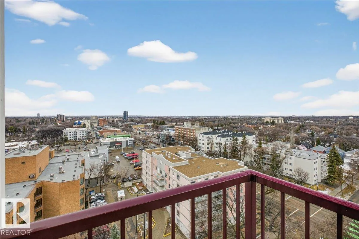 Welcome to Varscona Tower in beautiful historic Garneau! This 1 bed/1 bath 13th top floor condo has stunning panoramic views and is close to the University, public transportation, shopping, restaurants, schools, downtown, recreation/ golf, walking trails- perfect for professionals, students and those wanting an urban lifestyle and fantastic walkable location. Full of natural light, the condo features a spacious living room/ dining room, very functional galley kitchen w/ dishwasher and lots of cabinet space, large bedroom with plenty of closet storage and a nice sized 4 pc bath. Other features include a big south facing balcony, in-suite storage, laundry room on each building floor, and 1 assigned underground parking stall. Well maintained concrete building with low condo fees. (id:27476)