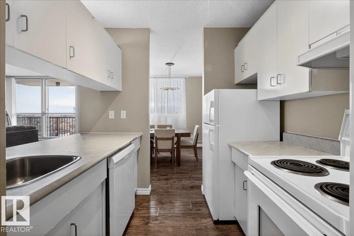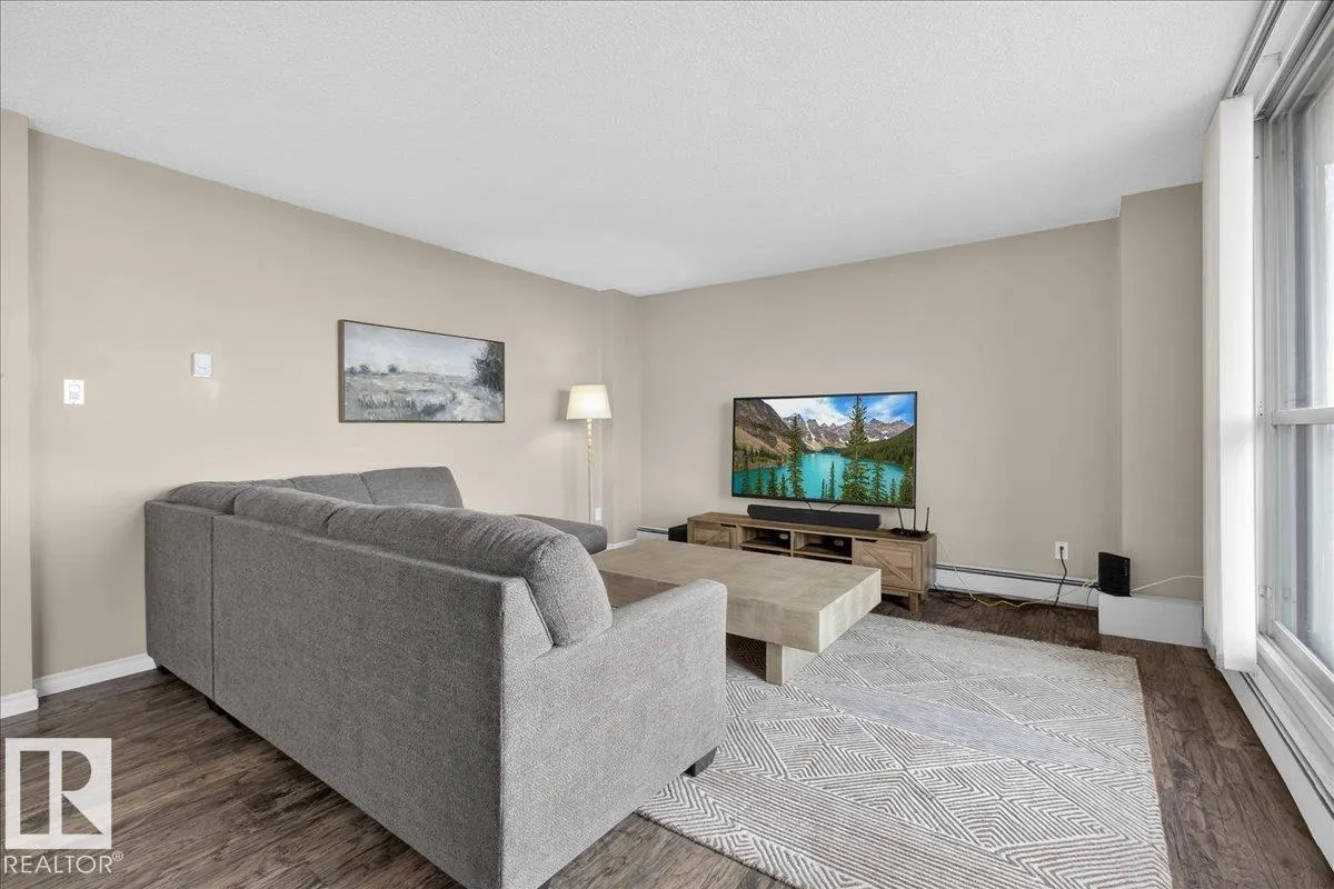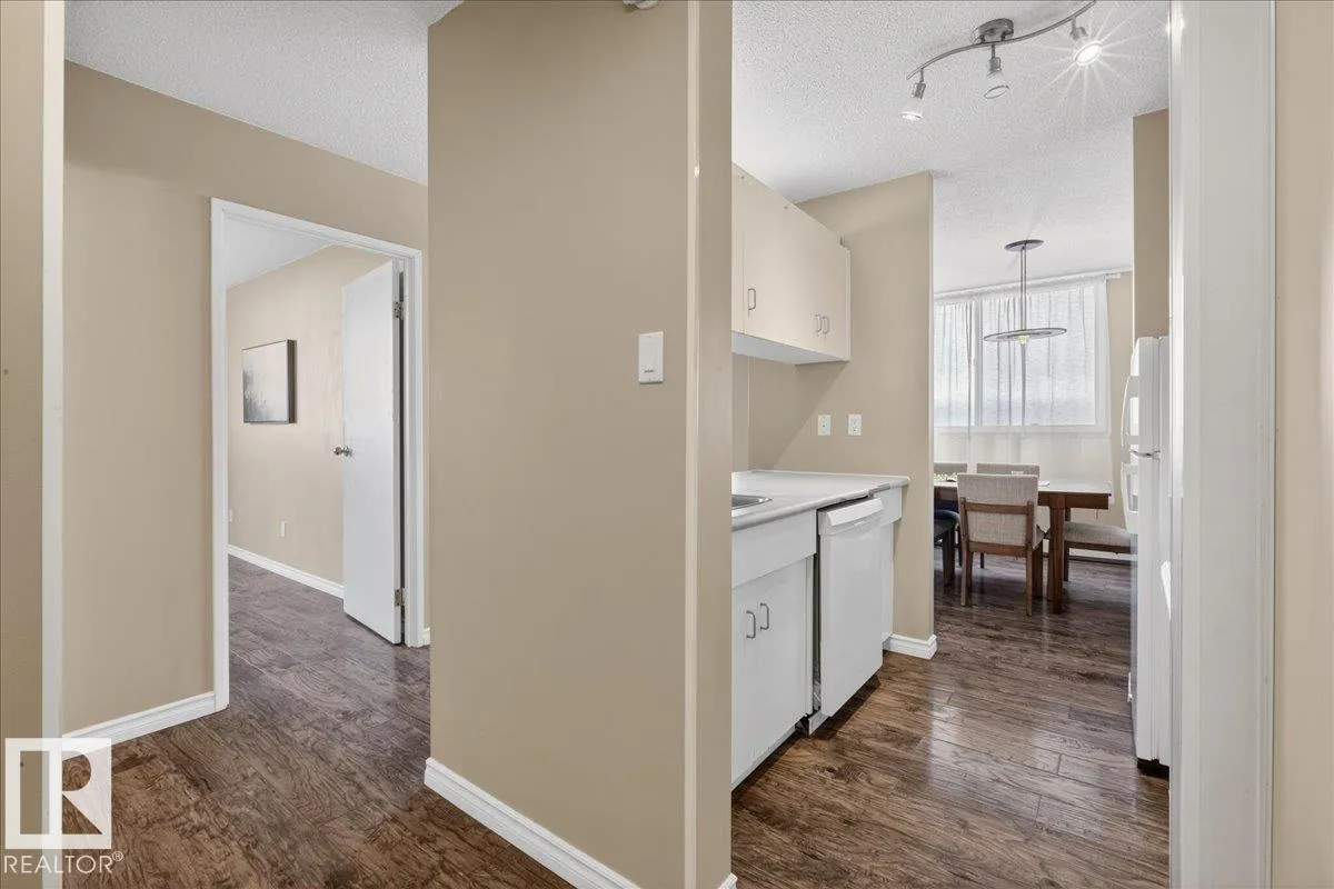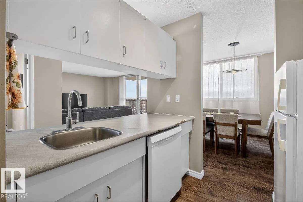 Welcome to Varscona Tower in beautiful historic Garneau! This 1 bed/1 bath 13th top floor condo has stunning panoramic views and is close to the University, public transportation, shopping, restaurants, schools, downtown, recreation/ golf, walking trails- perfect for professionals, students and those wanting an urban lifestyle and fantastic walkable location. Full of natural light, the condo features a spacious living room/ dining room, very functional galley kitchen w/ dishwasher and lots of cabinet space, large bedroom with plenty of closet storage and a nice sized 4 pc bath. Other features include a big south facing balcony, in-suite storage, laundry room on each building floor, and 1 assigned underground parking stall. Well maintained concrete building with low condo fees. (id:27476)