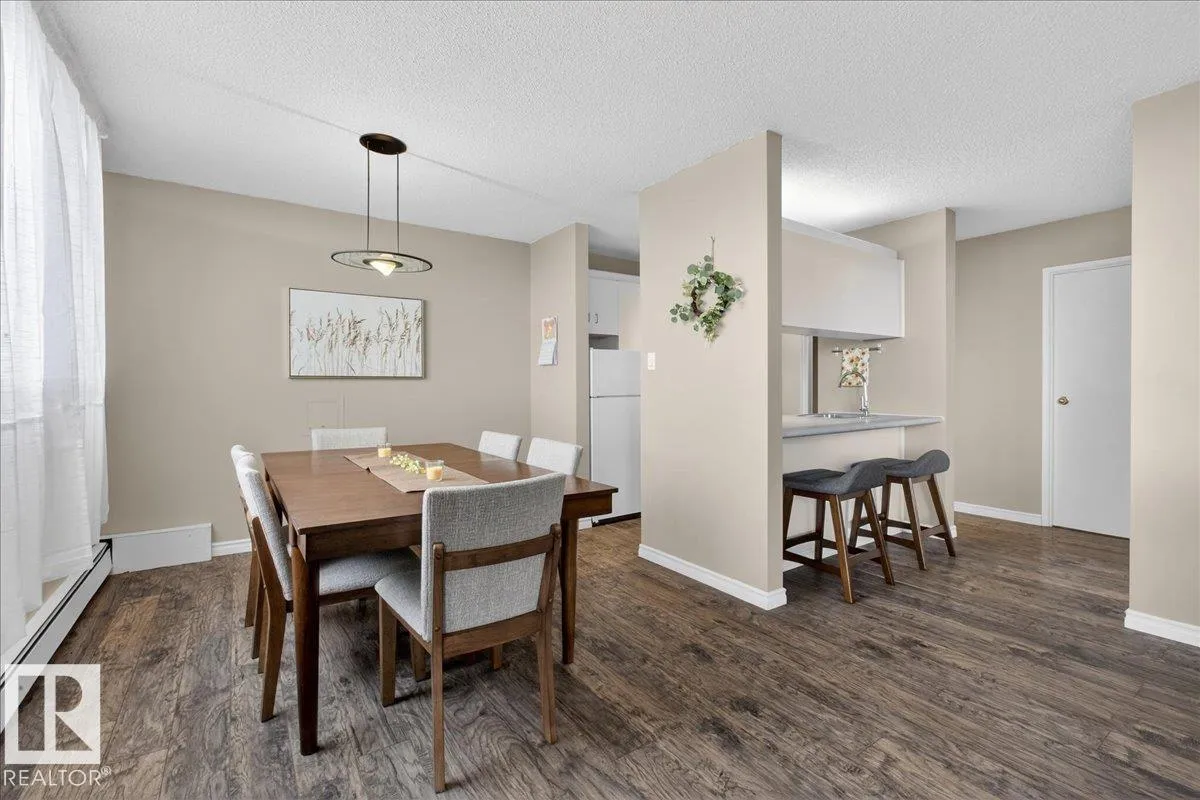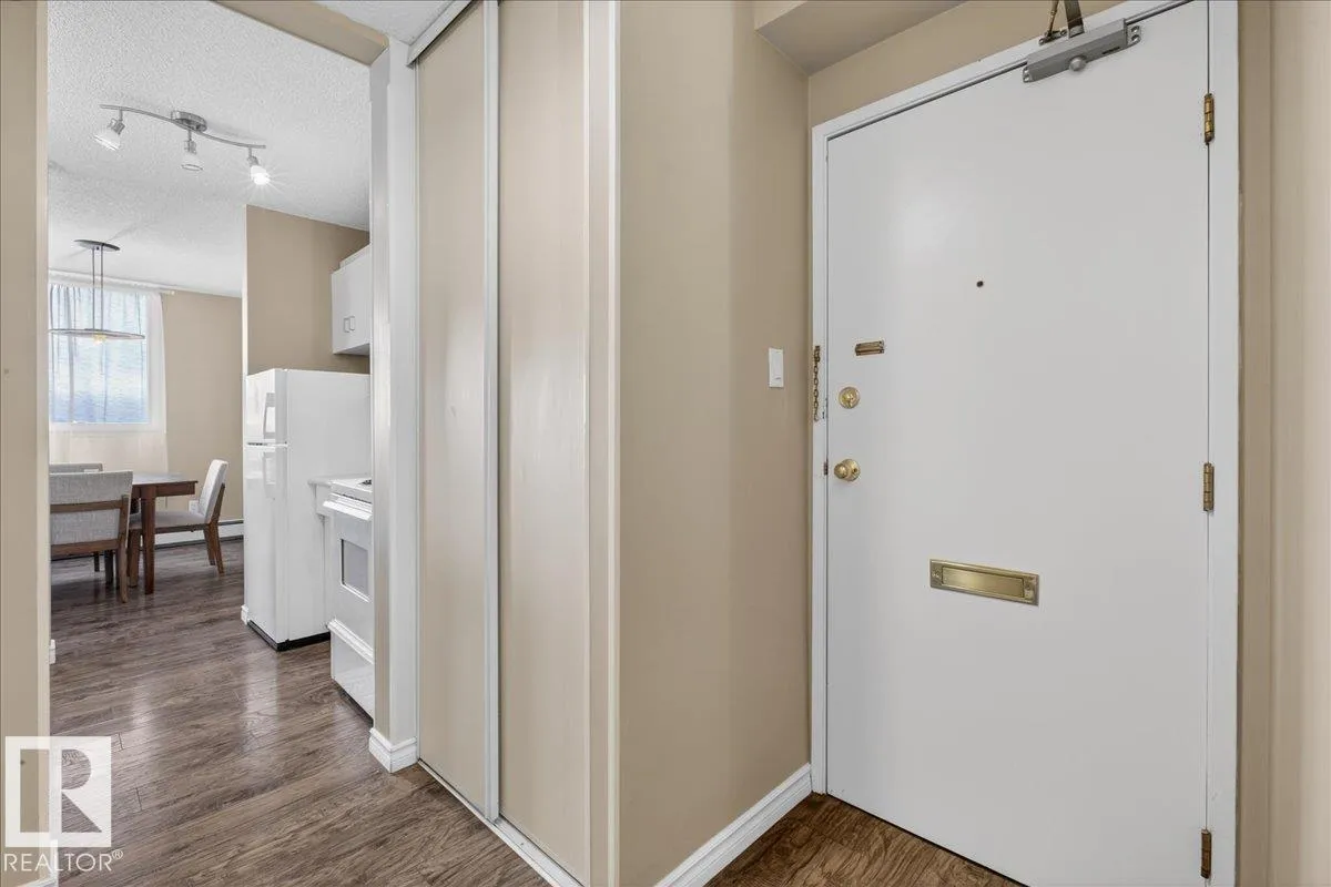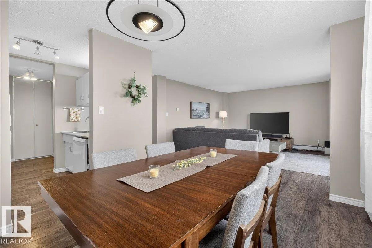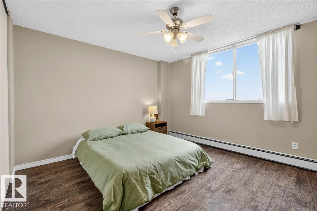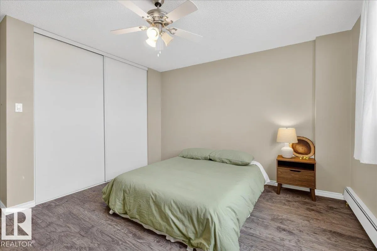 Welcome to Varscona Tower in beautiful historic Garneau! This 1 bed/1 bath 13th top floor condo has stunning panoramic views and is close to the University, public transportation, shopping, restaurants, schools, downtown, recreation/ golf, walking trails- perfect for professionals, students and those wanting an urban lifestyle and fantastic walkable location. Full of natural light, the condo features a spacious living room/ dining room, very functional galley kitchen w/ dishwasher and lots of cabinet space, large bedroom with plenty of closet storage and a nice sized 4 pc bath. Other features include a big south facing balcony, in-suite storage, laundry room on each building floor, and 1 assigned underground parking stall. Well maintained concrete building with low condo fees. (id:27476)