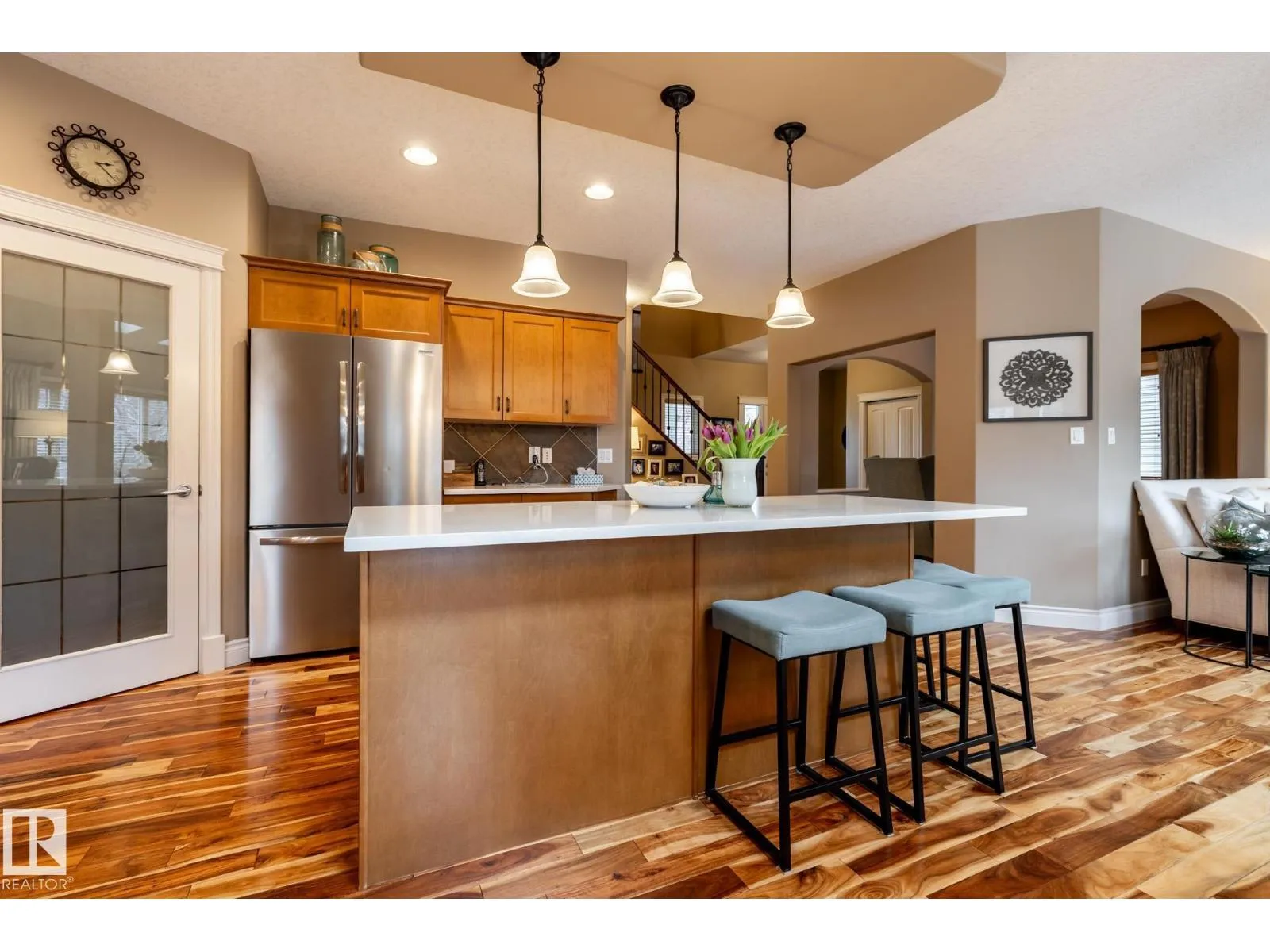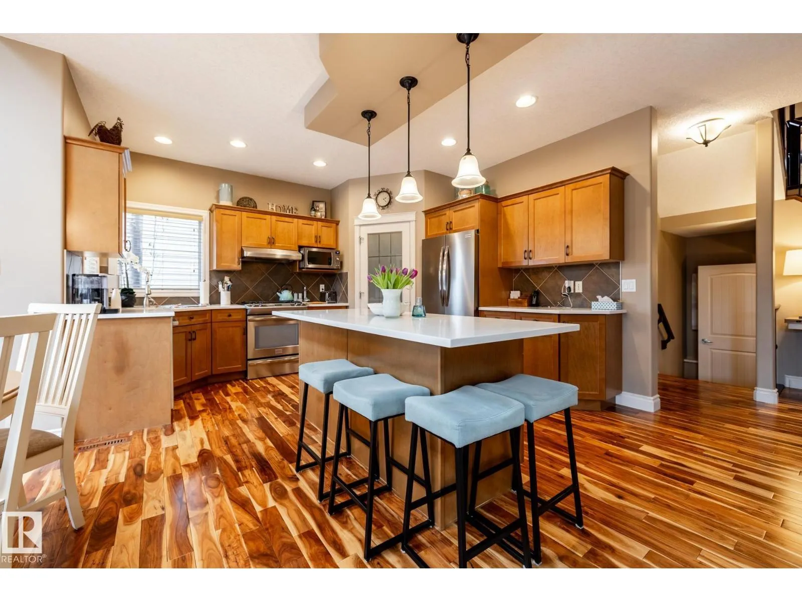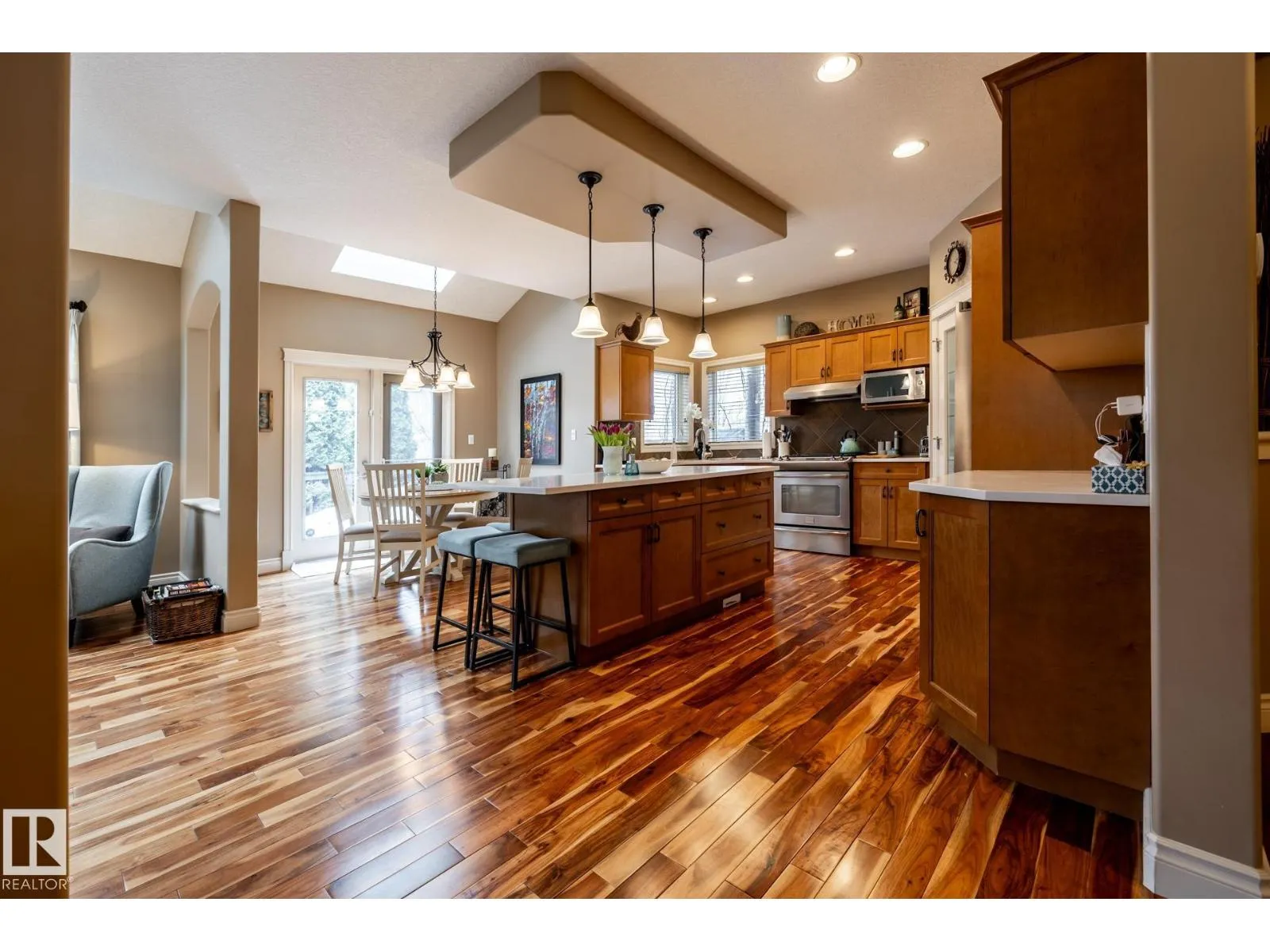 Welcome to Copperwood in the Hamptons, where this beautifully maintained home sits on a quiet cul-de-sacâperfect for an active family thatâs always on the go. With a 5 min walk to two K-9 schools, mornings are smoother and kids gain independence early. Inside, hardwood floors, quartz counters, newer carpet, and bright skylights create a warm, energetic space built for real family life. The open main level easily handles everything from busy breakfasts to post-practice dinners. Upstairs, the spacious bonus room with custom built-in desks becomes a flexible hub for homework, gaming, crafts, or weekend hangouts. The fully finished basement adds even more room to grow, with a large bedroom, entertainment area, and space ideal for a gym or play zone. Outside, the private, beautifully landscaped yard offers space to run, play, and unwind. Pride of ownership shines throughoutâthis is a home ready to keep up with your familyâs rhythm. (id:27476)